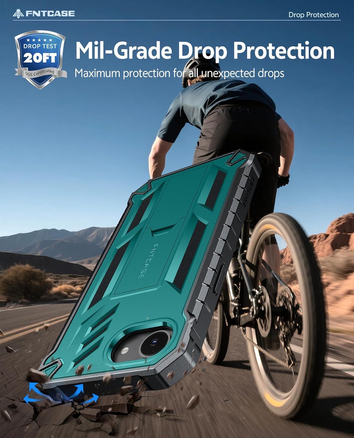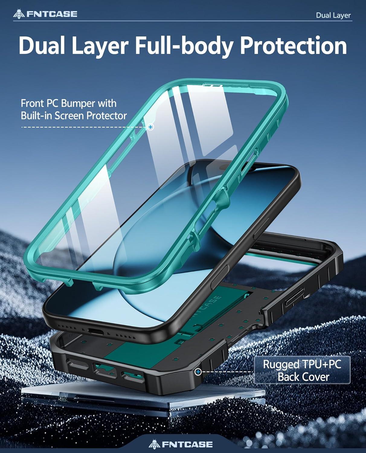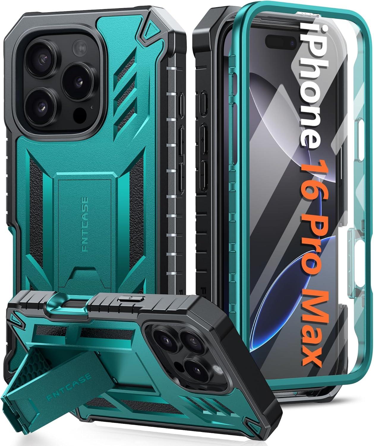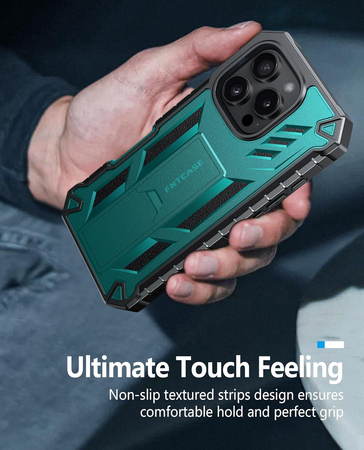 FNTCASE for iPhone 16e Phone Case: Military Grade [Built-in Screen Protector] [Kickstand] Matte Textured Drop Proof Protection Cover | Rugged Shockproof TPU Protective Sturdy Cases 2025 – Black(Green)