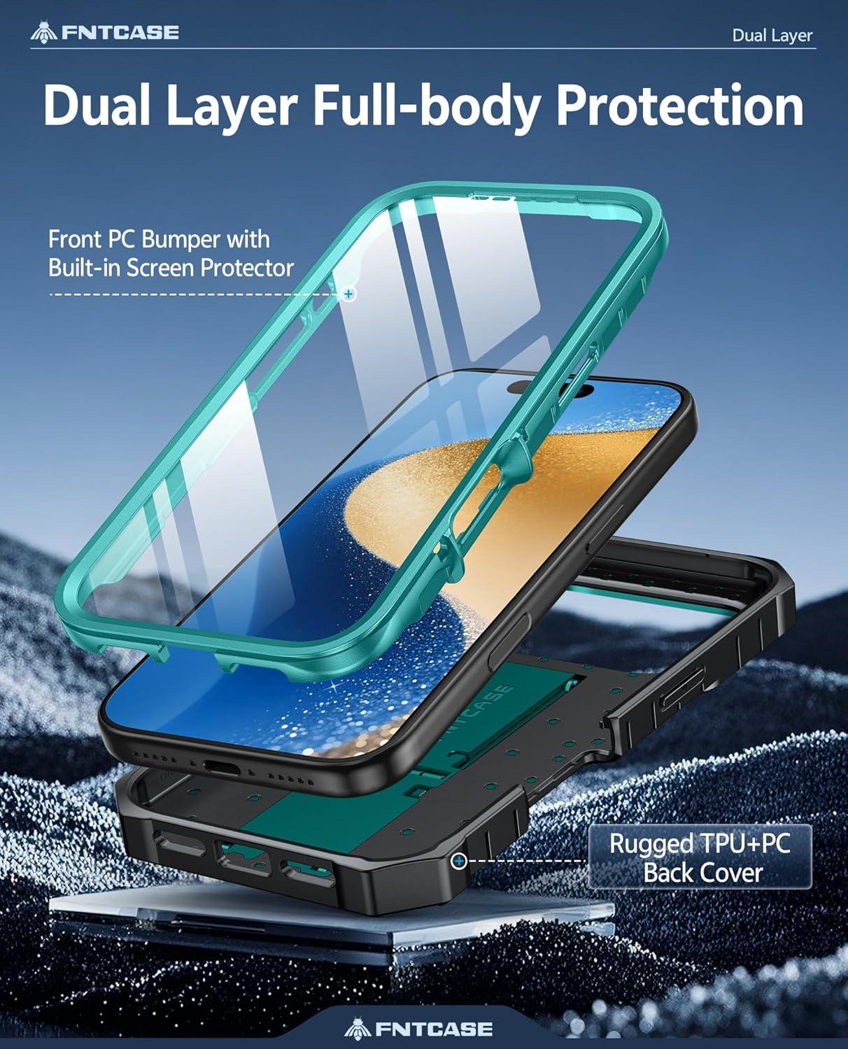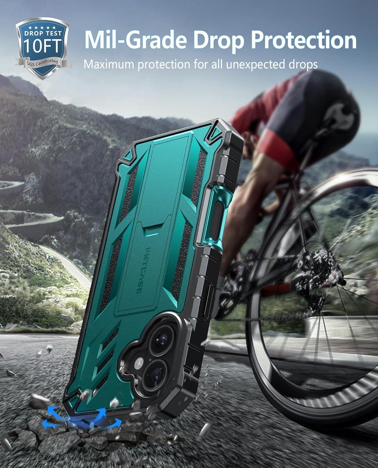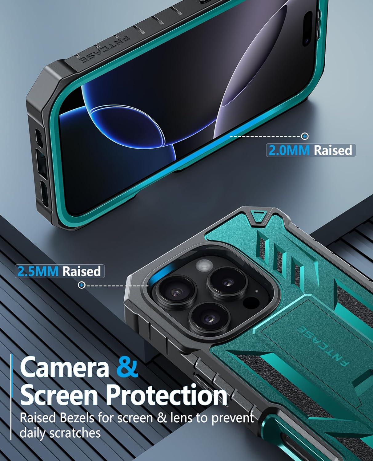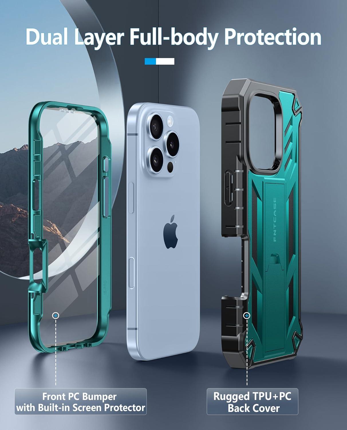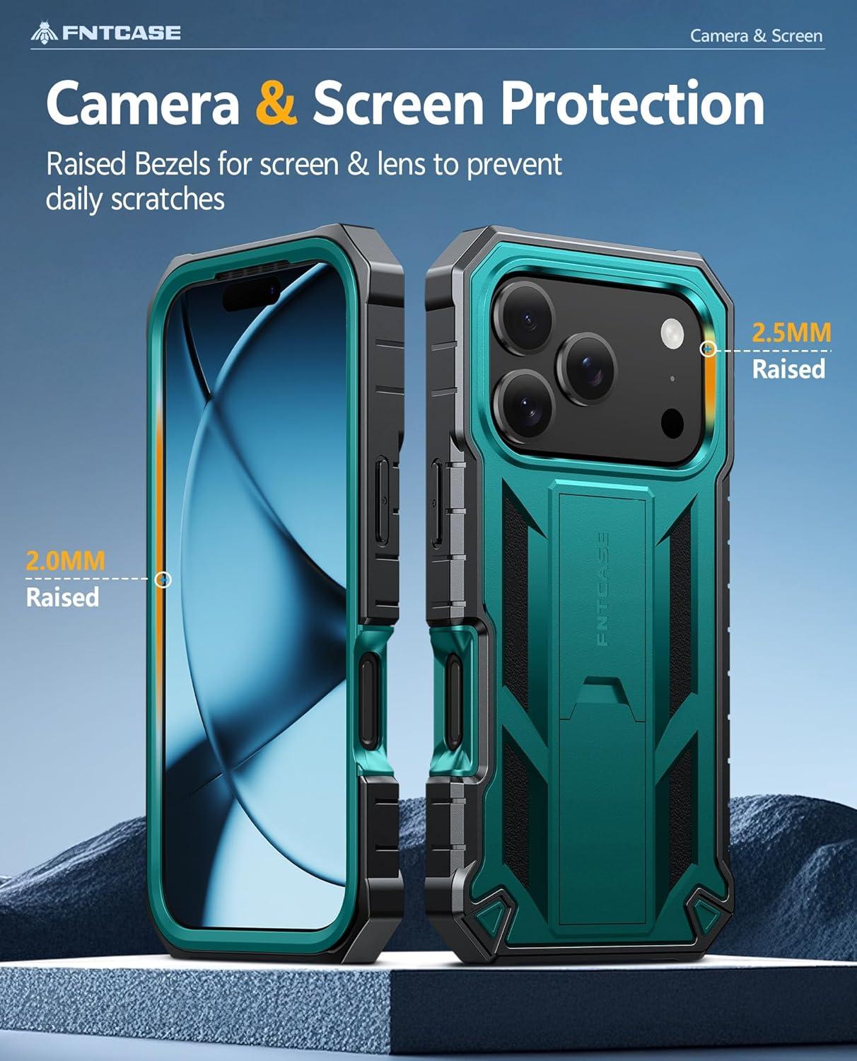 FNTCASE for iPhone 16e Phone Case: Military Grade [Built-in Screen Protector] [Kickstand] Matte Textured Drop Proof Protection Cover | Rugged Shockproof TPU Protective Sturdy Cases 2025 – Black(Green)