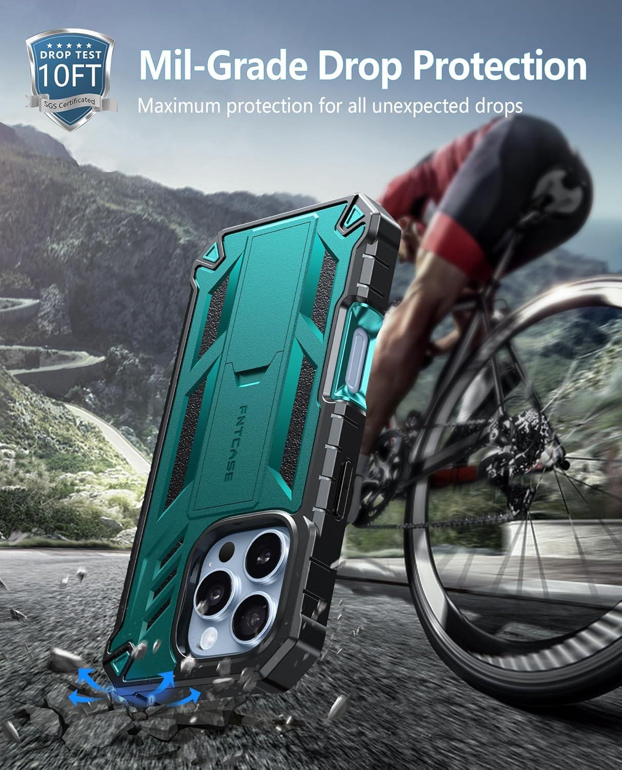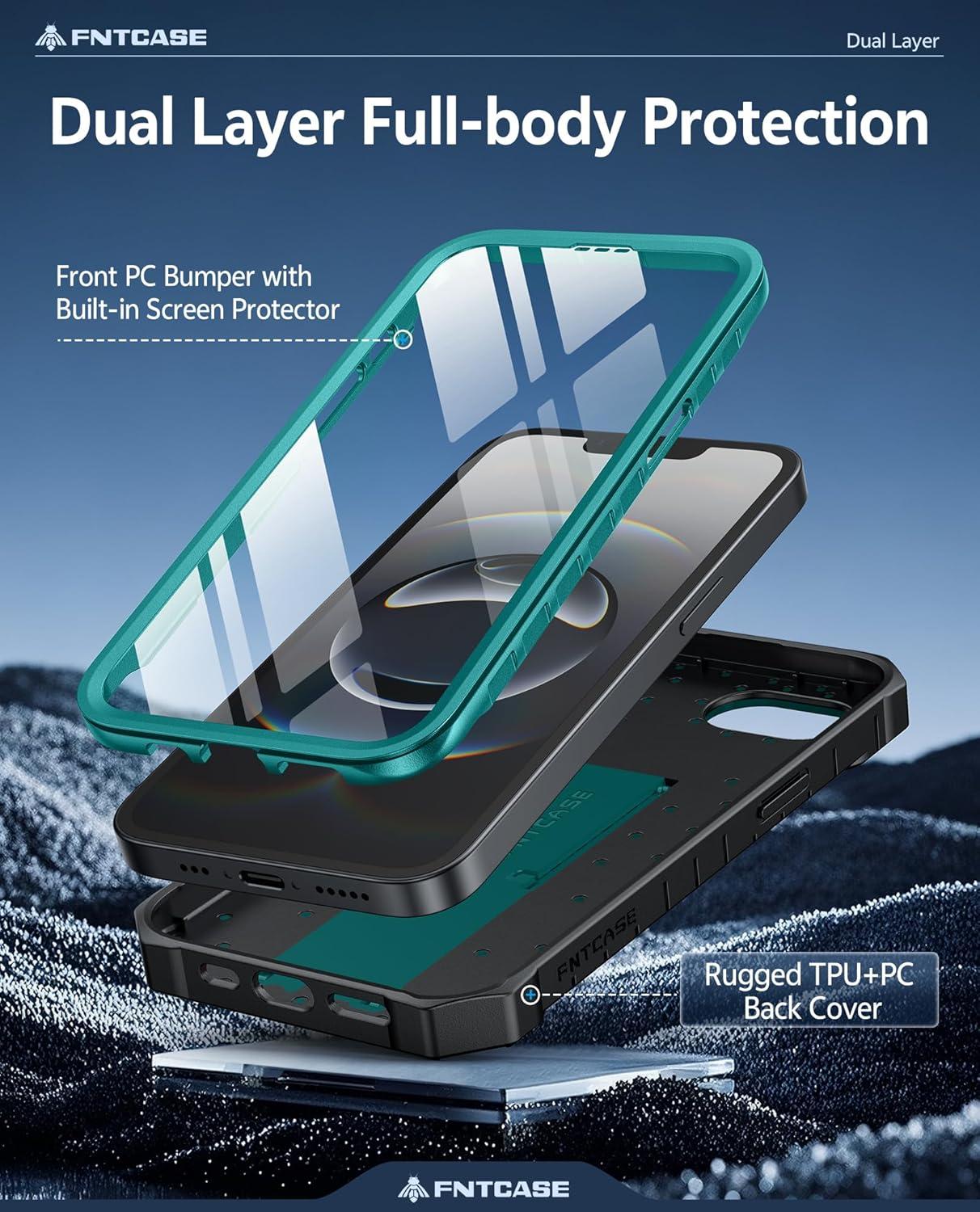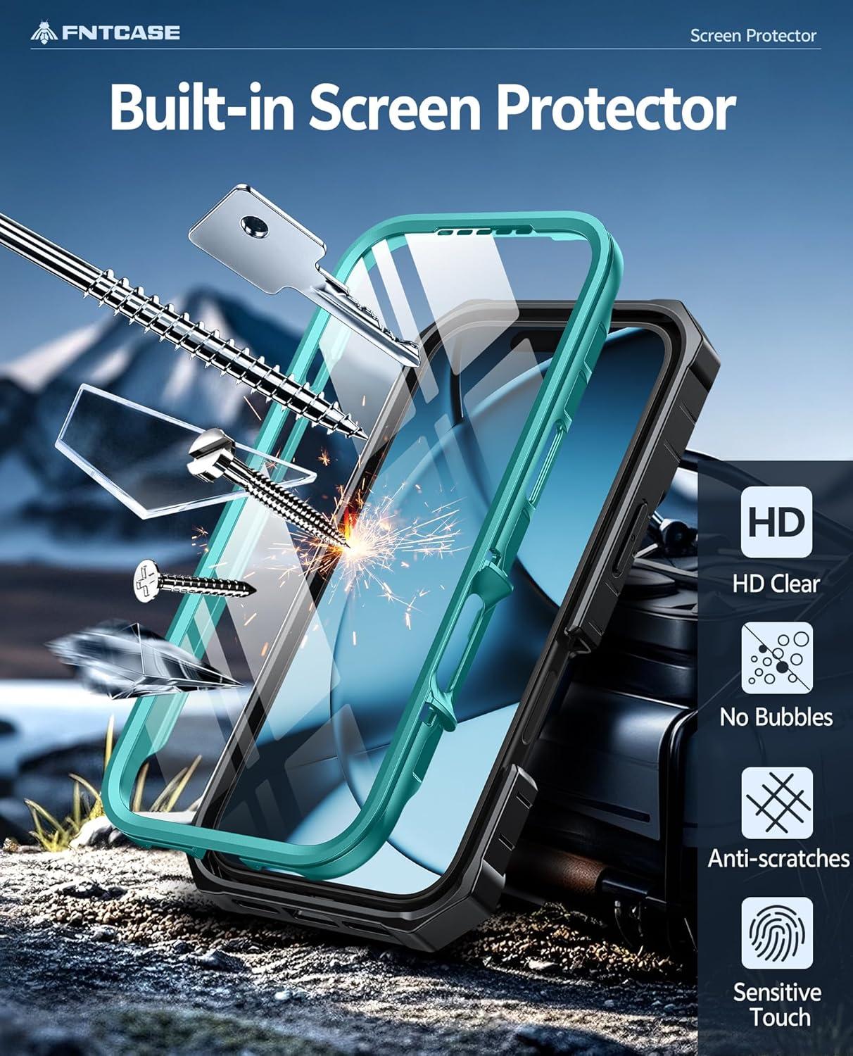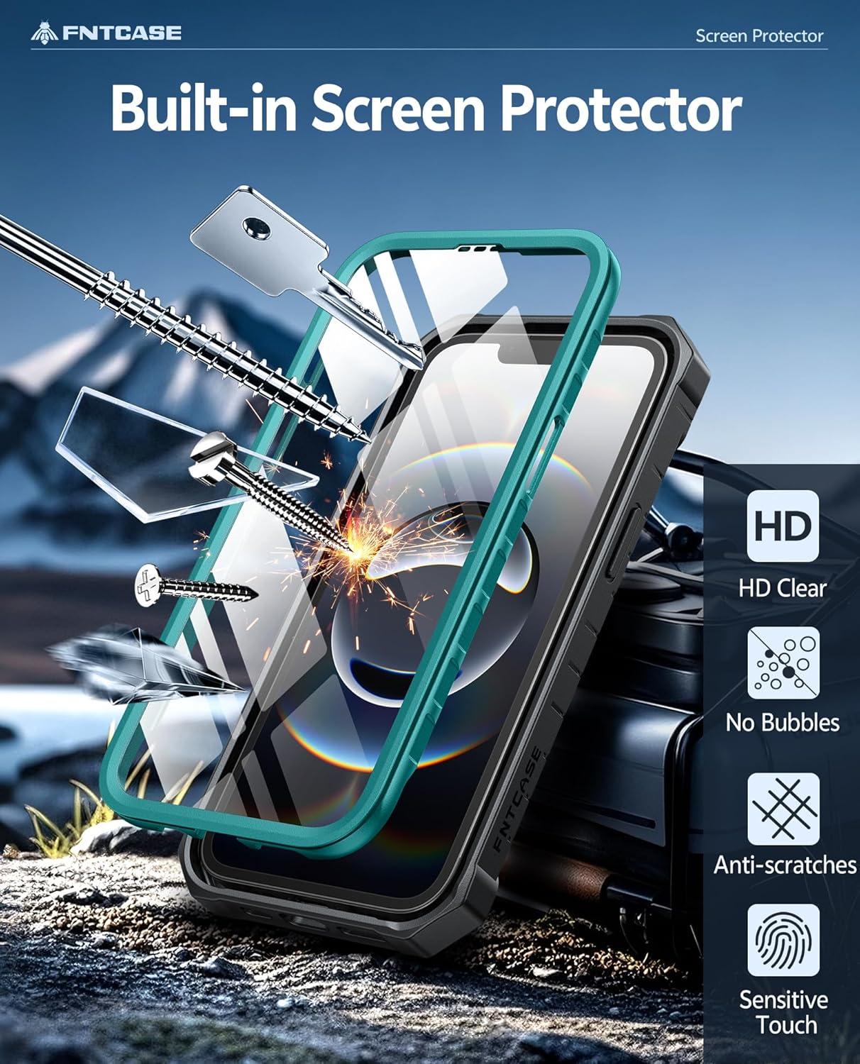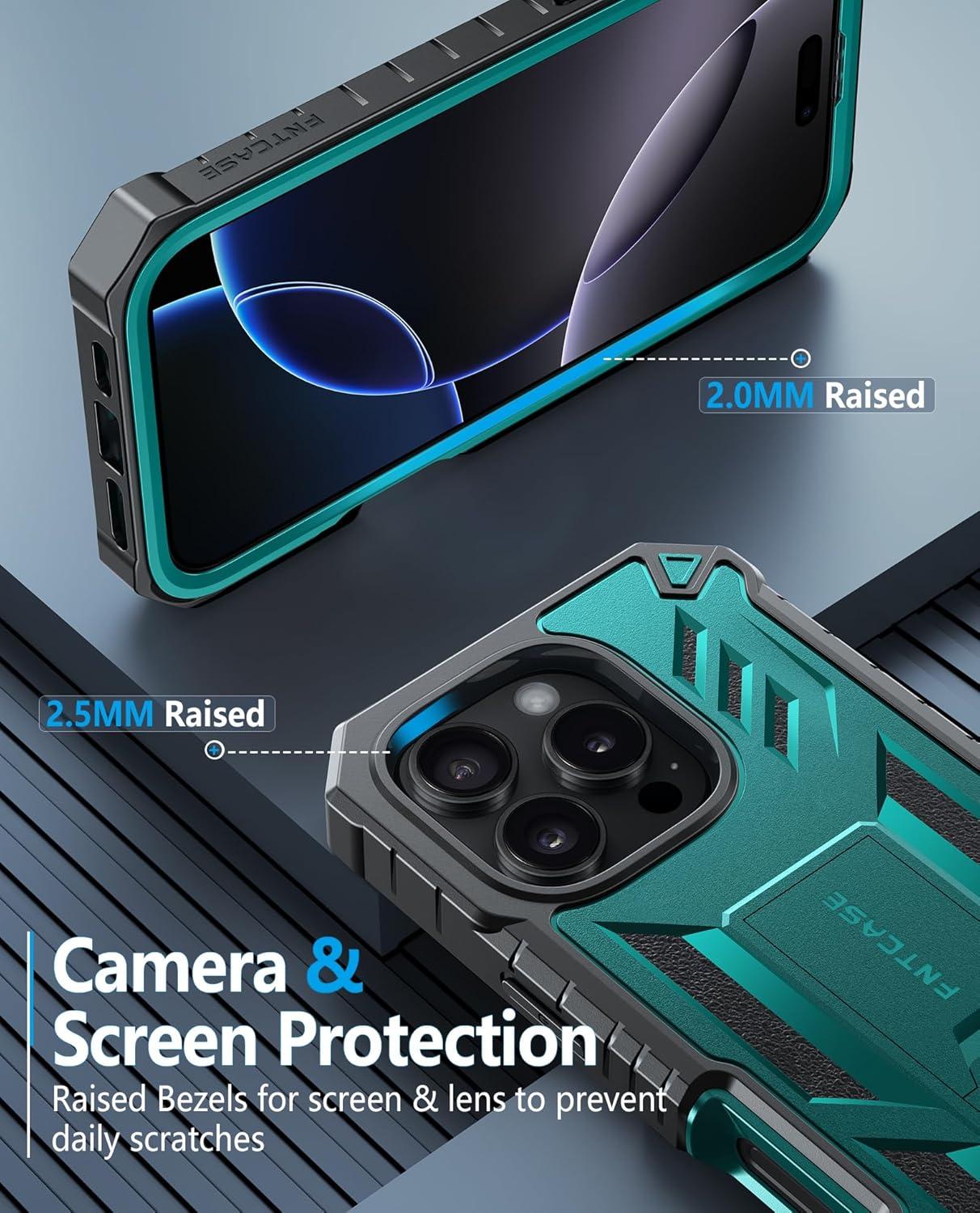FNTCASE for iPhone 16e Phone Case: Military Grade [Built-in Screen Protector] [Kickstand] Matte Textured Drop Proof Protection Cover | Rugged Shockproof TPU Protective Sturdy Cases 2025 – Black(Green)