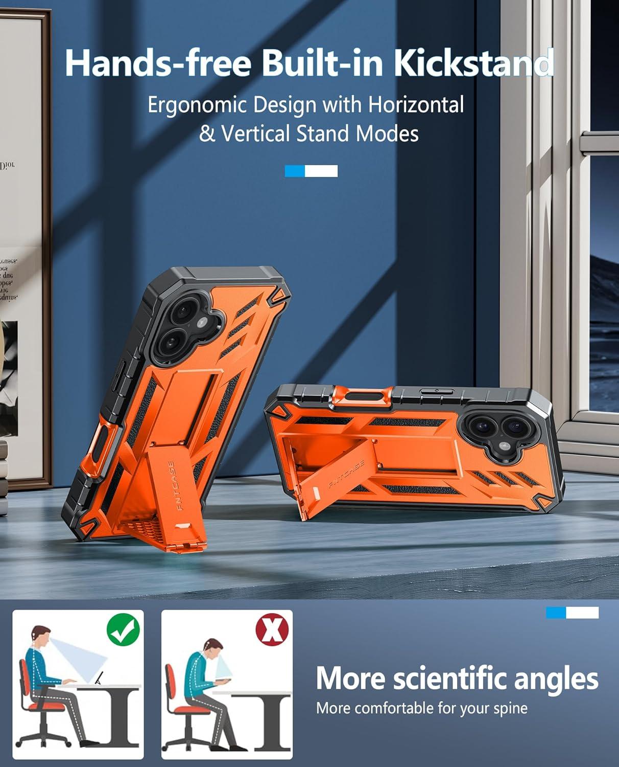 Built-in Kickstand: Built-in foldable stand with vertical and horizontal viewing angles free your hands to do other things. The holder on the iPhone 16e Case 2025 back can provide you with good support, making it easy for you to take pictures with a large cell phone