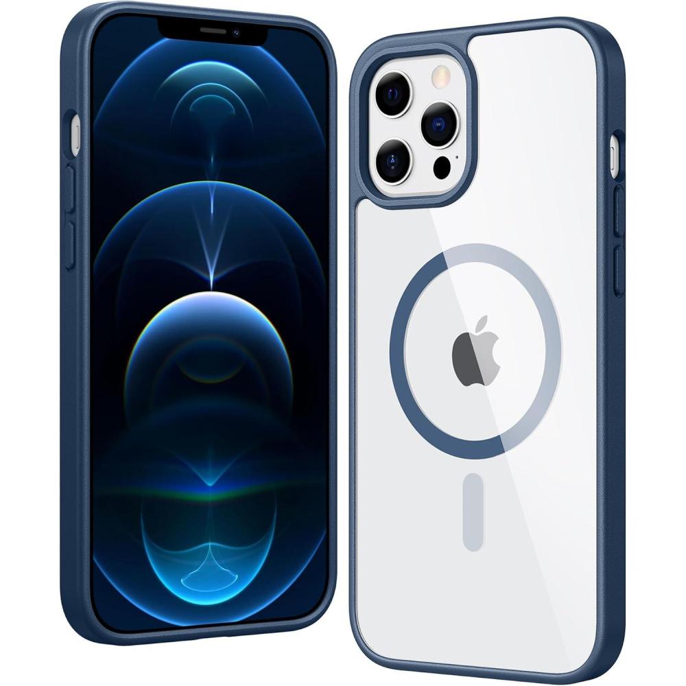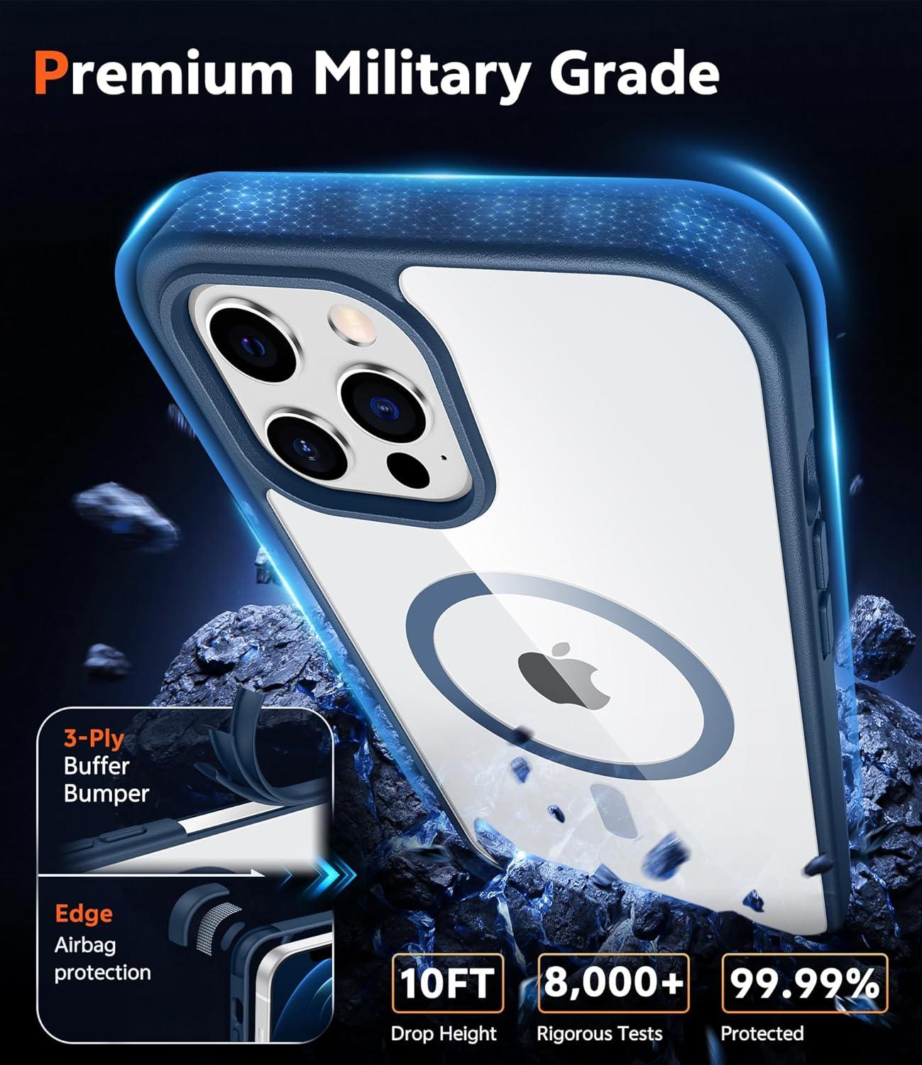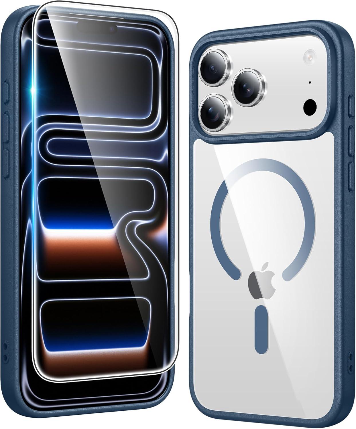 FNTCASE for iPhone 17 Pro Case, Compatible with Magsafe, Clear Transparent Magnetic Shockproof Protective Rugged Phone Cover with Screen Protector – 6.3 inch (A-Clear)(B-Blue)