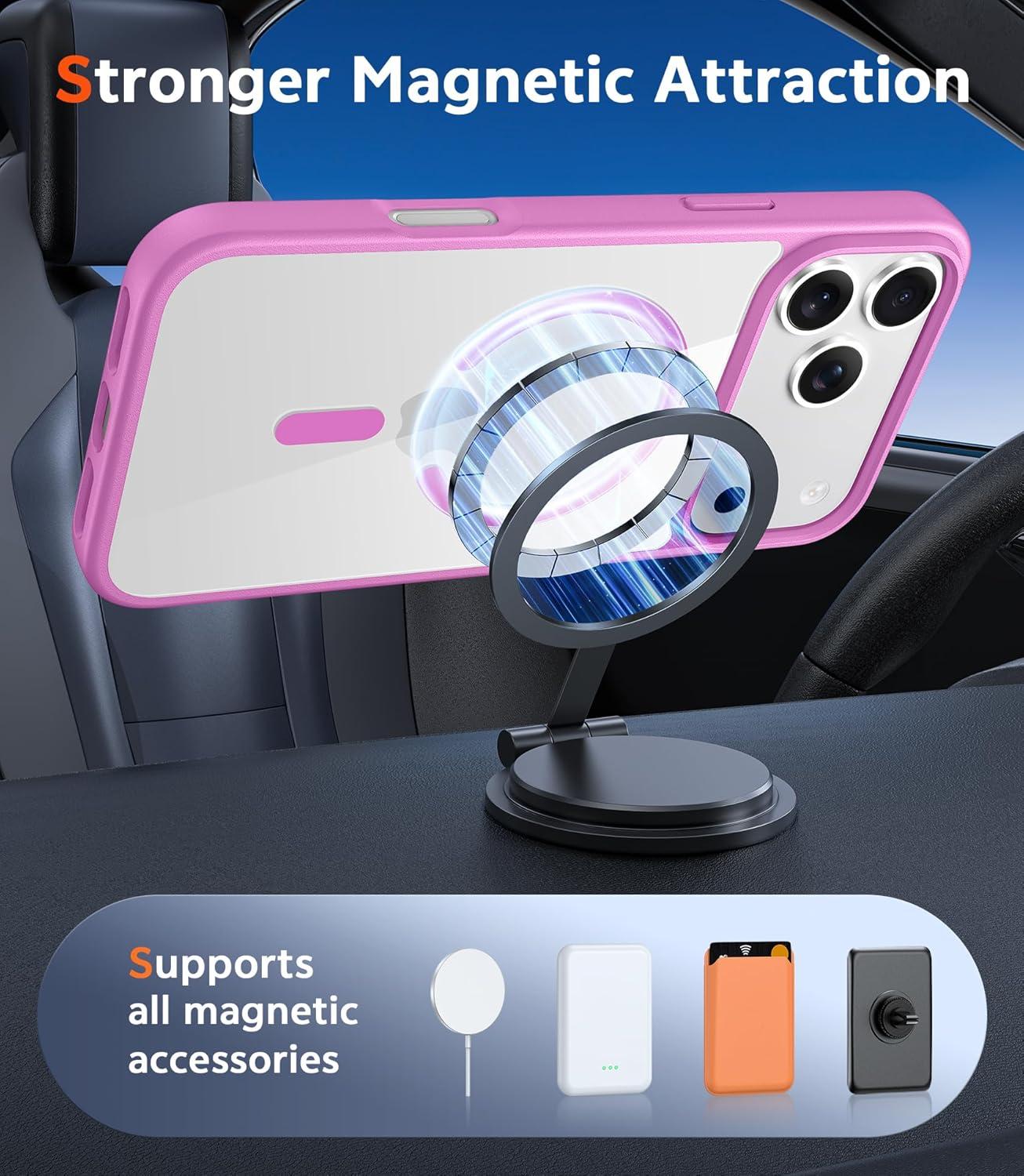 Strong Magnetic Attraction: Compatible for Magnetic chargers and other Qi Wireless chargers without signal influence. The iPhone 17 Pro magnetic case has built-in 38 super N52 magnets. Its magnetic attraction reaches 2400 gf