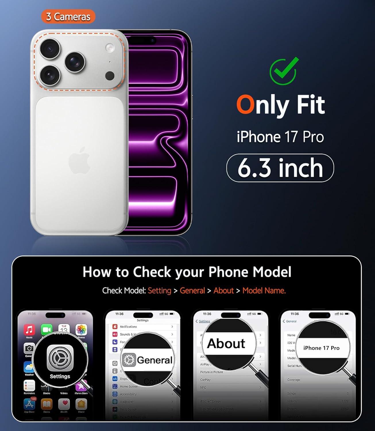 Compatibility & Secure Grip: This clear case is only designed for iPhone 17 Pro 6.3 inch. Precise cut and design allow easy access to all ports, buttons, cameras, sensors, and other features. The clear case can totally achieve a great grip feeling