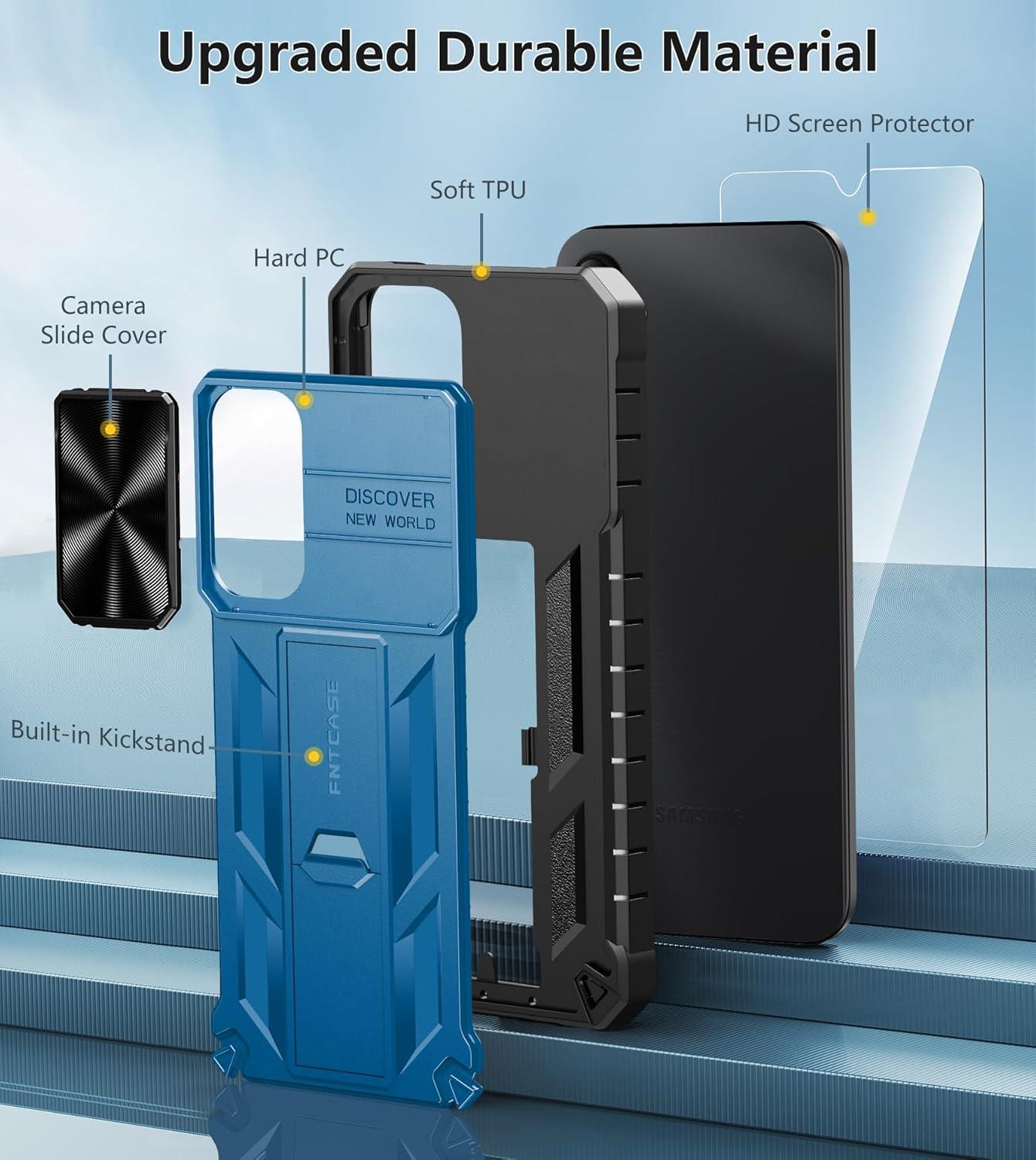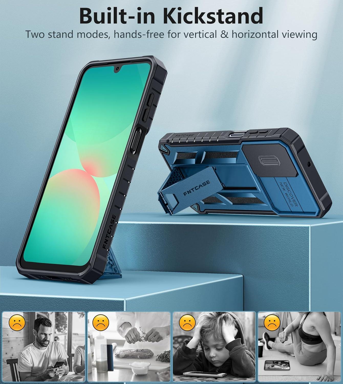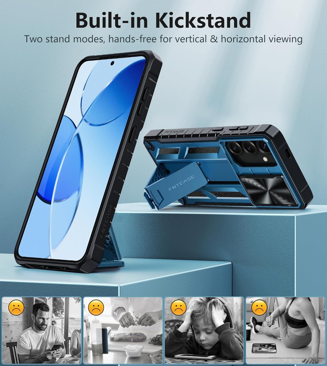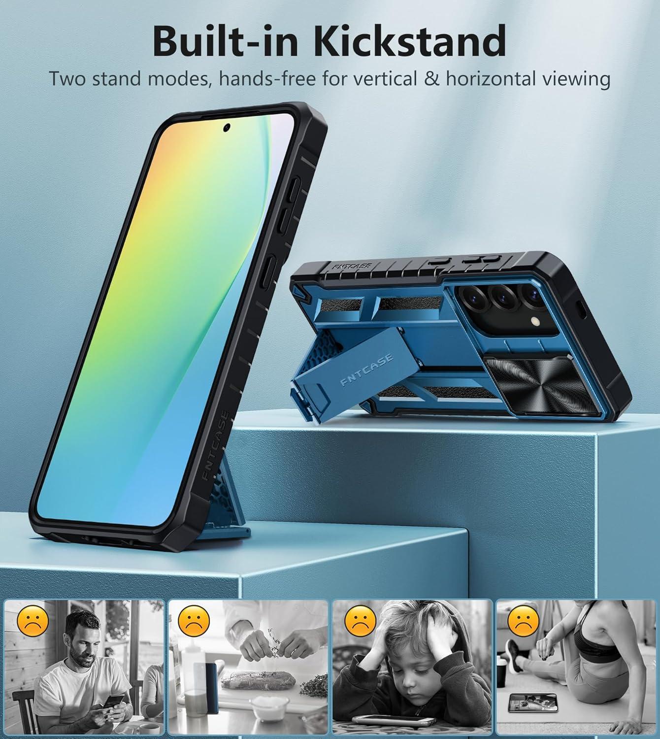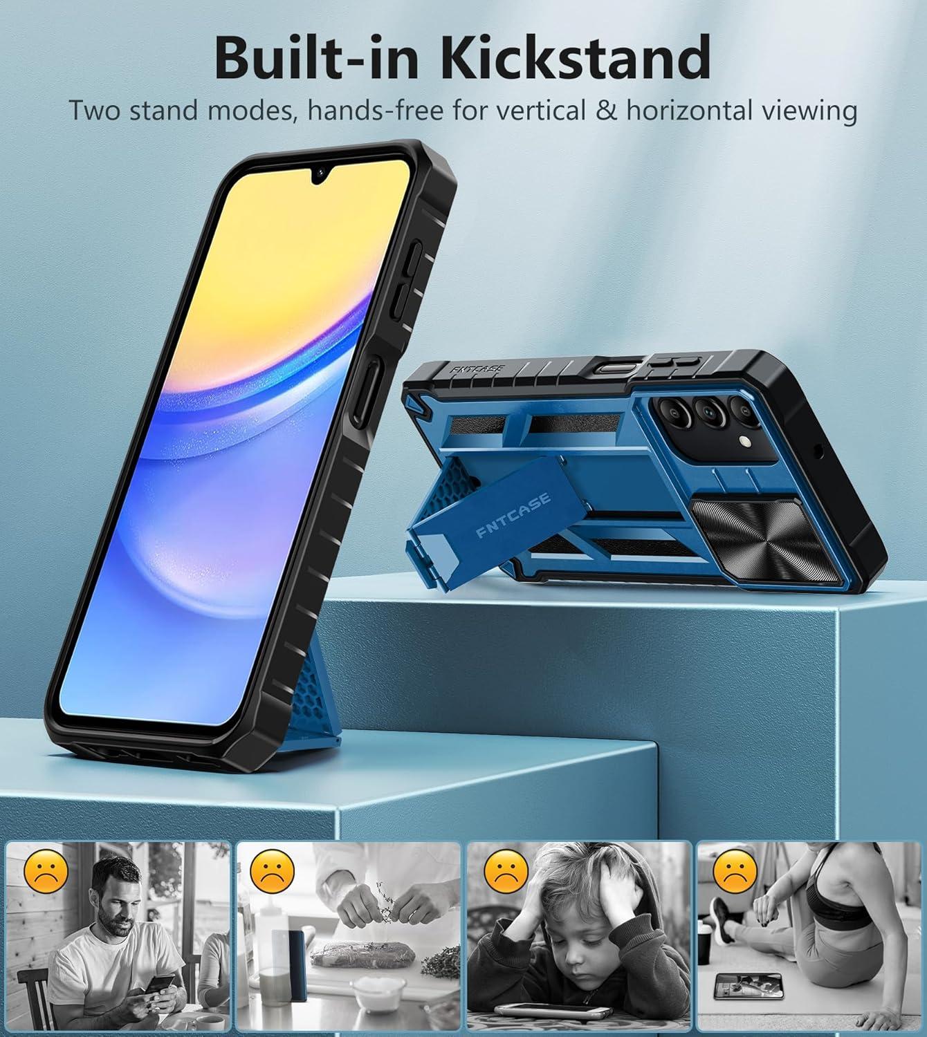 FNTCASE for Samsung Galaxy A16-5G Case: Military Grade Dropproof Cell Phone Cover with Kickstand & Slide | Protective Heavy Duty Rugged Phone Case Bumper Textured Protector (Blue)(Blue)