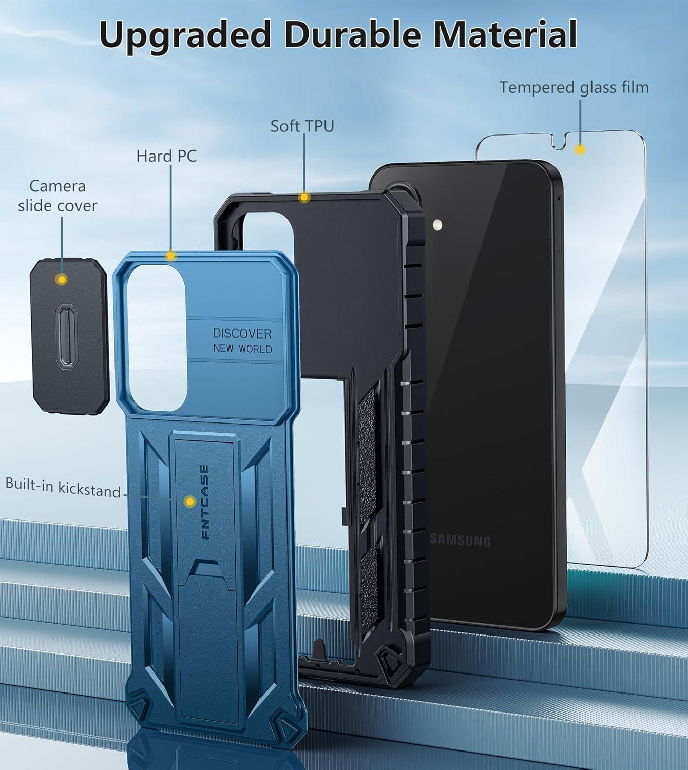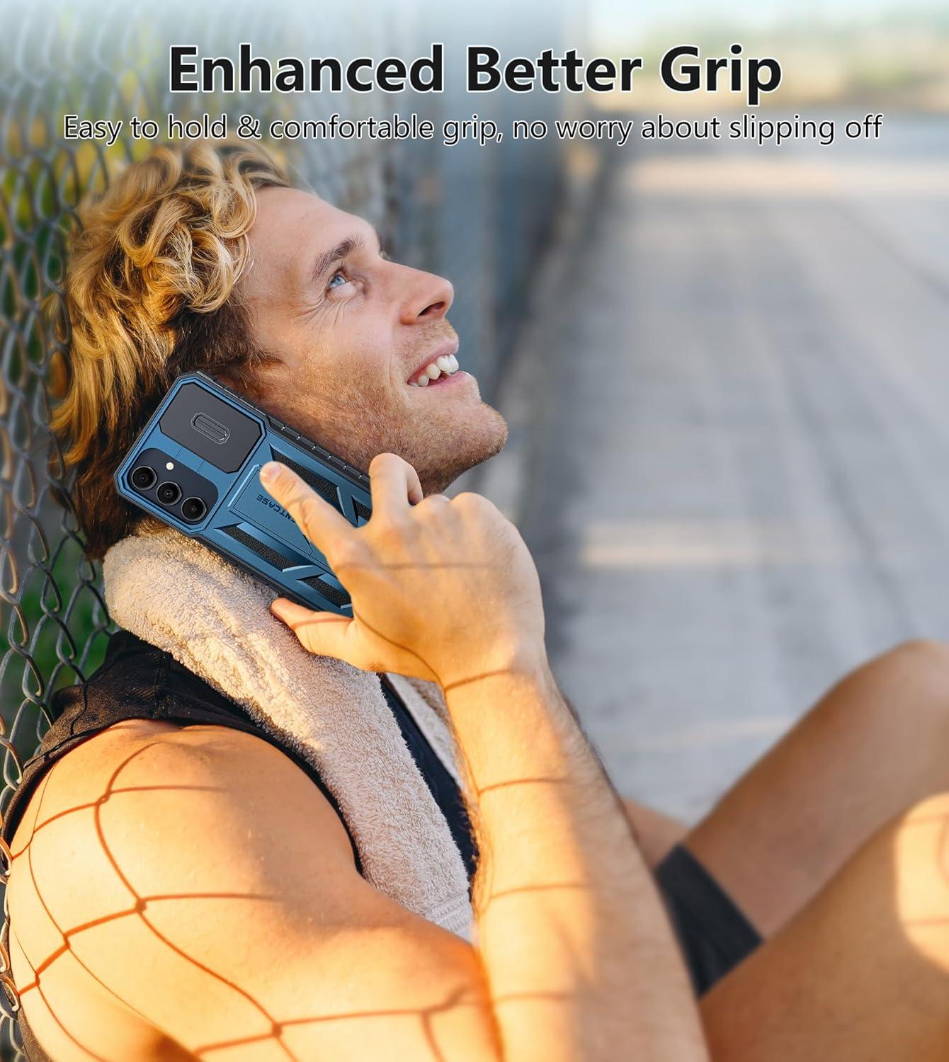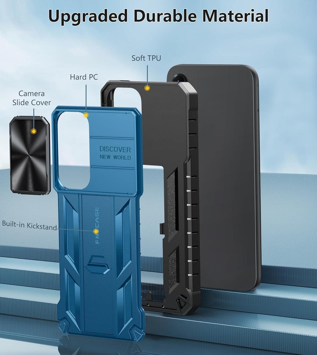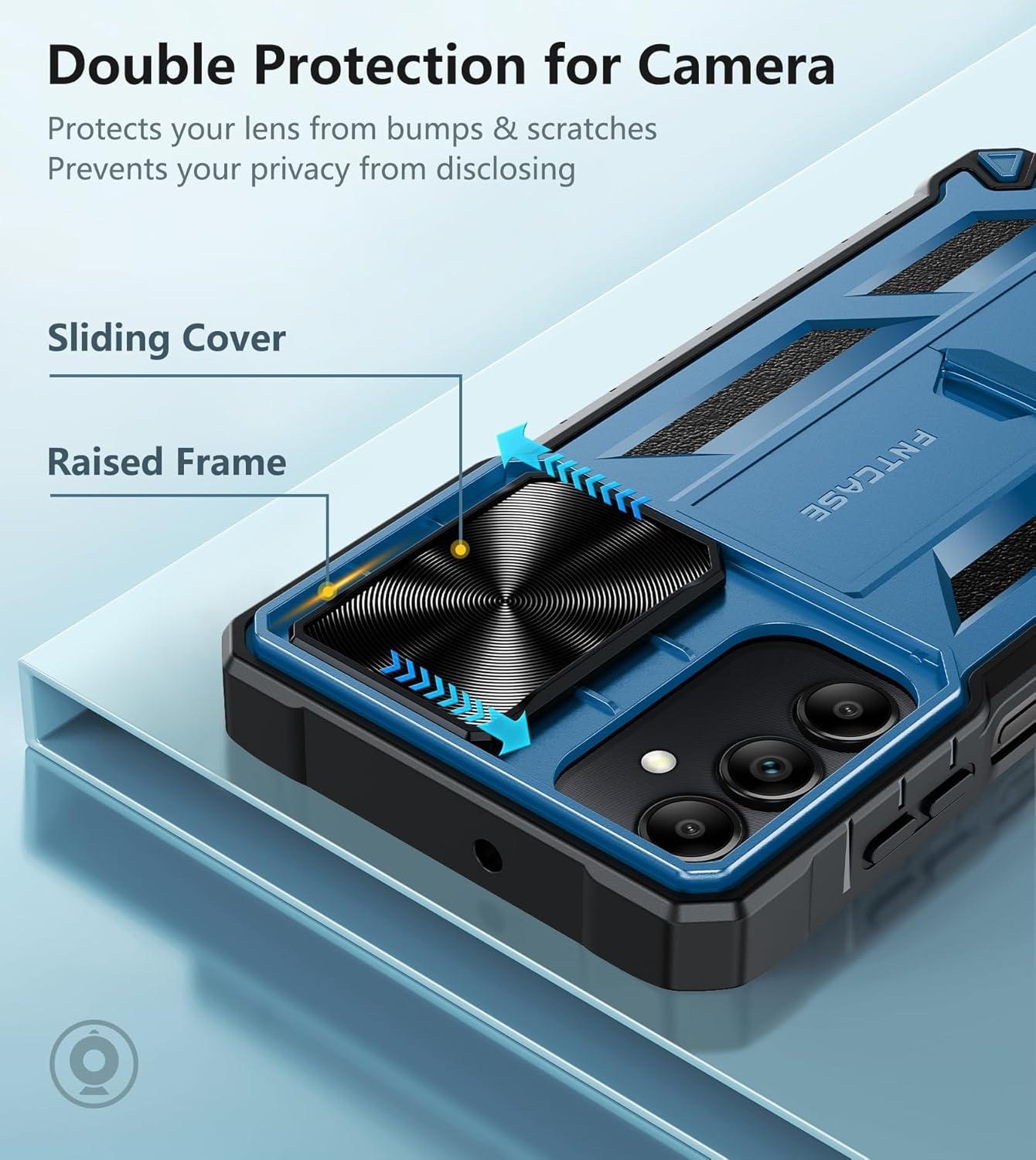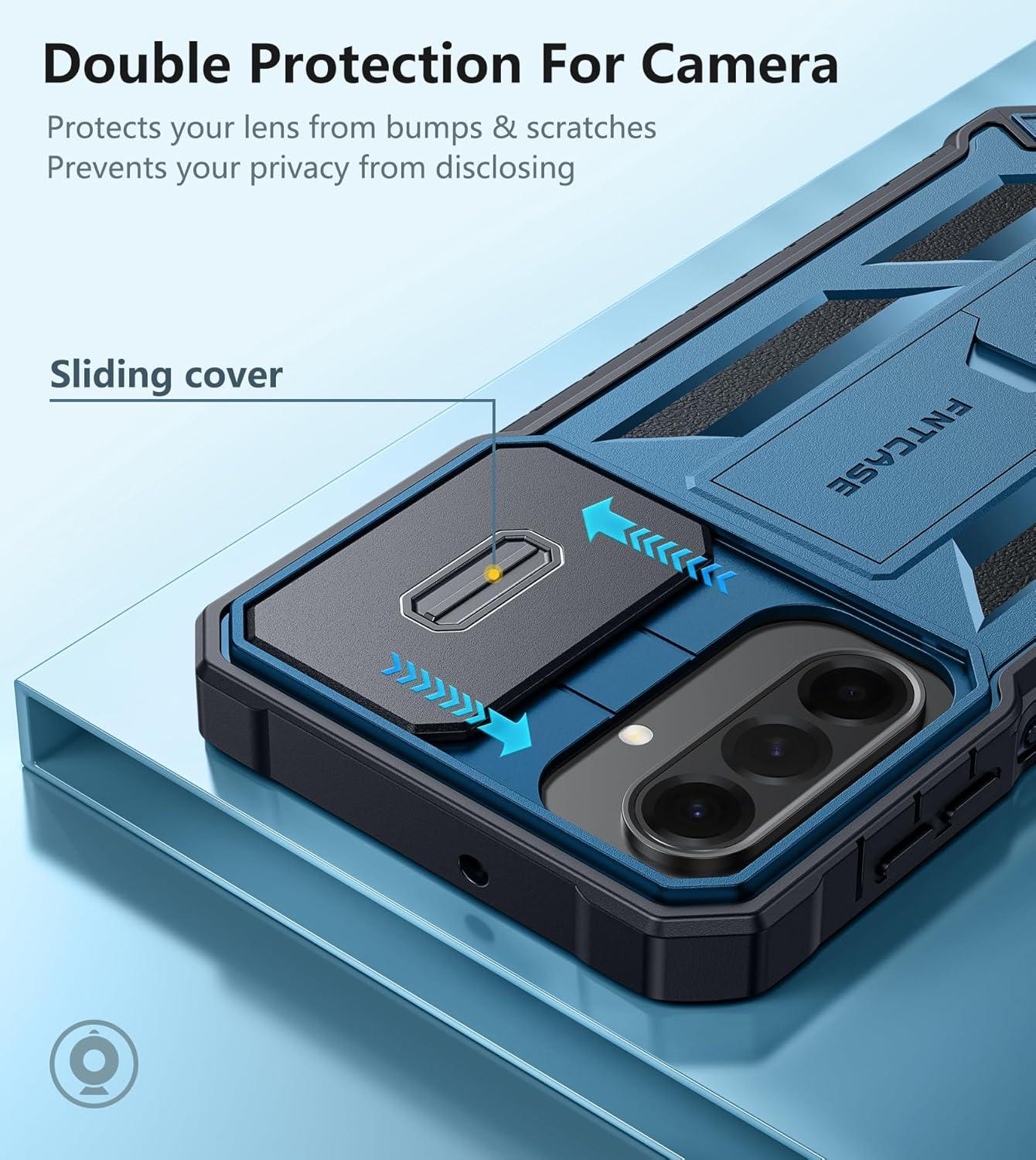 FNTCASE for Samsung Galaxy A16-5G Case: Military Grade Dropproof Cell Phone Cover with Kickstand & Slide | Protective Heavy Duty Rugged Phone Case Bumper Textured Protector (Blue)(Blue)