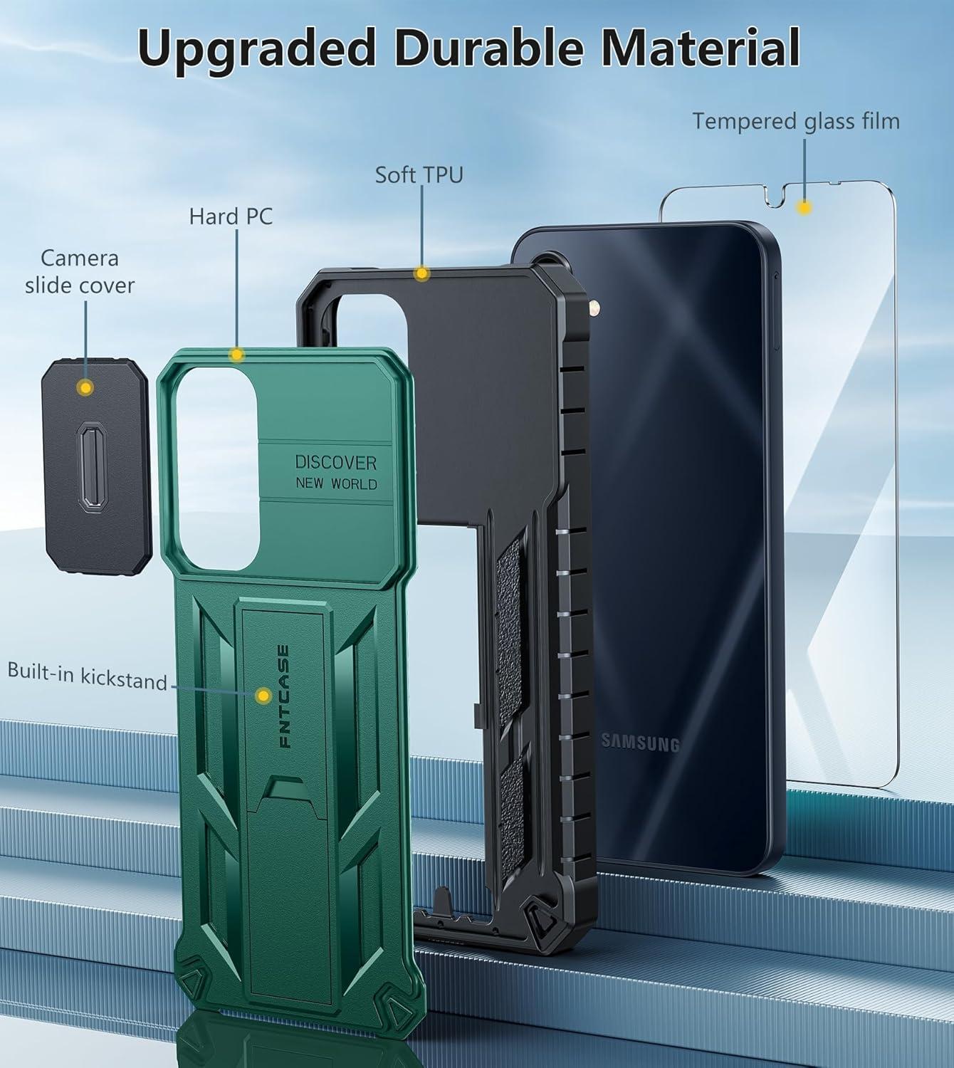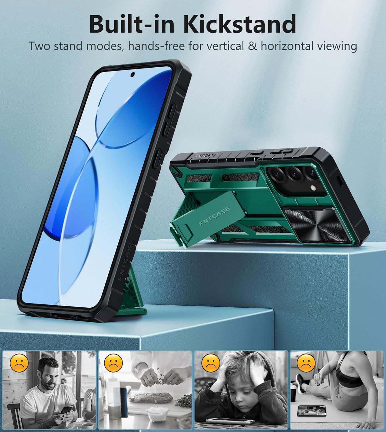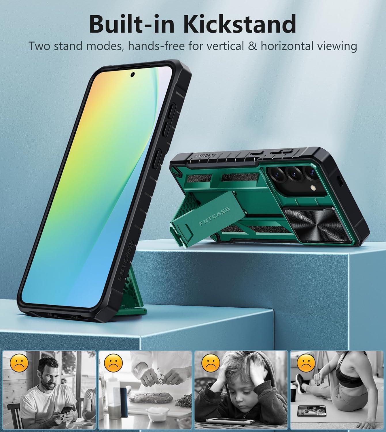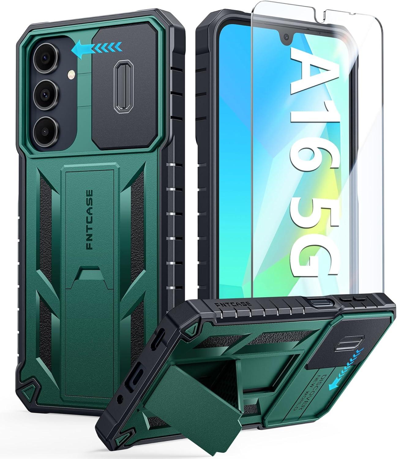 FNTCASE for Samsung Galaxy A16-5G Case: Military Grade Dropproof Cell Phone Cover with Kickstand & Slide | Protective Heavy Duty Rugged Phone Case Bumper Textured Protector (Blue)(Green)
