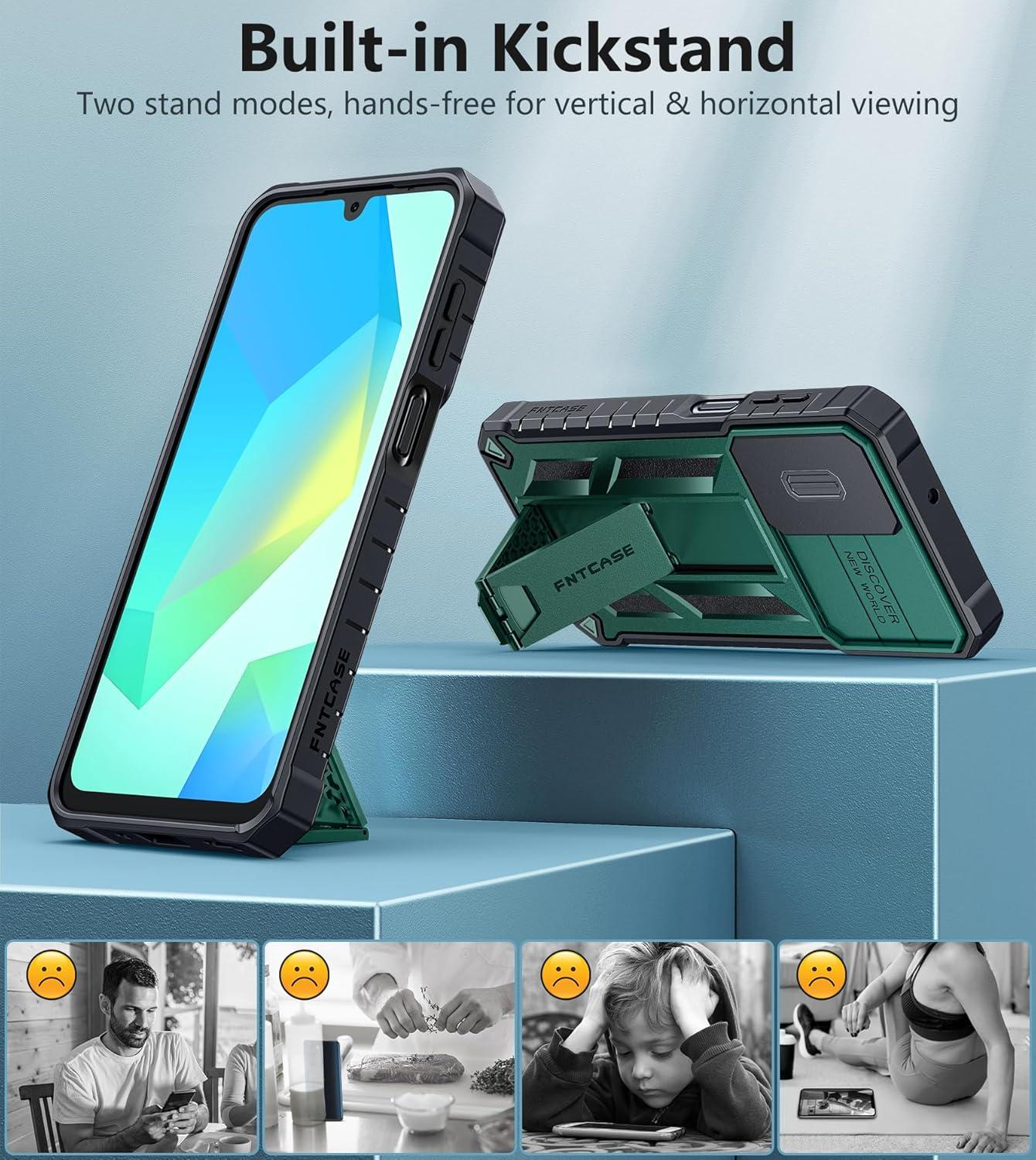 Built-in Kickstand: This for Galaxy A16 case with hidden stand works perfectly both in vertical and horizontal stable stand angles. Convenient for reading, watching movies, playing games and face-time with your friends. Provides hands-free portrait and landscape viewing