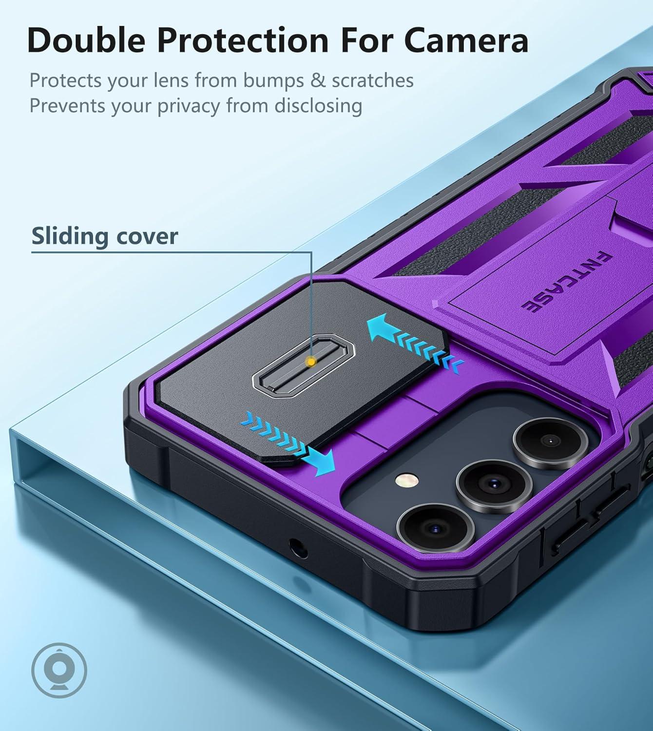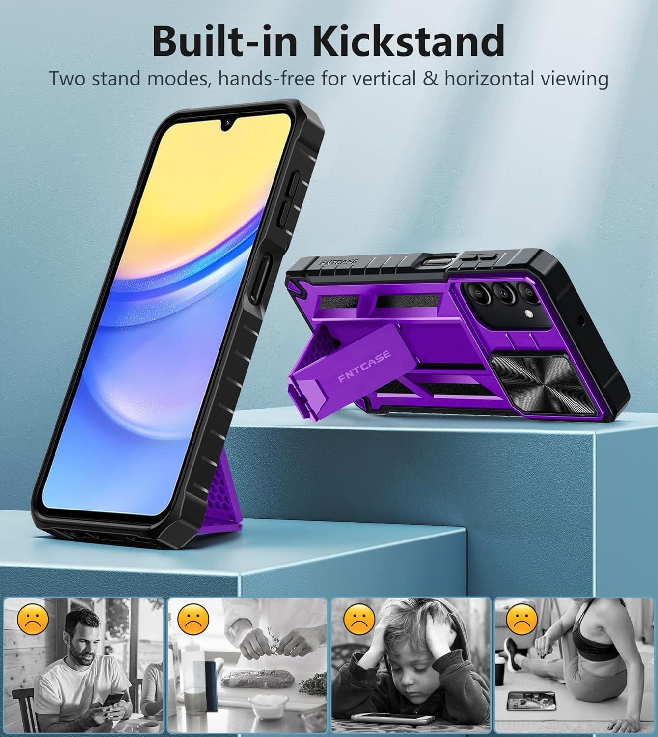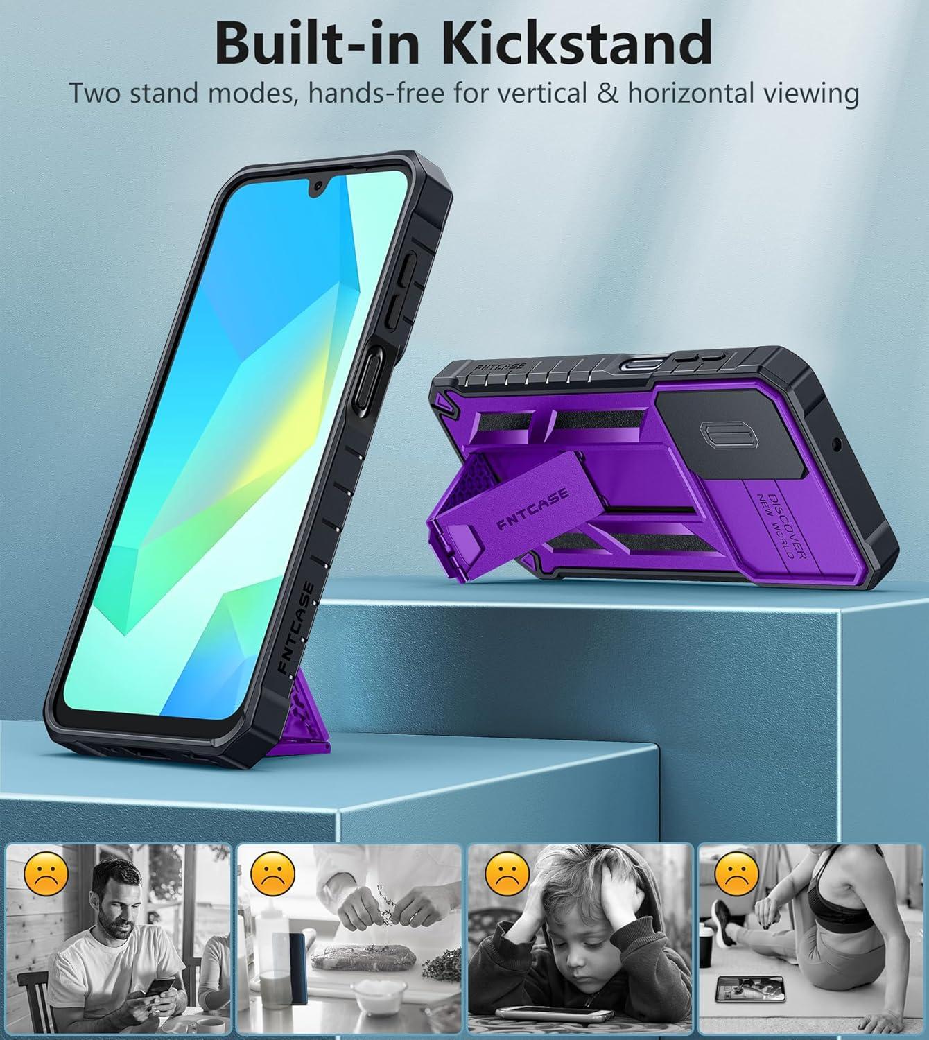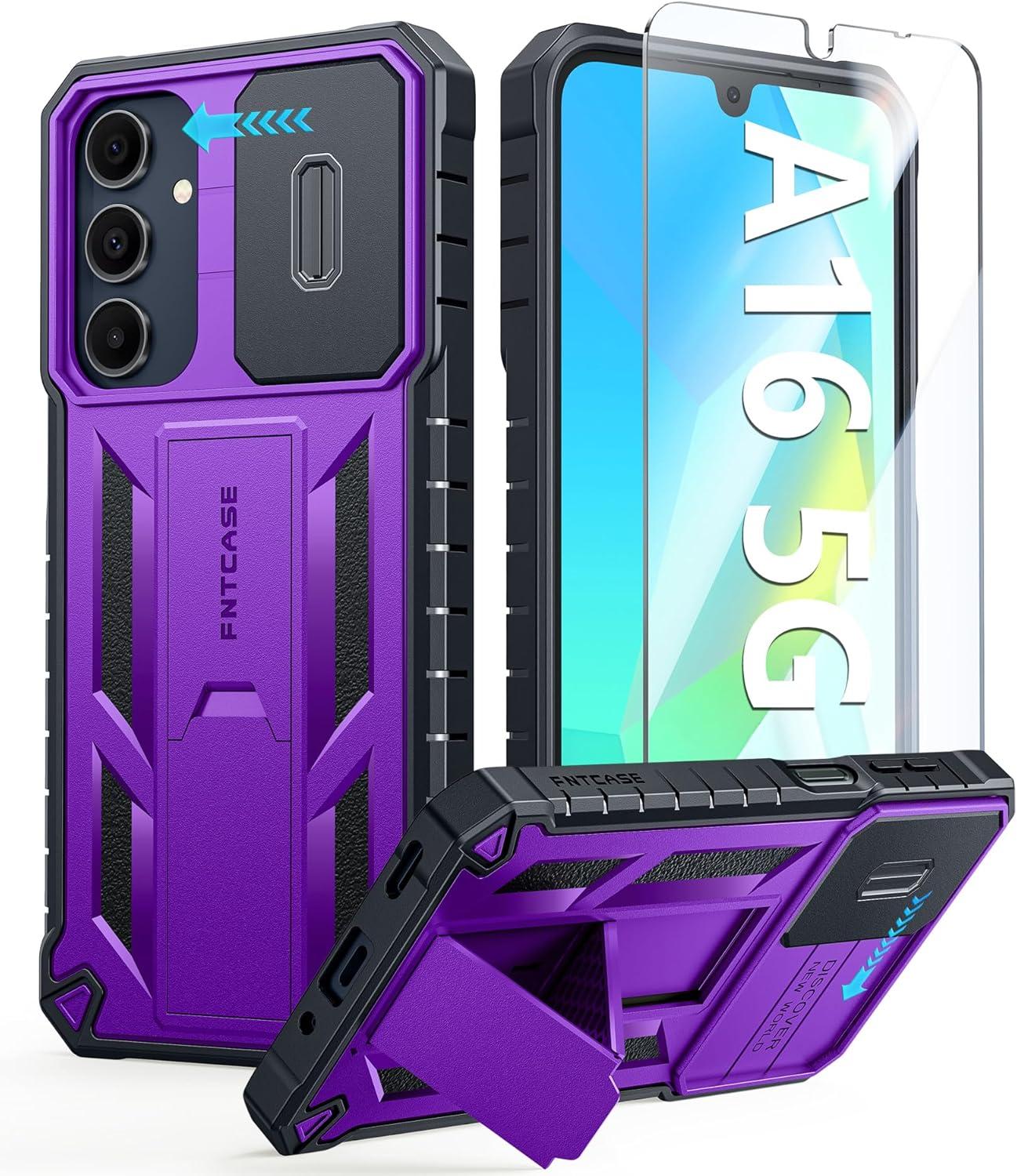 FNTCASE for Samsung Galaxy A16-5G Case: Military Grade Dropproof Cell Phone Cover with Kickstand & Slide | Protective Heavy Duty Rugged Phone Case Bumper Textured Protector (Blue)(Purple)