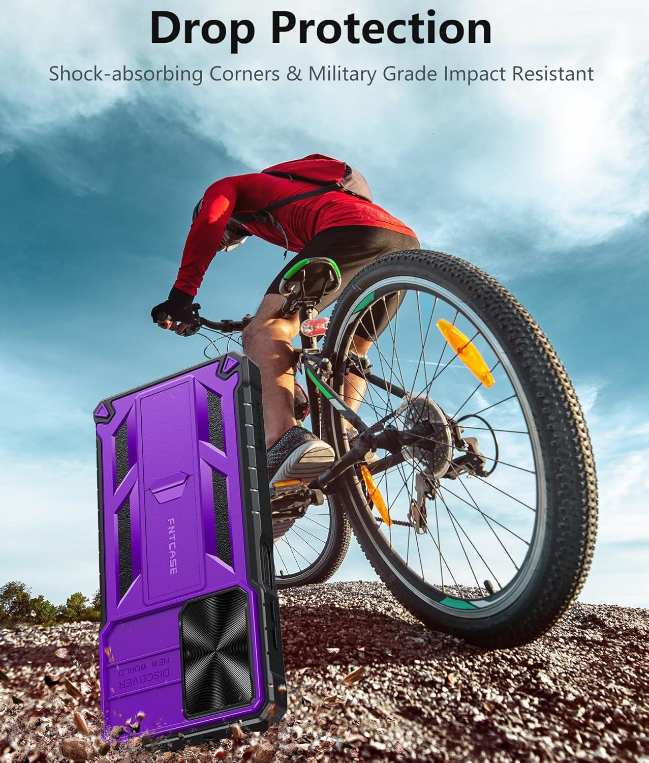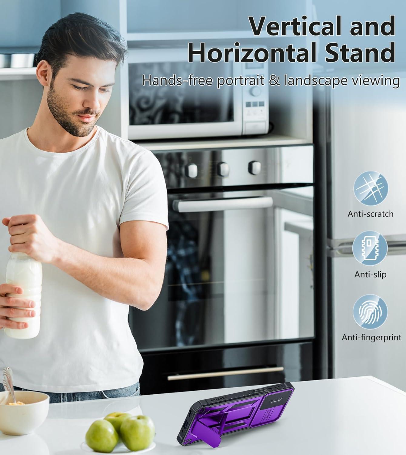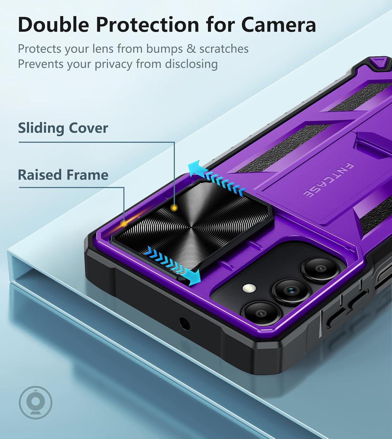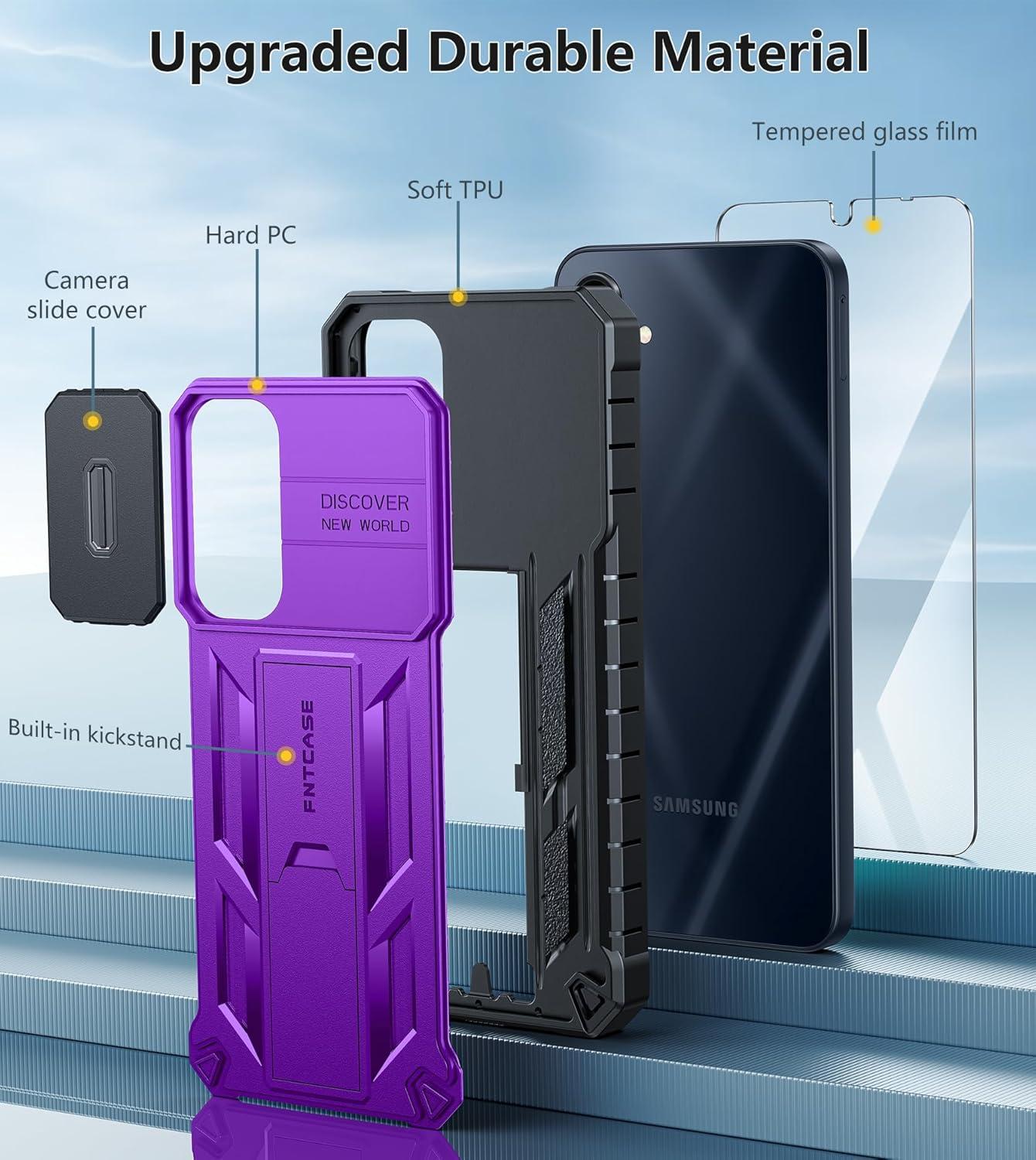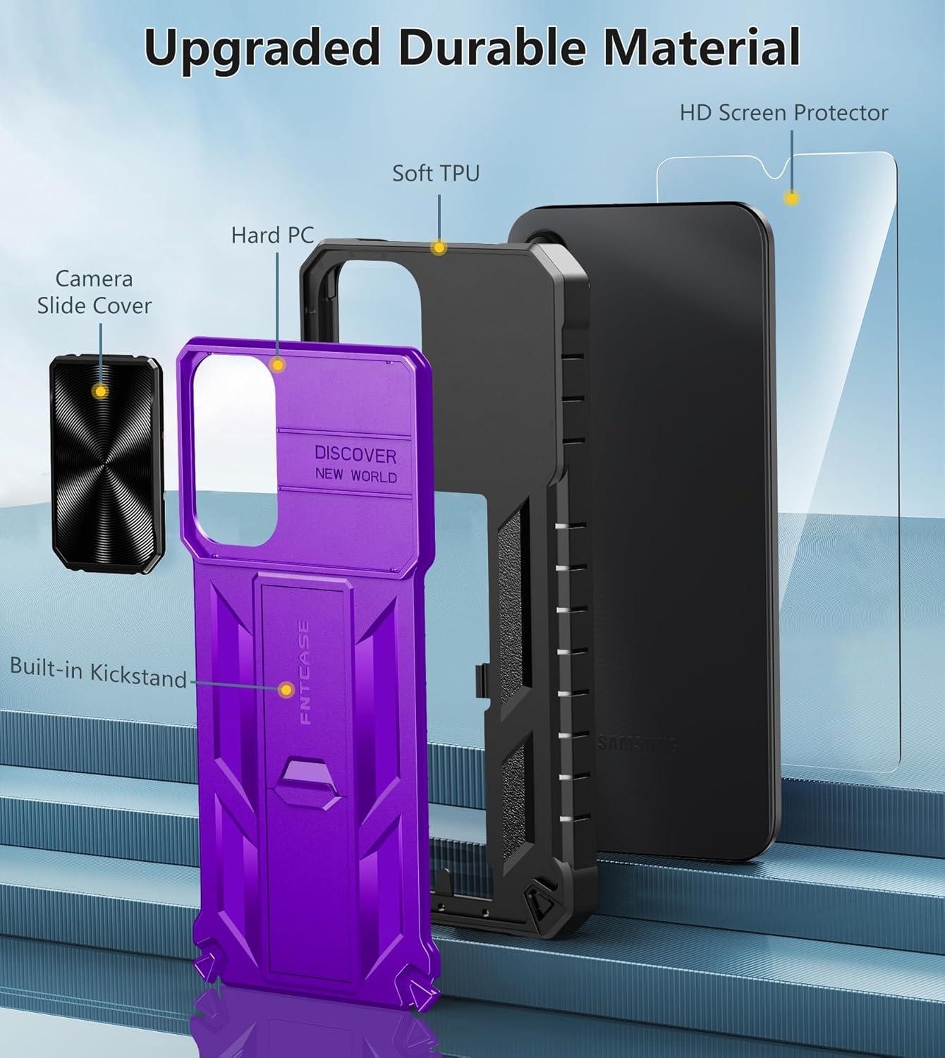 FNTCASE for Samsung Galaxy A16-5G Case: Military Grade Dropproof Cell Phone Cover with Kickstand & Slide | Protective Heavy Duty Rugged Phone Case Bumper Textured Protector (Blue)(Purple)