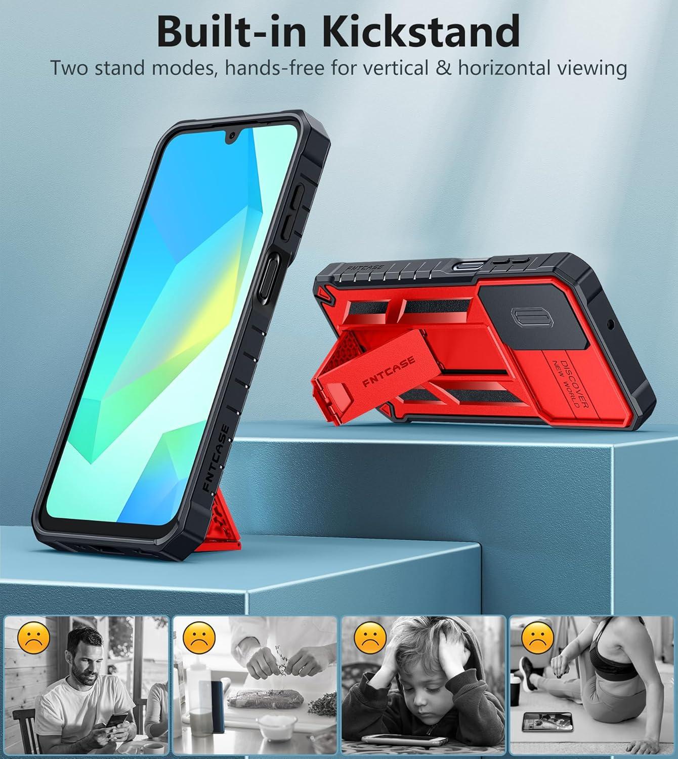 Built-in Kickstand: This for Galaxy A16 case with hidden stand works perfectly both in vertical and horizontal stable stand angles. Convenient for reading, watching movies, playing games and face-time with your friends. Provides hands-free portrait and landscape viewing