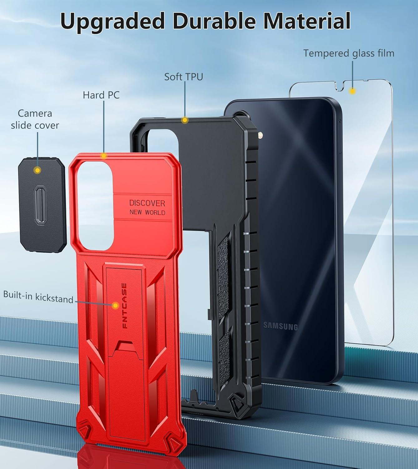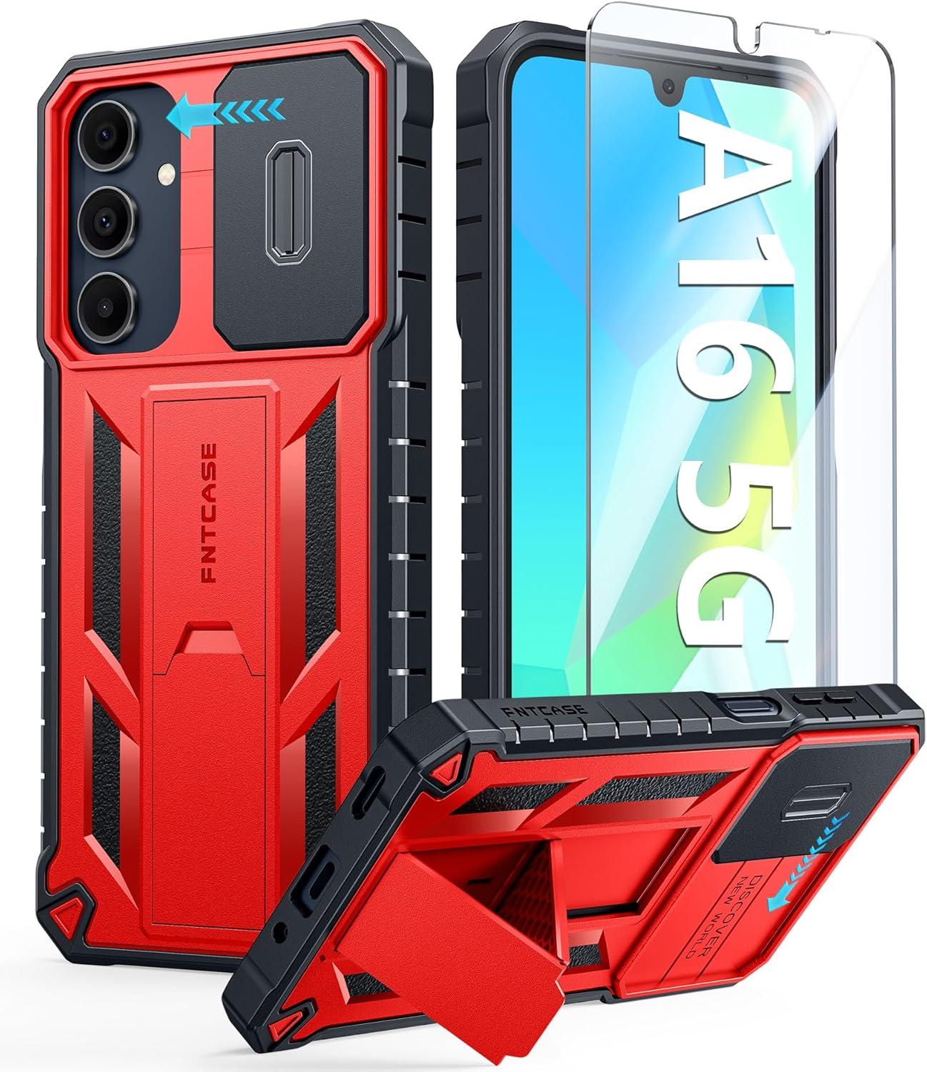 FNTCASE for Samsung Galaxy A16-5G Case: Military Grade Dropproof Cell Phone Cover with Kickstand & Slide | Protective Heavy Duty Rugged Phone Case Bumper Textured Protector (Blue)(Red)