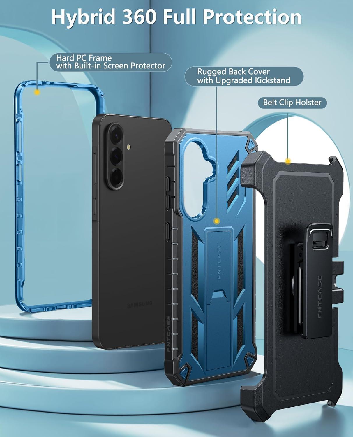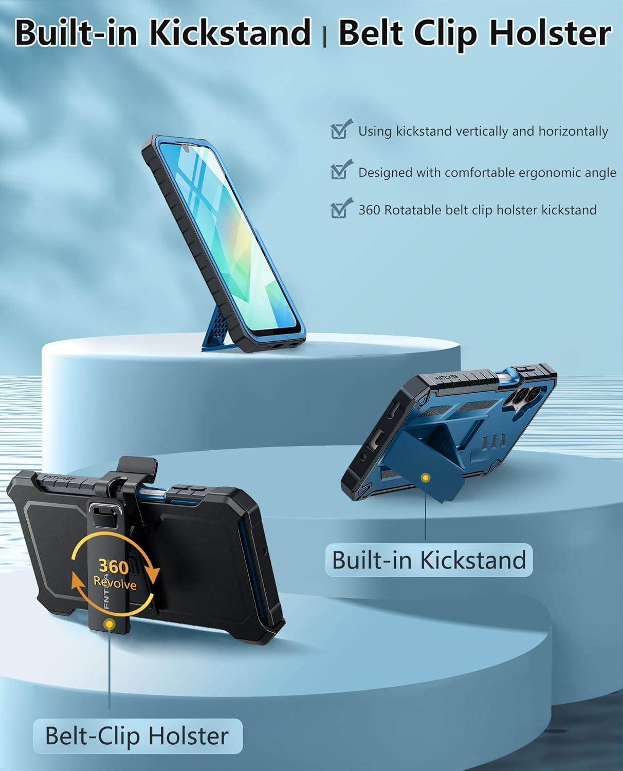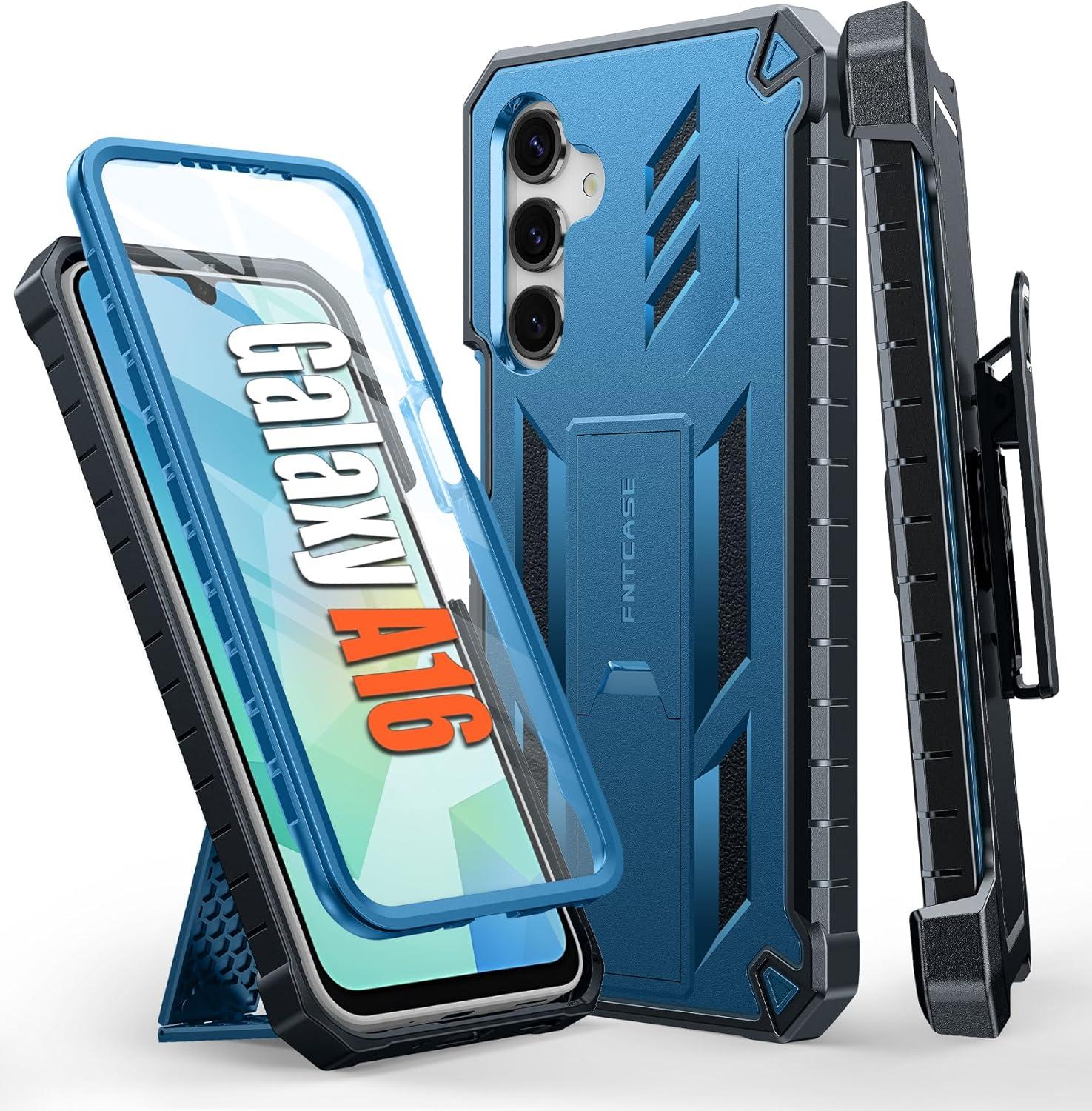 FNTCASE for Samsung Galaxy A16-5G Case: Military Grade Rugged Cell Phone Cover with Kickstand & Holster | Shockproof TPU Protection Bumper Matte Textured Design for Galaxy A16 Cases 6.7 inch – Black(Blue)