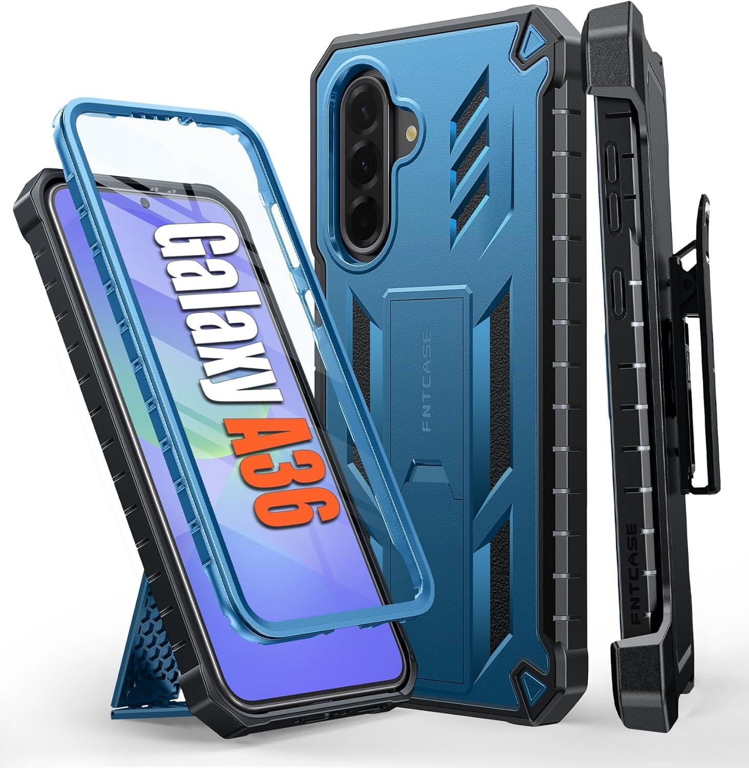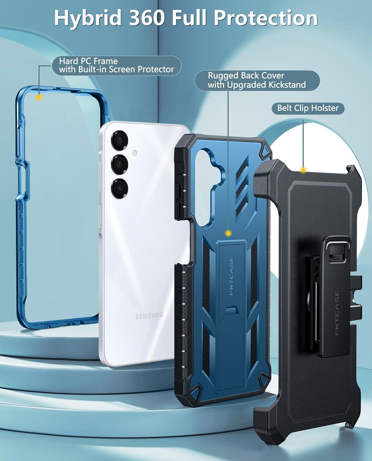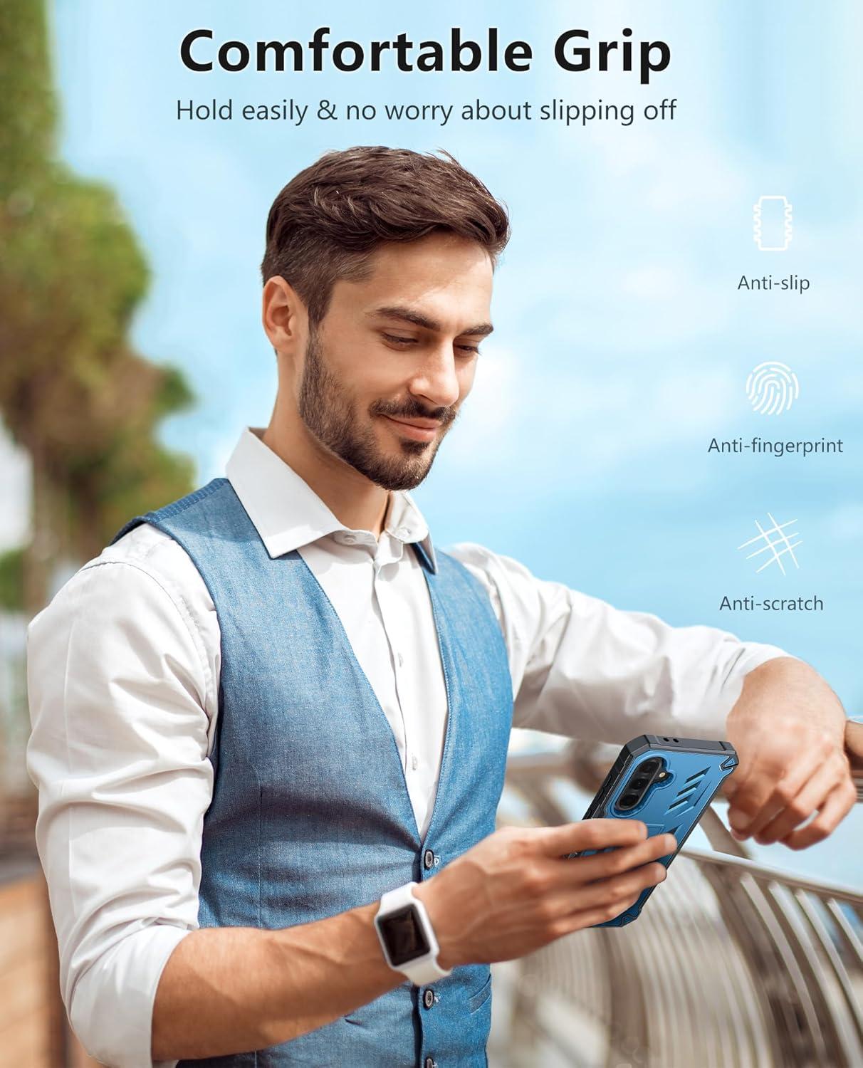FNTCASE for Samsung Galaxy A16-5G Case: Military Grade Rugged Cell Phone Cover with Kickstand & Holster | Shockproof TPU Protection Bumper Matte Textured Design for Galaxy A16 Cases 6.7 inch – Black(Blue)