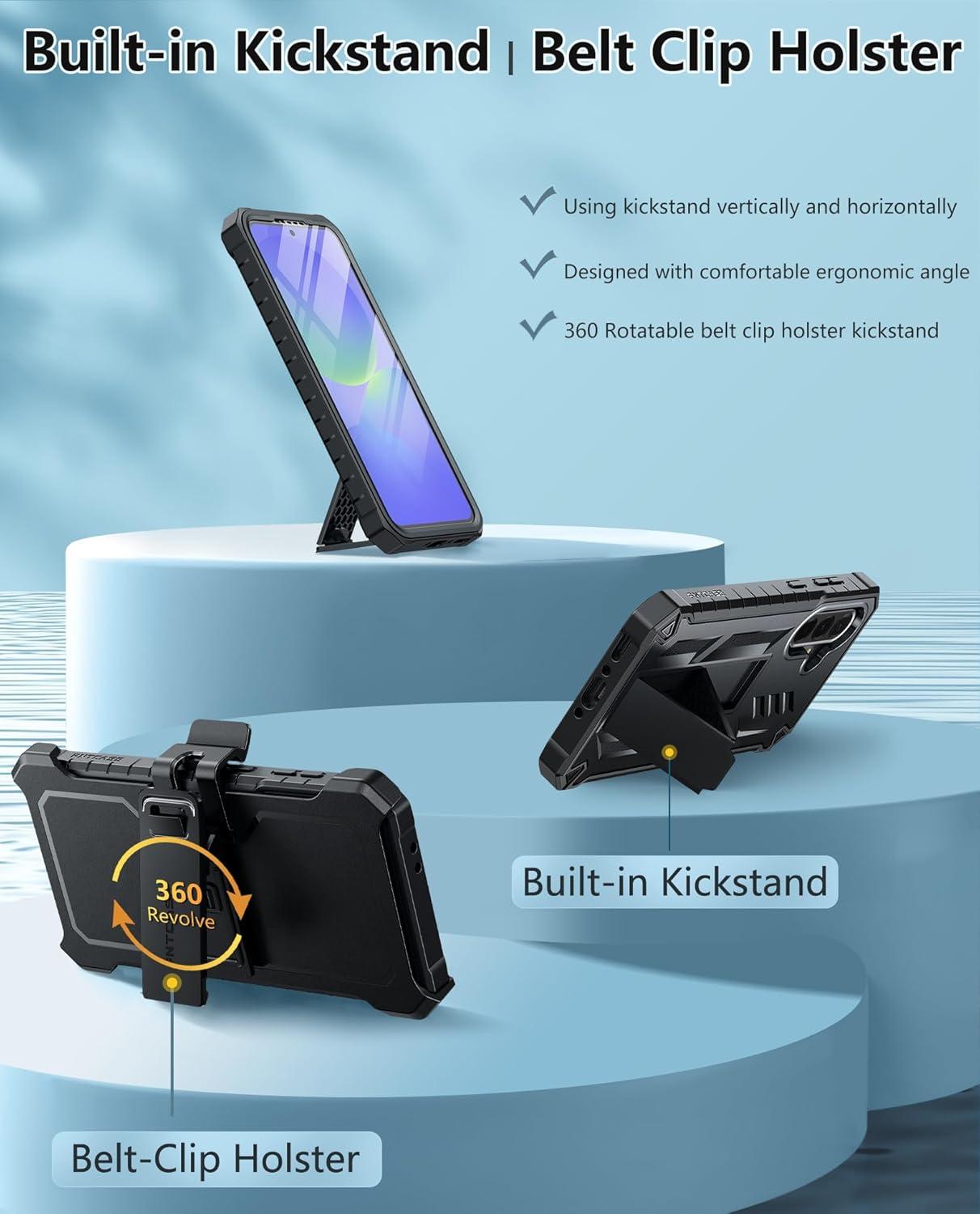 360 Rotatable Belt-Clip: Samsung Galaxy A16 Case can be rotated 360,and you can rotate it to your liking. Detachable swivel belt clip holster for convenient,hands-free,pocket-free carrying. Provides all round protection for your mobile phone case in all activities,especially when working outdoors,doing sports,camping,traveling