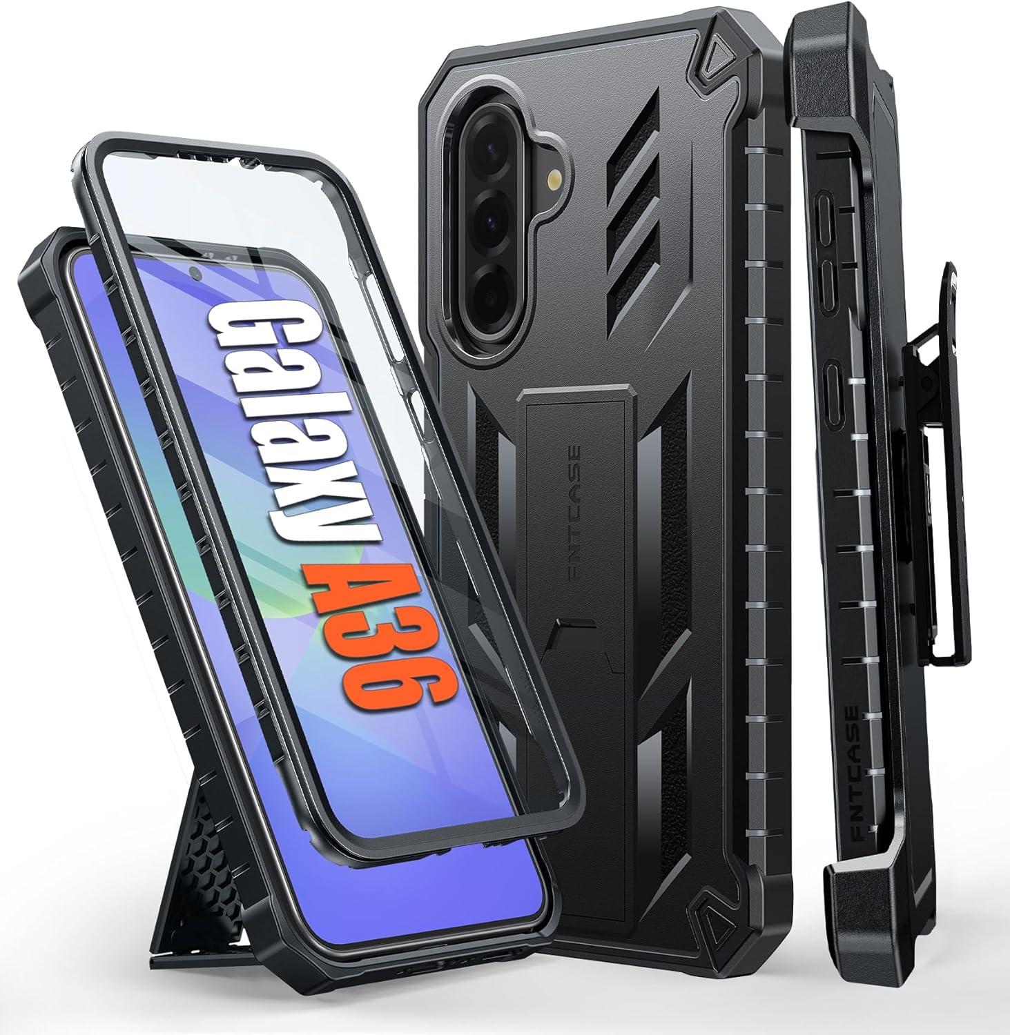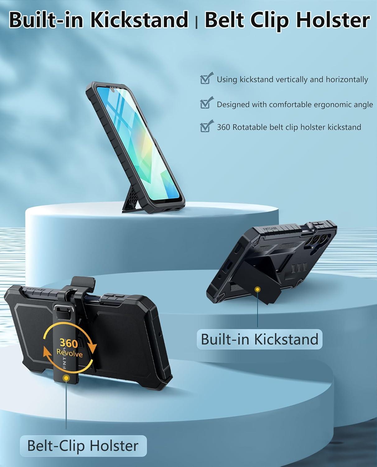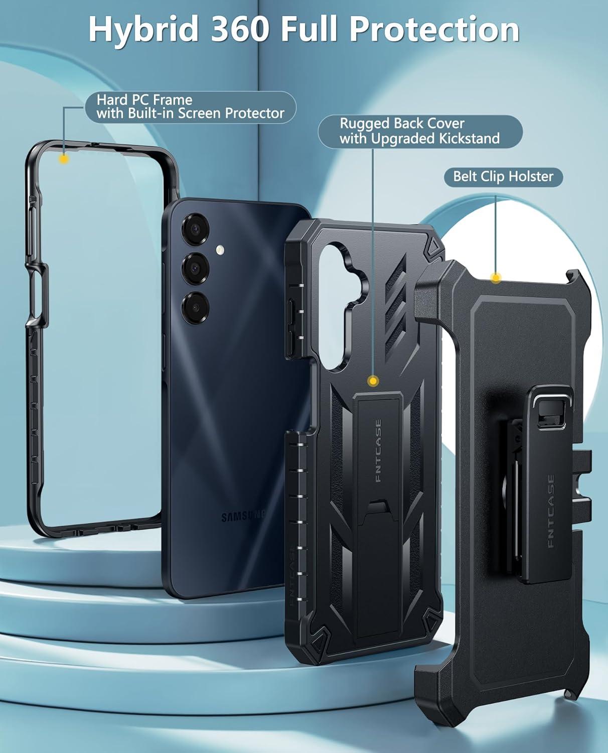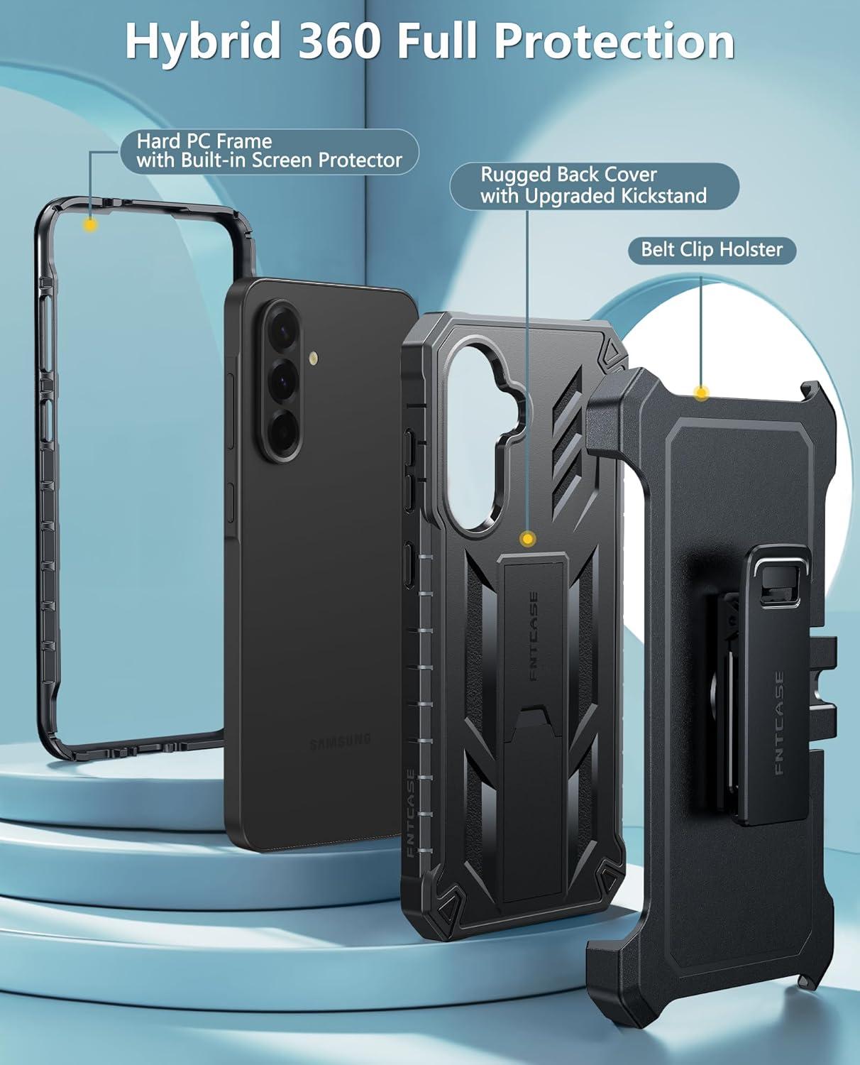 FNTCASE for Samsung Galaxy A16-5G Case: Military Grade Rugged Cell Phone Cover with Kickstand & Holster | Shockproof TPU Protection Bumper Matte Textured Design for Galaxy A16 Cases 6.7 inch – Black(Black)