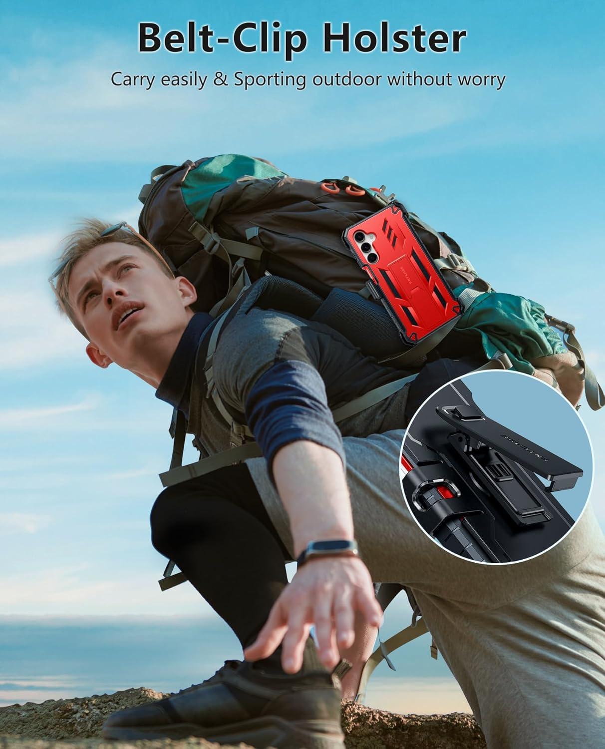 FNTCASE for Samsung Galaxy A16-5G Case: Military Grade Rugged Cell Phone Cover with Kickstand & Holster | Shockproof TPU Protection Bumper Matte Textured Design for Galaxy A16 Cases 6.7 inch – Black(Red)