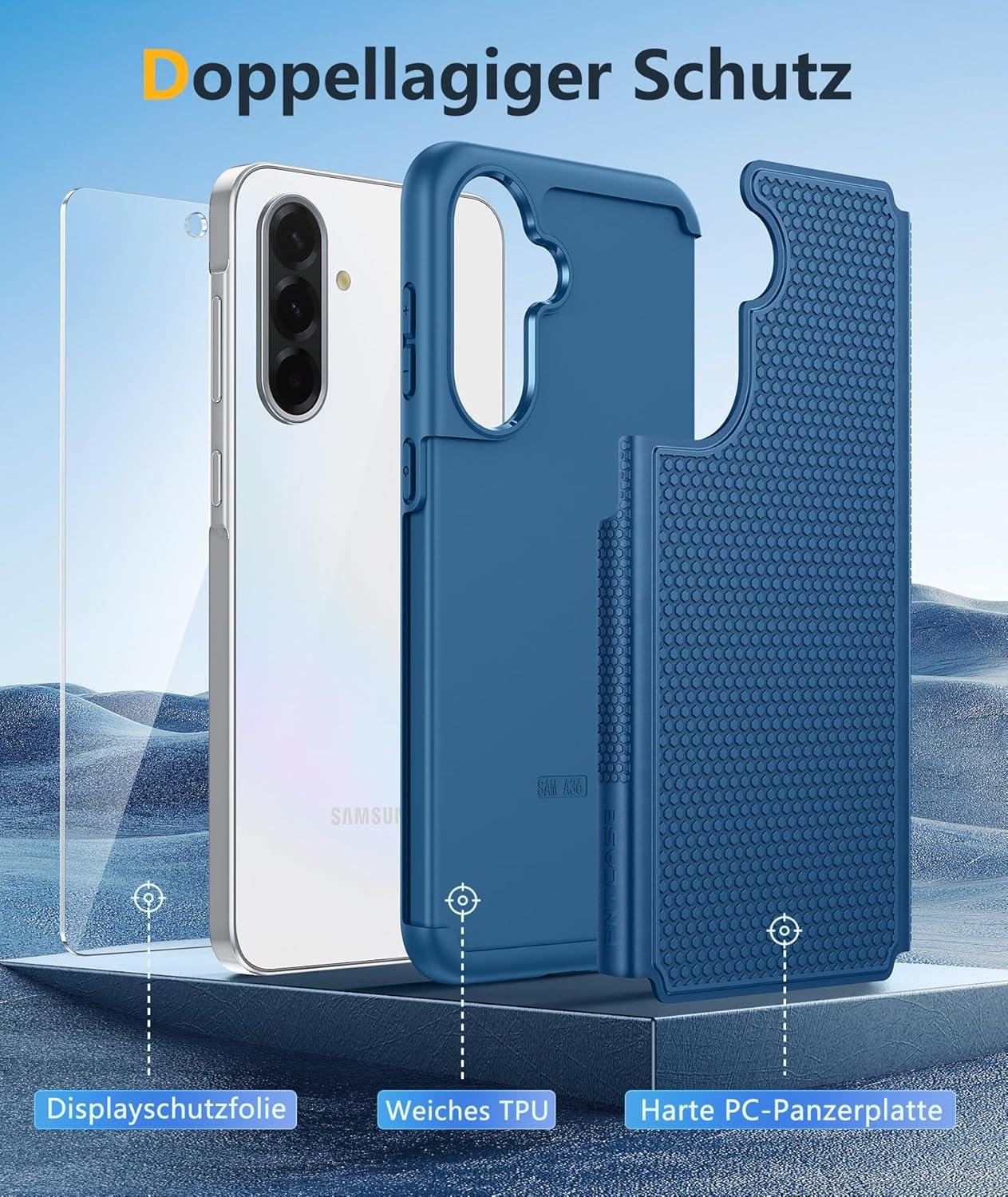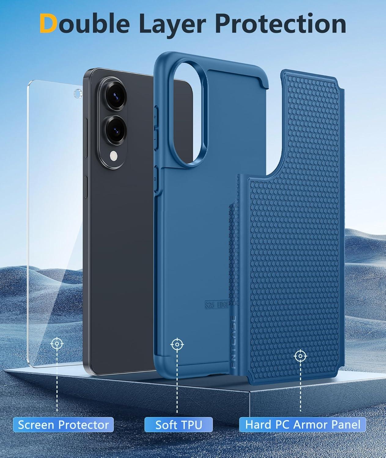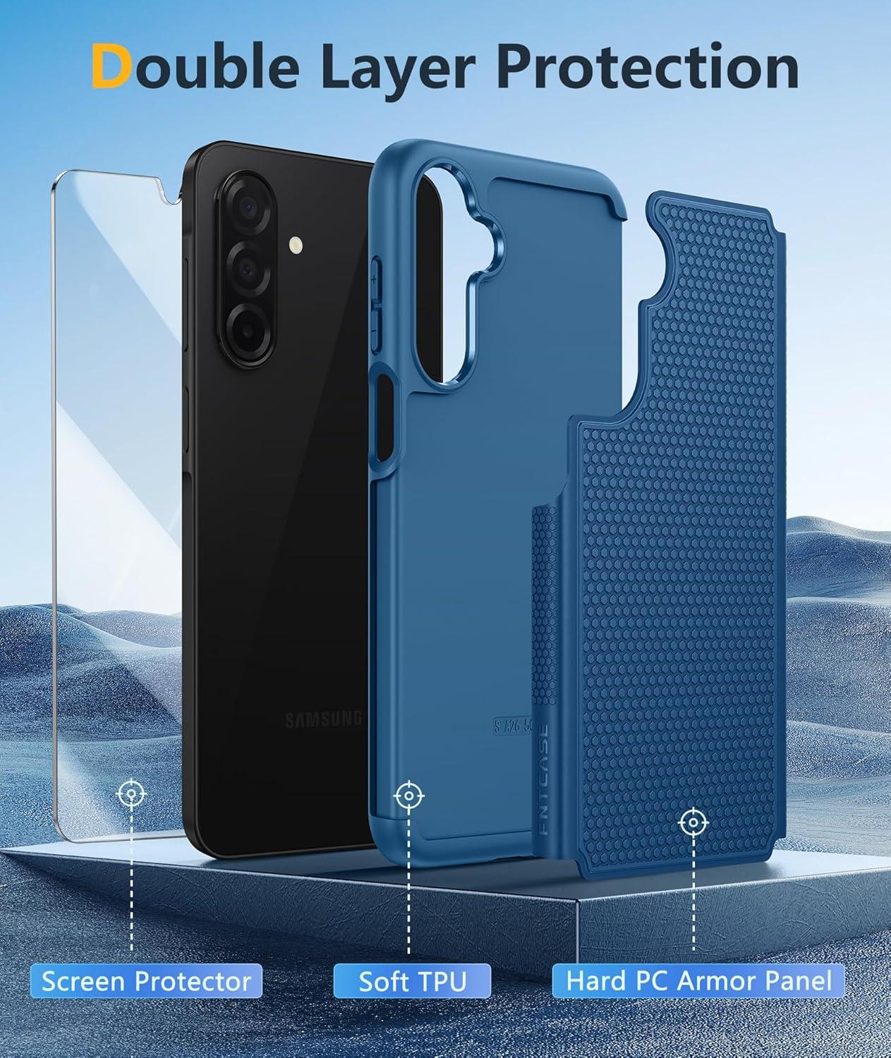 FNTCASE for Samsung Galaxy A25 Case: Galaxy A25 5G Phone Case Dual Layer Protective Phone Cover Rugged Full Body Drop Protection Shockproof Phone Case (Black)(Blue)