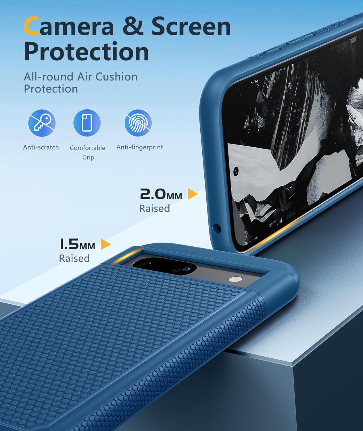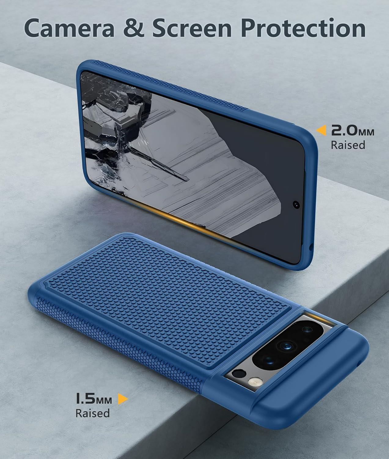 Raised Edges to Protect the Camera and Screen: Each camera lens is fully surrounded and protected at 360 degrees. A 1.5 mm (0.06 in) raised bezel on the screen and a 2.0 mm (0.08 in) raised bezel on the camera lens protect against everyday scratches when the phone is face down