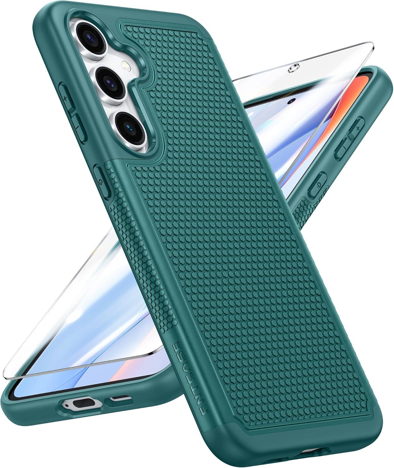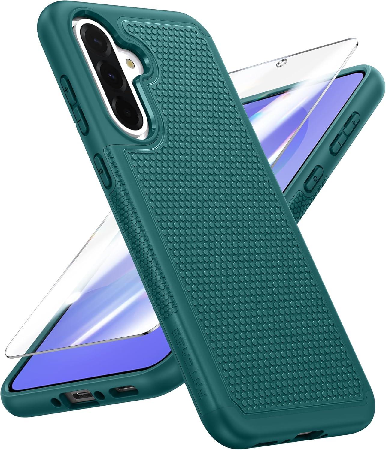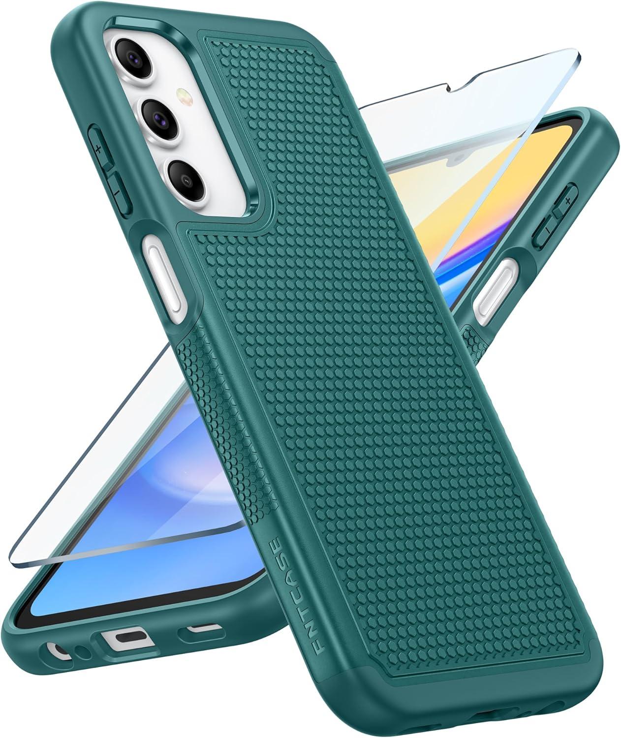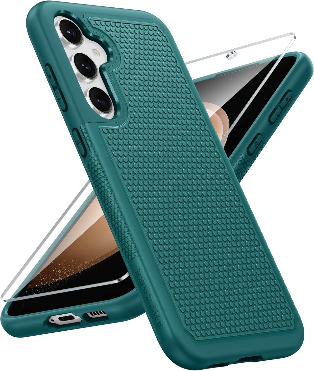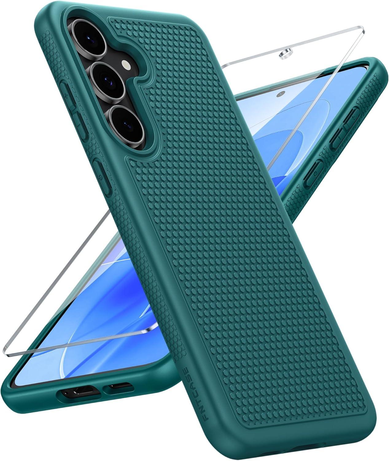 FNTCASE for Samsung Galaxy A25 Case: Galaxy A25 5G Phone Case Dual Layer Protective Phone Cover Rugged Full Body Drop Protection Shockproof Phone Case (Black)(Green)