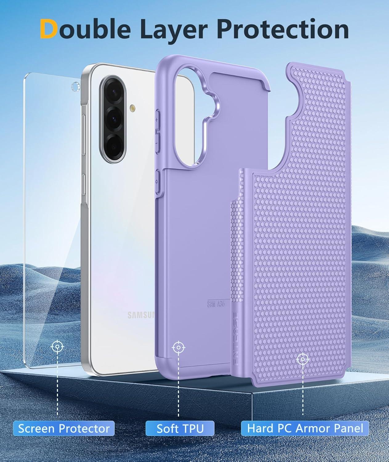 FNTCASE for Samsung Galaxy A25 Case: Galaxy A25 5G Phone Case Dual Layer Protective Phone Cover Rugged Full Body Drop Protection Shockproof Phone Case (Black)(Light Purple)