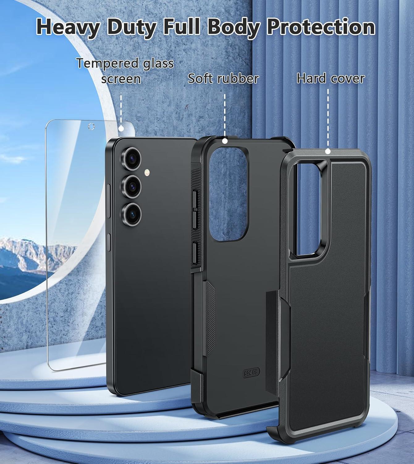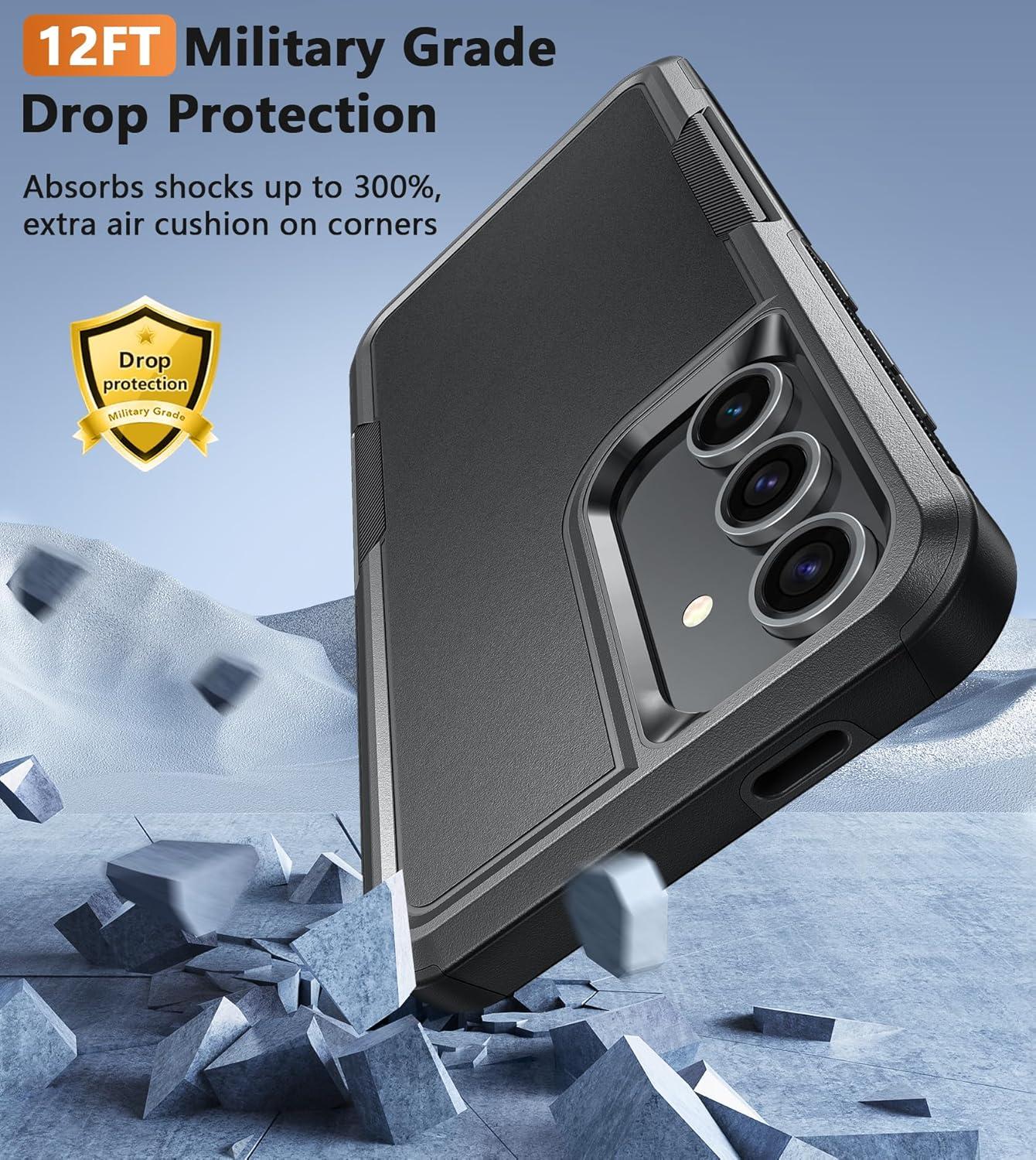 FNTCASE for Samsung Galaxy A25 Case: Galaxy A25 5G Phone Case Dual Layer Protective Phone Cover Rugged Full Body Drop Protection Shockproof Phone Case (Black)(Matte Black)