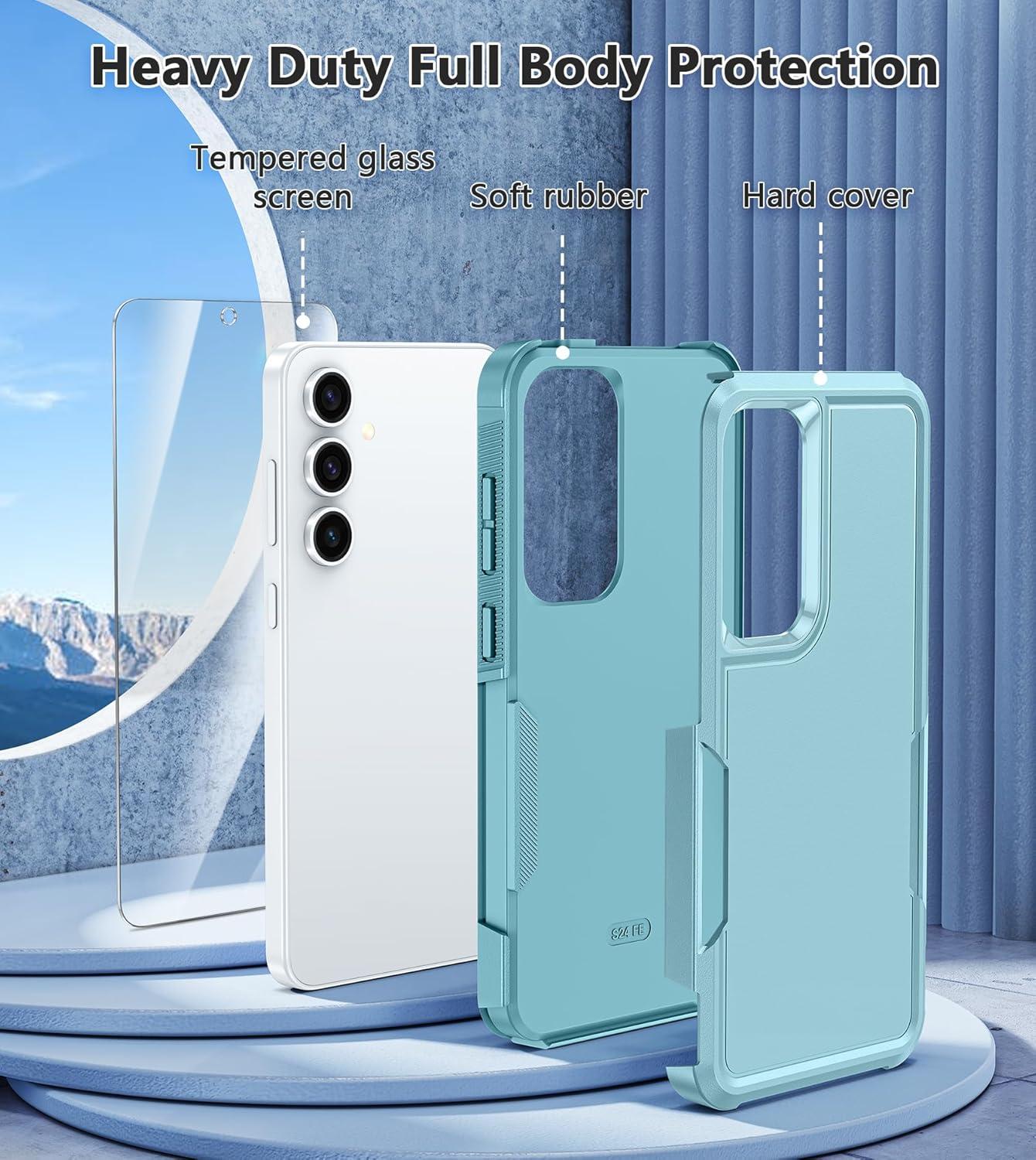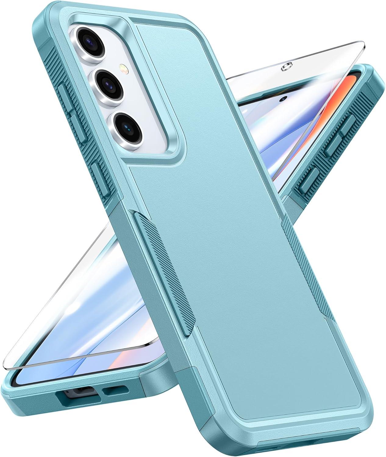 FNTCASE for Samsung Galaxy A25 Case: Galaxy A25 5G Phone Case Dual Layer Protective Phone Cover Rugged Full Body Drop Protection Shockproof Phone Case (Black)(Matte Mint Green)