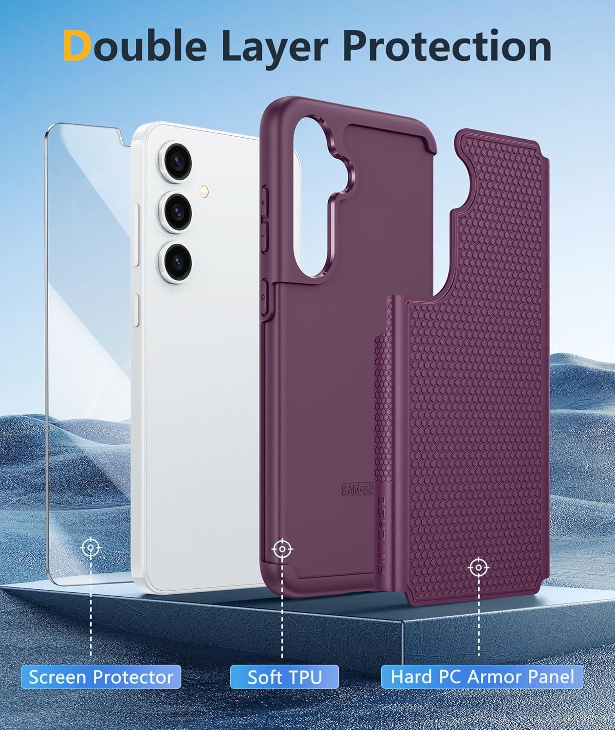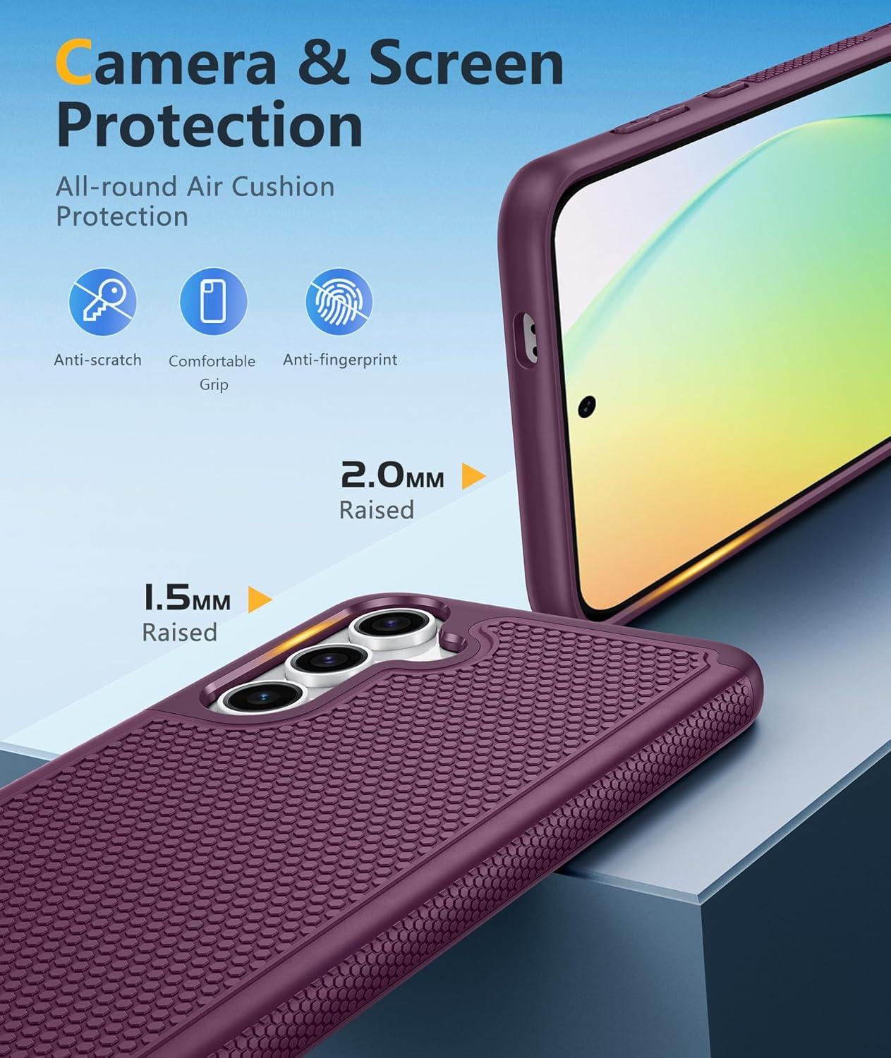 Non-slip Texture & Excellent Grip: The precision-engineered hexagonal cellular non-slip texture on the Samsung S24 Case back shield brings a firmer grip, and prevents your mobile phone from unexpected drops, bumps, and wear in daily use