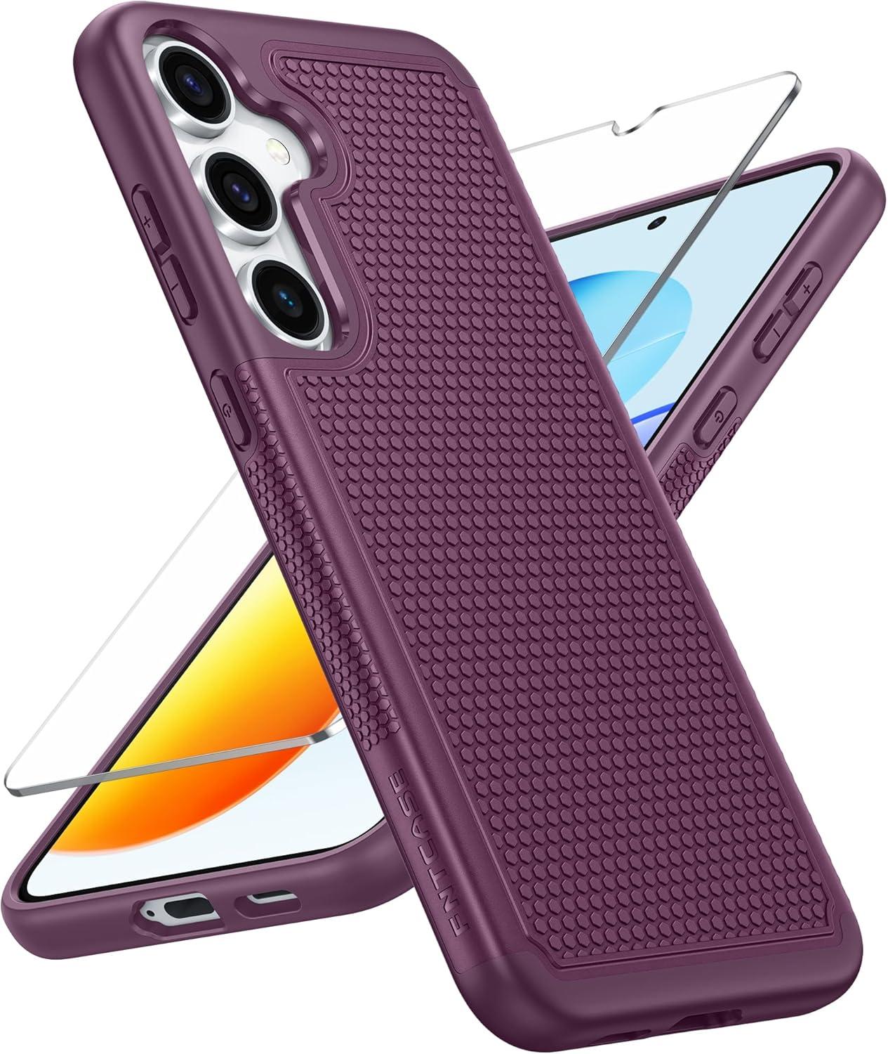 FNTCASE for Samsung Galaxy S24 Case: Dual Layer Heavy Duty Cell Phone Protective Cover Shockproof Rugged with Non-Slip Textured – Military Drop Protection Bumper Tough – 2024, 6.2inch Black(Burgundy)