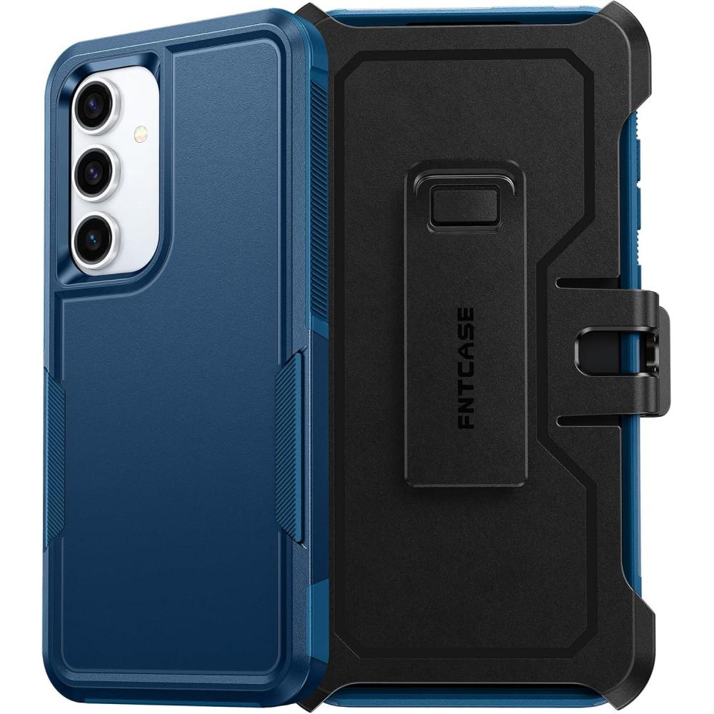 FNTCASE for Samsung Galaxy S24-FE Case: Dual Layer Military Grade Drop Protection Cell Phone Cover with Belt-Clip Holster | Shockproof Rugged Durable Heavy Duty Protective Bumper Tough (Black)(Blue)