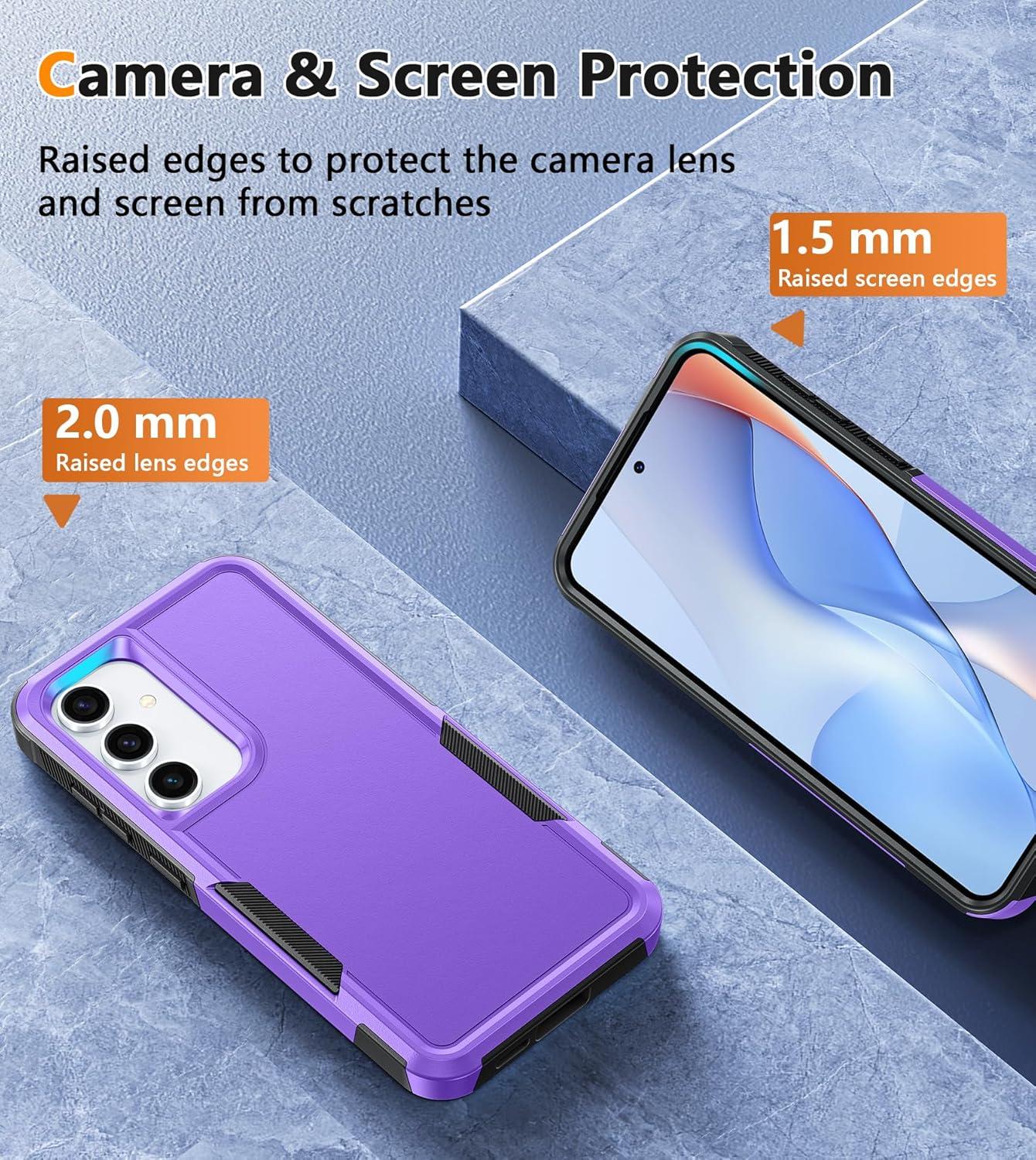 FNTCASE for Samsung Galaxy S24-FE Case: Dual Layer Military Grade Drop Protection Cell Phone Cover with Belt-Clip Holster | Shockproof Rugged Durable Heavy Duty Protective Bumper Tough (Black)(Purple)