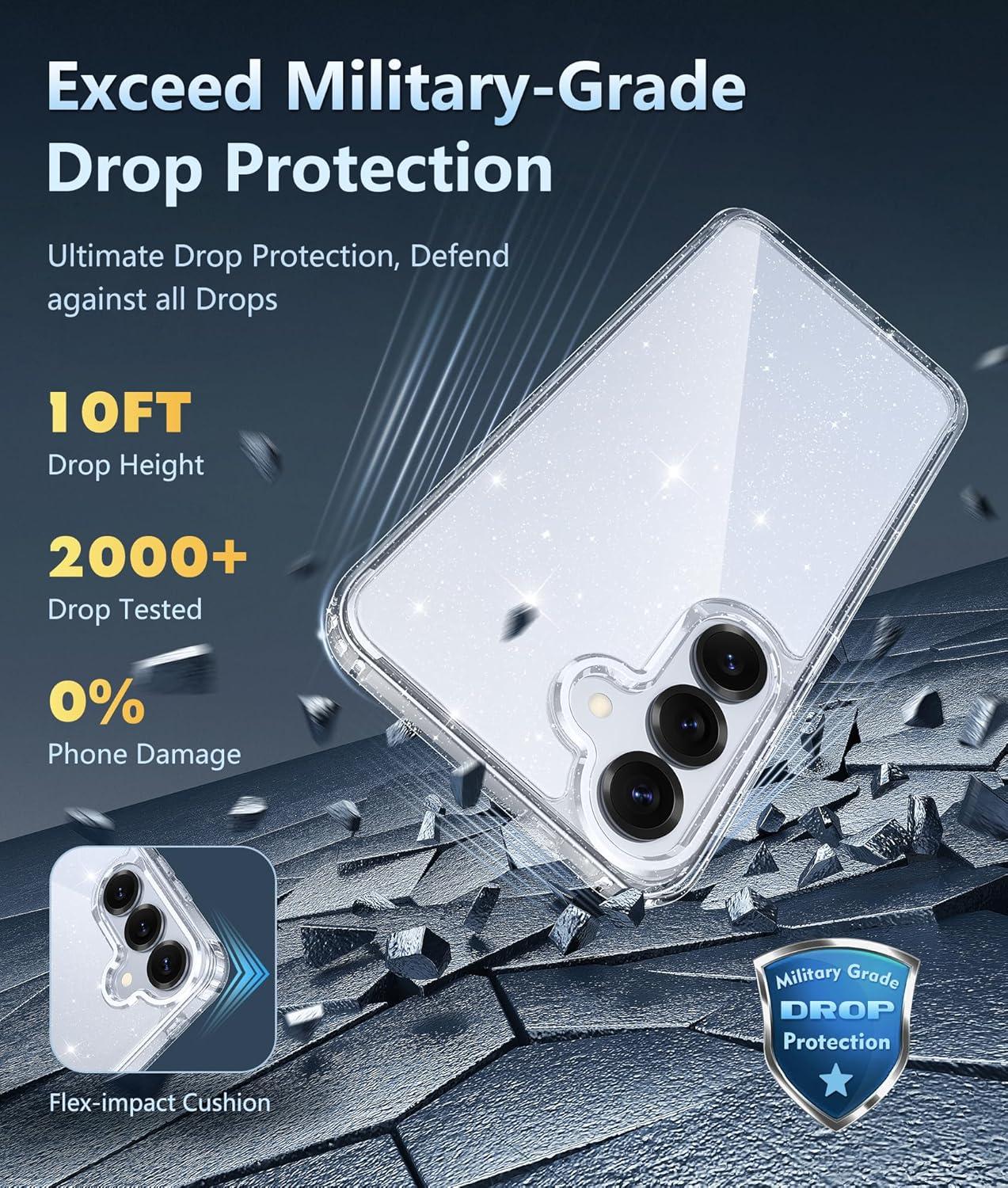 10FT Military Grade Protection: Passed Military Drop Tested up to 10 FT. This Galaxy S25/S24 clear case backplane is made with rigid polycarbonate and flexible shockproof TPU bumpers around the edge and features 4 built-in corner Airbags to absorb impact