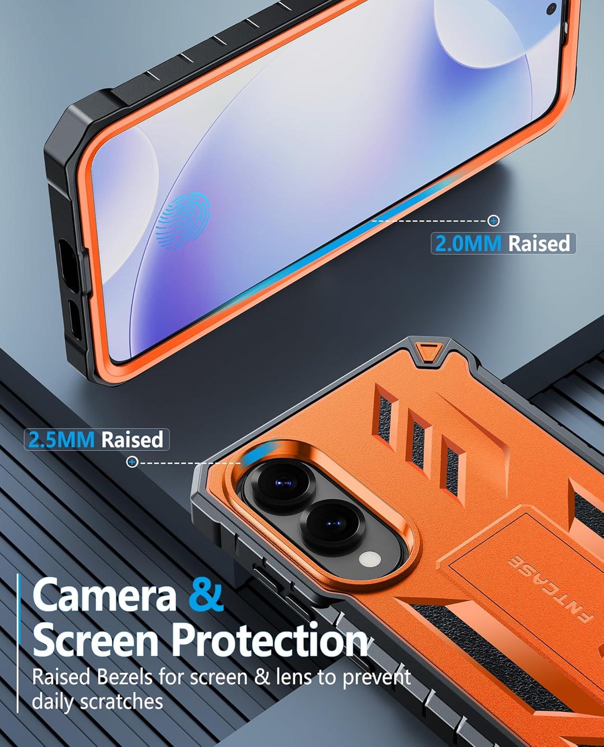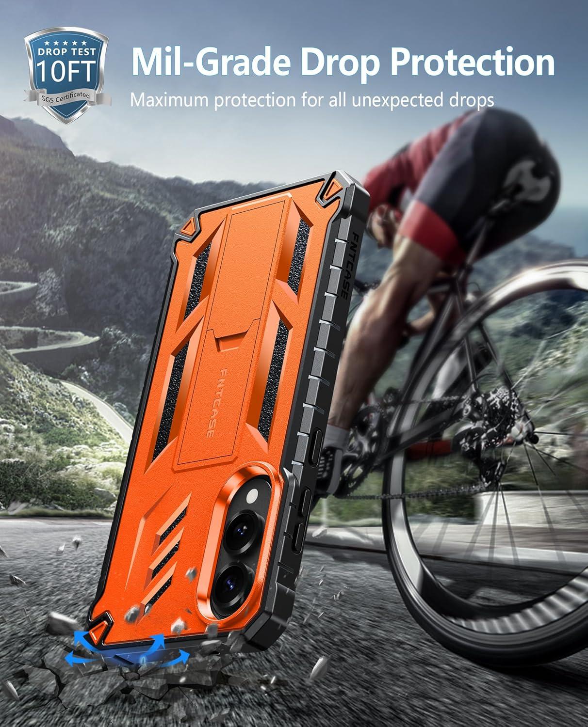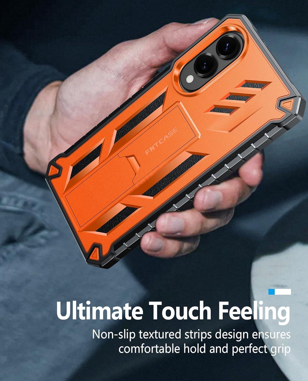 FNTCASE for Samsung Galaxy S25-Edge Case: Military Grade Drop Proof Protection Mobile Cover with Kickstand | Matte Textured Rugged Shockproof TPU | Protective Sturdy Phonecase – Black(Orange)