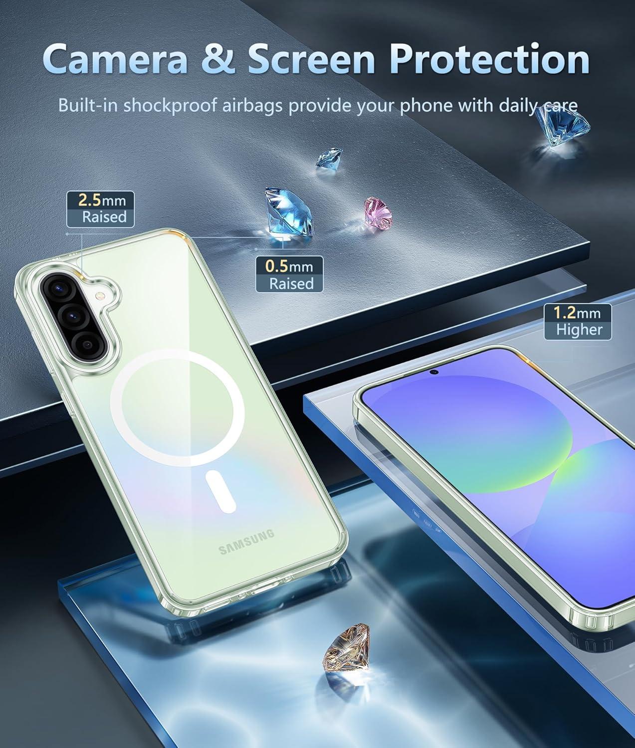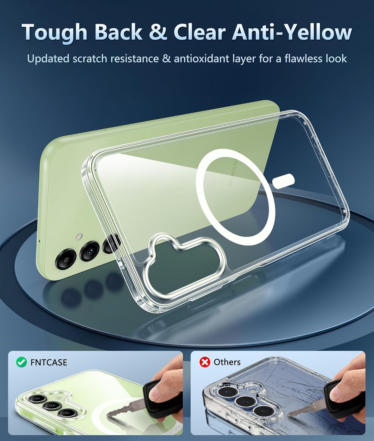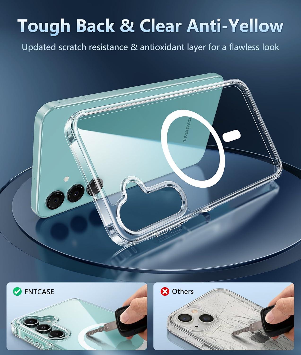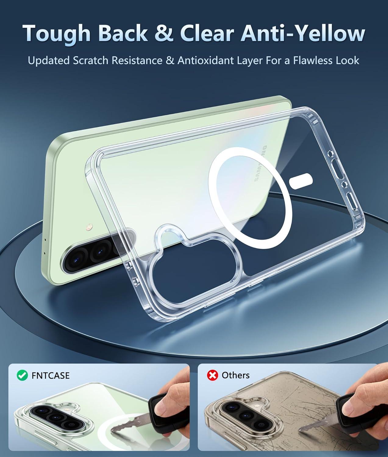FNTCASE for Samsung Galaxy Z-Fold-7 Case: Magnetic Clear Military Grade Drop Protection Anti Yellowing Cell Phone Cover – Rugged Shockproof Protective Bumper Transparent Phonecase(Clear Magnetic)