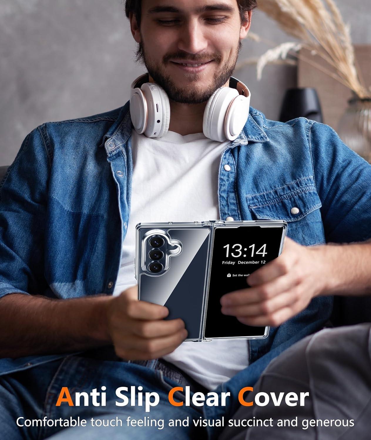 Crystal Clear & Never Yellow: Using high-grade Bayer's ultra-clear TPU and PC material, allowing you to admire the original sublime beauty for Samsung Galaxy Z Fold 7 while won't get oily when used. The Nano antioxidant layer effectively resists stains and sweat