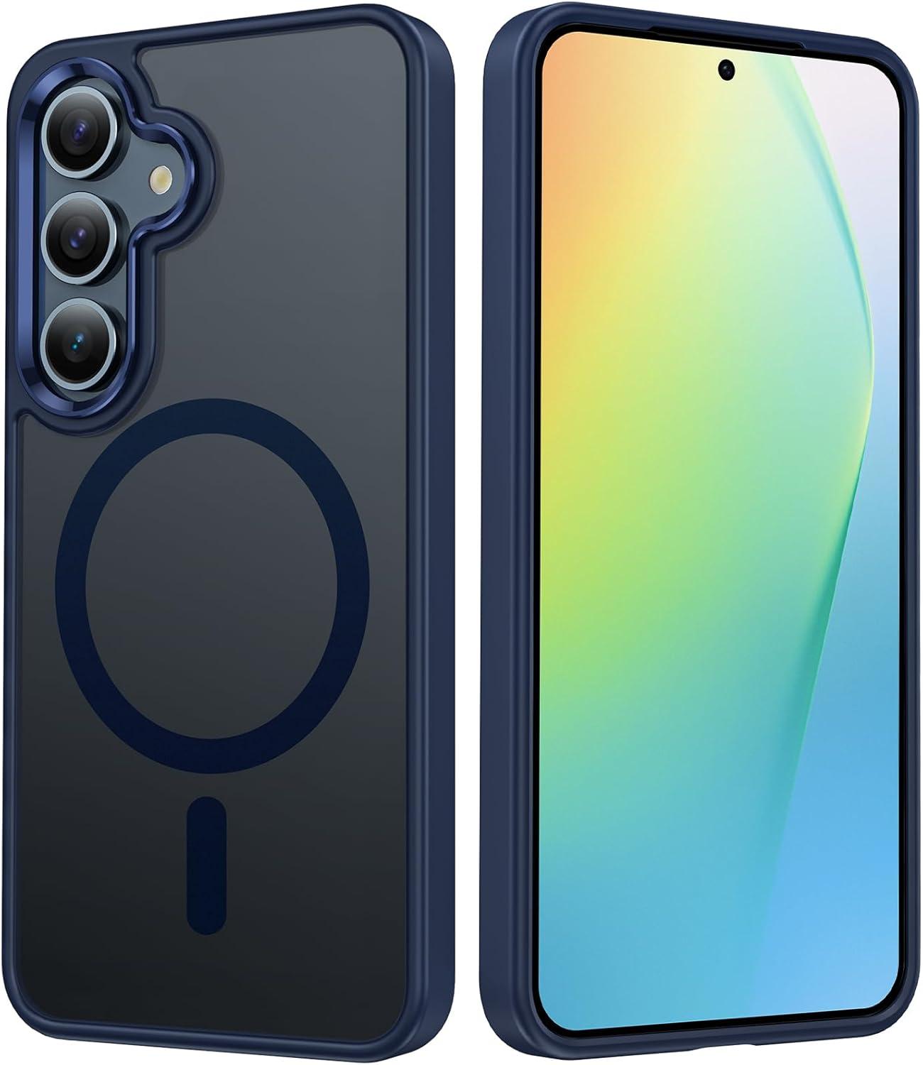 FNTCASE for Samsung-Galaxy Z-Fold-7 Magnetic Case: Translucent Matte Textured Military Grade Drop Protection Cell Phone Cover – Slim Rugged Durable Shockproof Protective Bumper Cases (Black 8.0 inch)(Blue)
