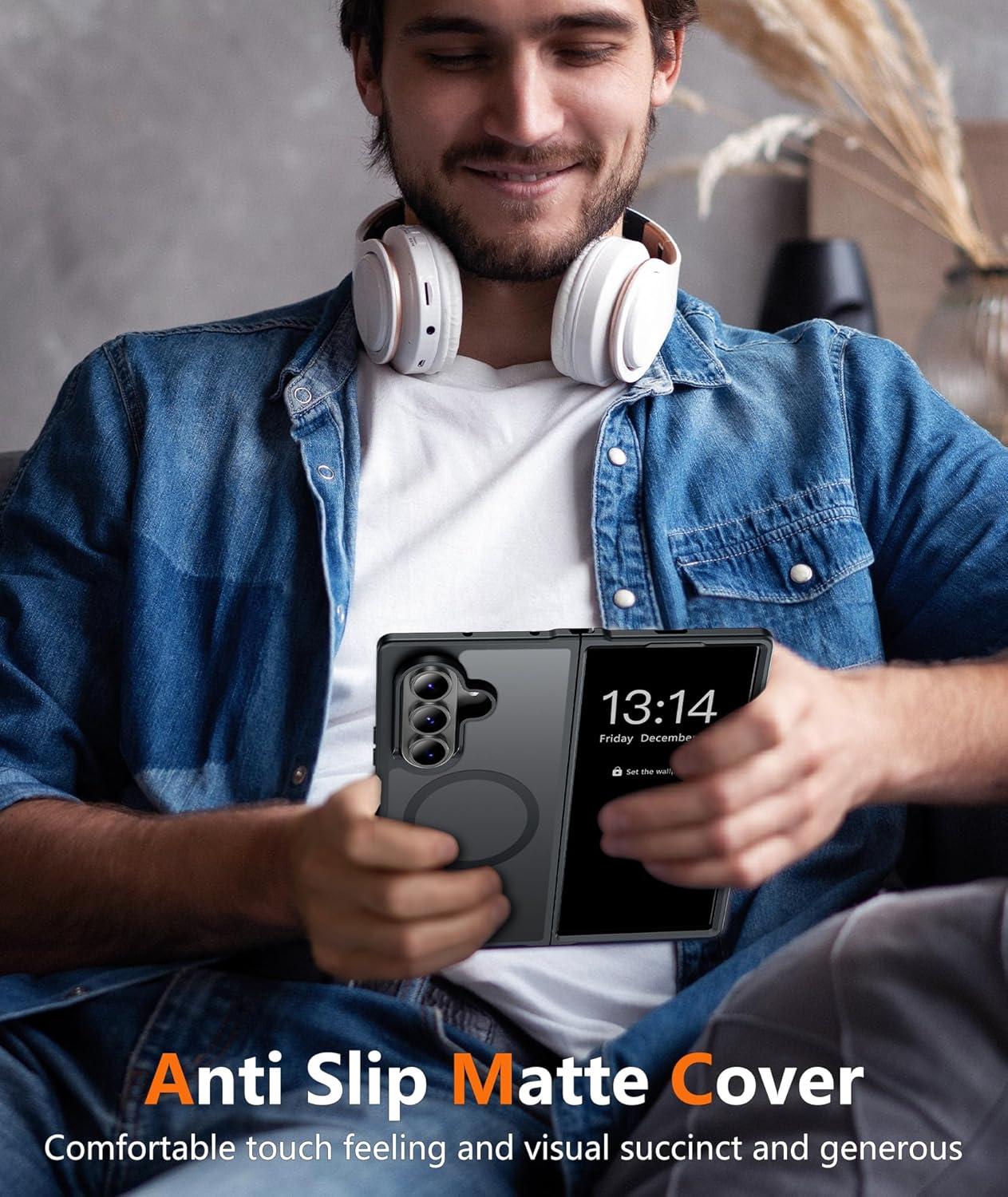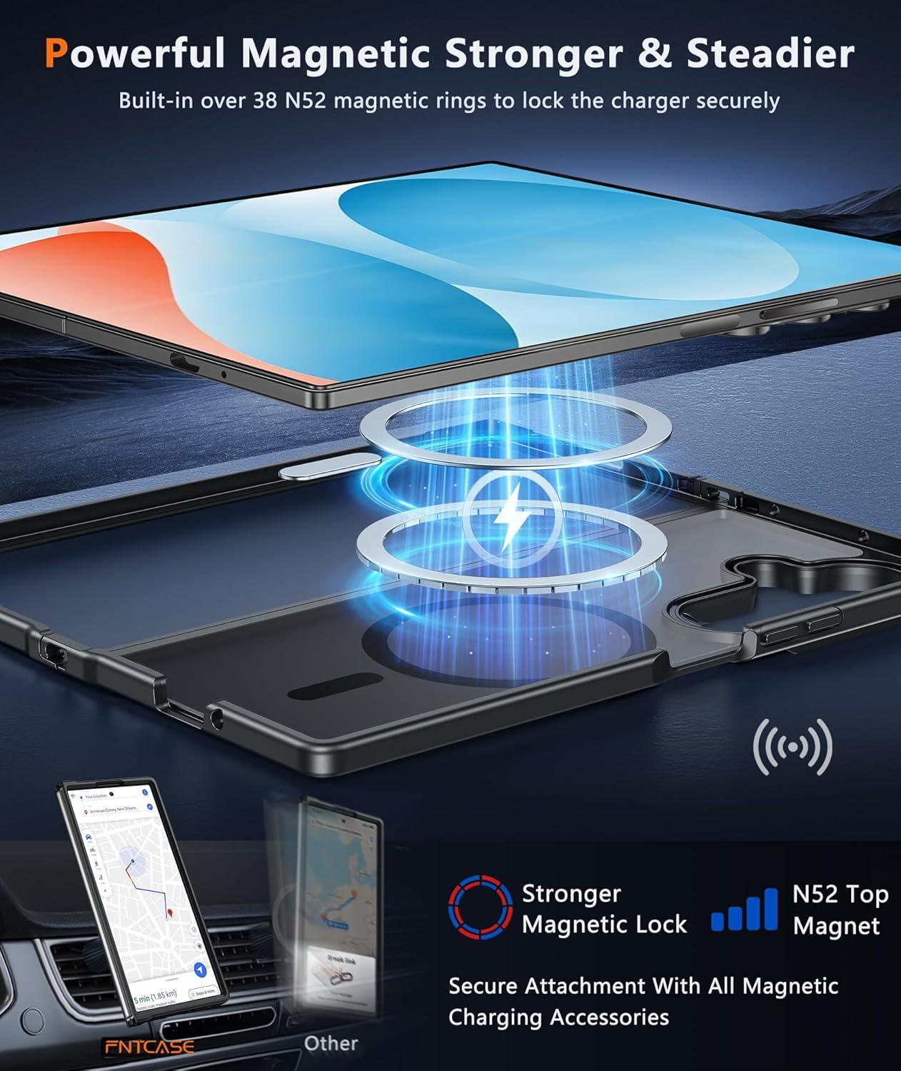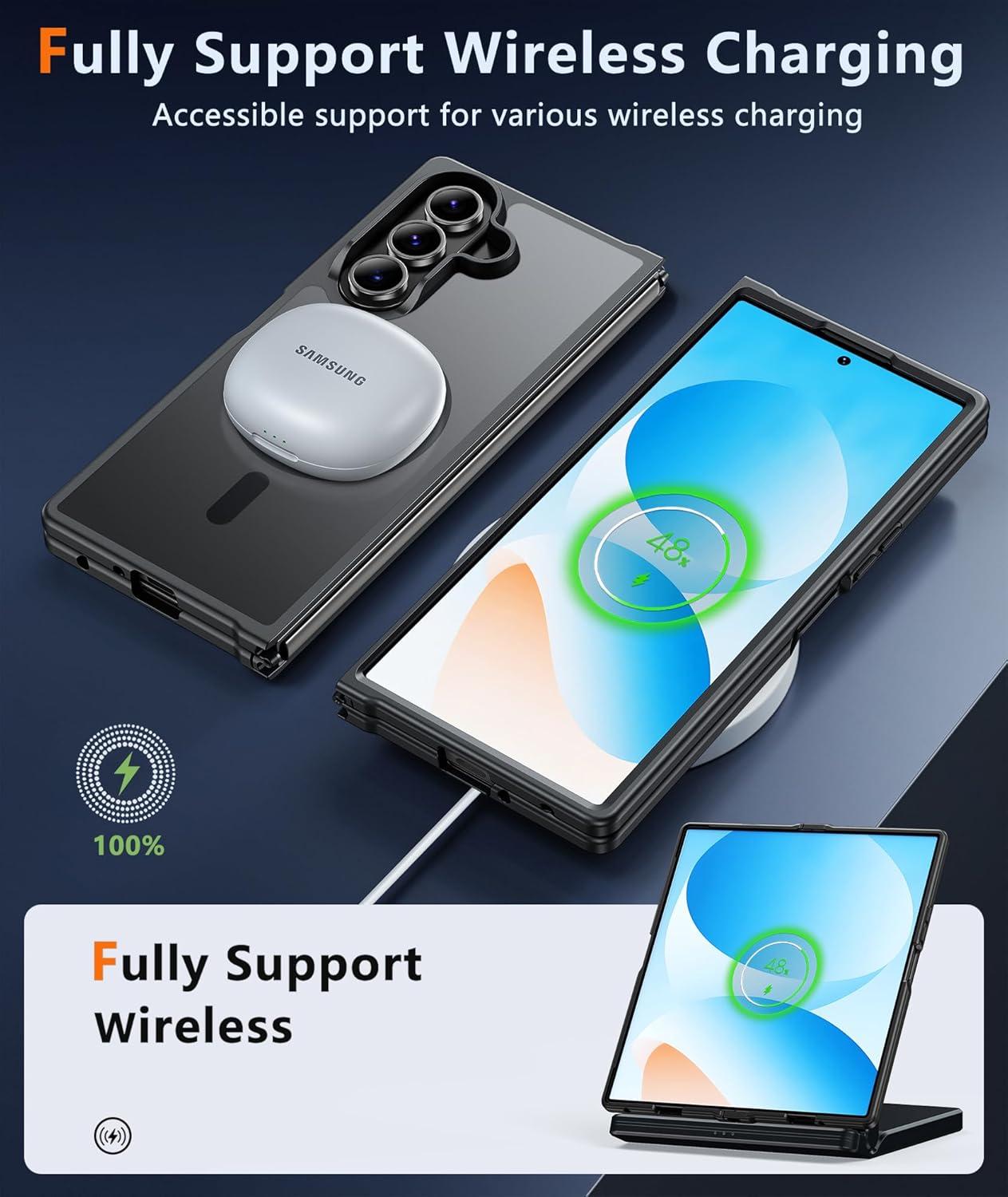 Strong Magnetic Attraction: For Magnetic chargers and other Qi Wireless chargers without signal influence. The Samsung Galaxy Z Fold 7 case has built-in 38 super N52 magnets. Its magnetic attraction reaches 2400 gf, which is almost 7X stronger than ordinary, therefore it won't fall off no matter how it shakes when you are charging