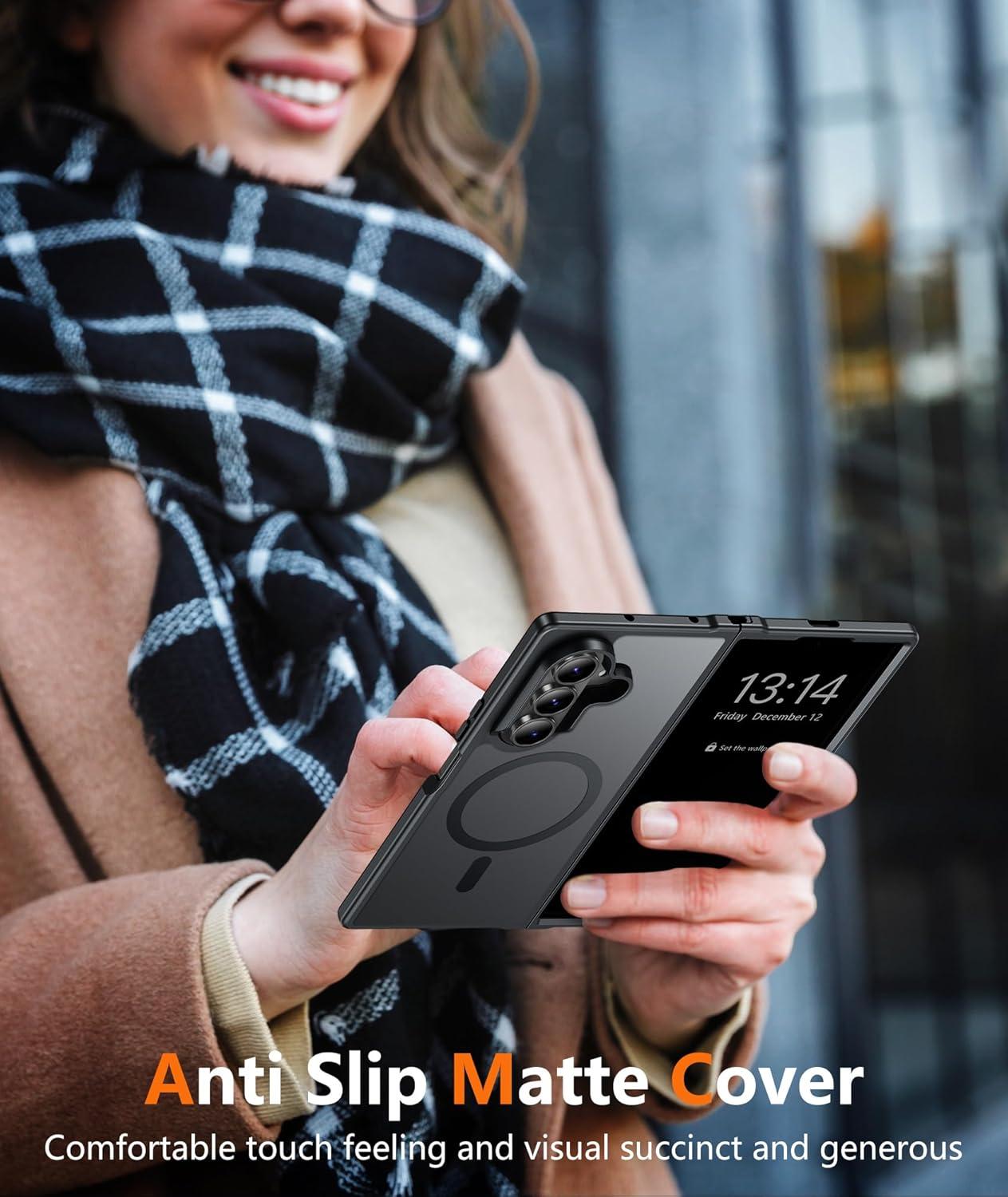 Matte Texture & Excellent Touch Feel: The Galaxy Z Fold 7 case uses high-grade matte TPU and PC translucent material, refined and elegant beauty without obscuring the logo. The frosted surface provides you with a comfortable hand feel and the nano-antioxidant layer can effectively prevent stains and scratches