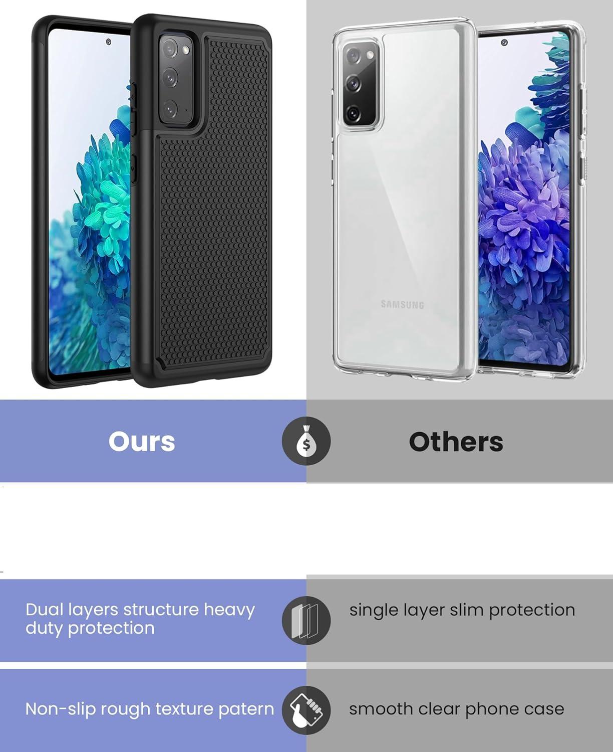 for Galaxy S20 FE 5G Case: Dual Layer Samsung S20 FE Case Shockproof Phone Protection | Matte Anti-Slip Textured | Military Rugged Protective Cover – Black(Black)