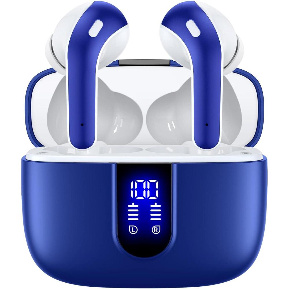TAGRY Bluetooth Headphones True Wireless Earbuds 60H Playback LED Power Display Earphones with Wireless Charging Case IPX5 Waterproof in-Ear Ear buds with Mic for TV Smart Phone Laptop Computer Sports(Ocean Blue)