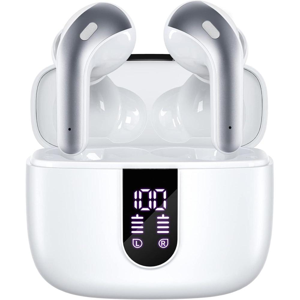 TAGRY Bluetooth Headphones True Wireless Earbuds 60H Playback LED Power Display Earphones with Wireless Charging Case IPX5 Waterproof in-Ear Ear buds with Mic for TV Smart Phone Laptop Computer Sports(White)