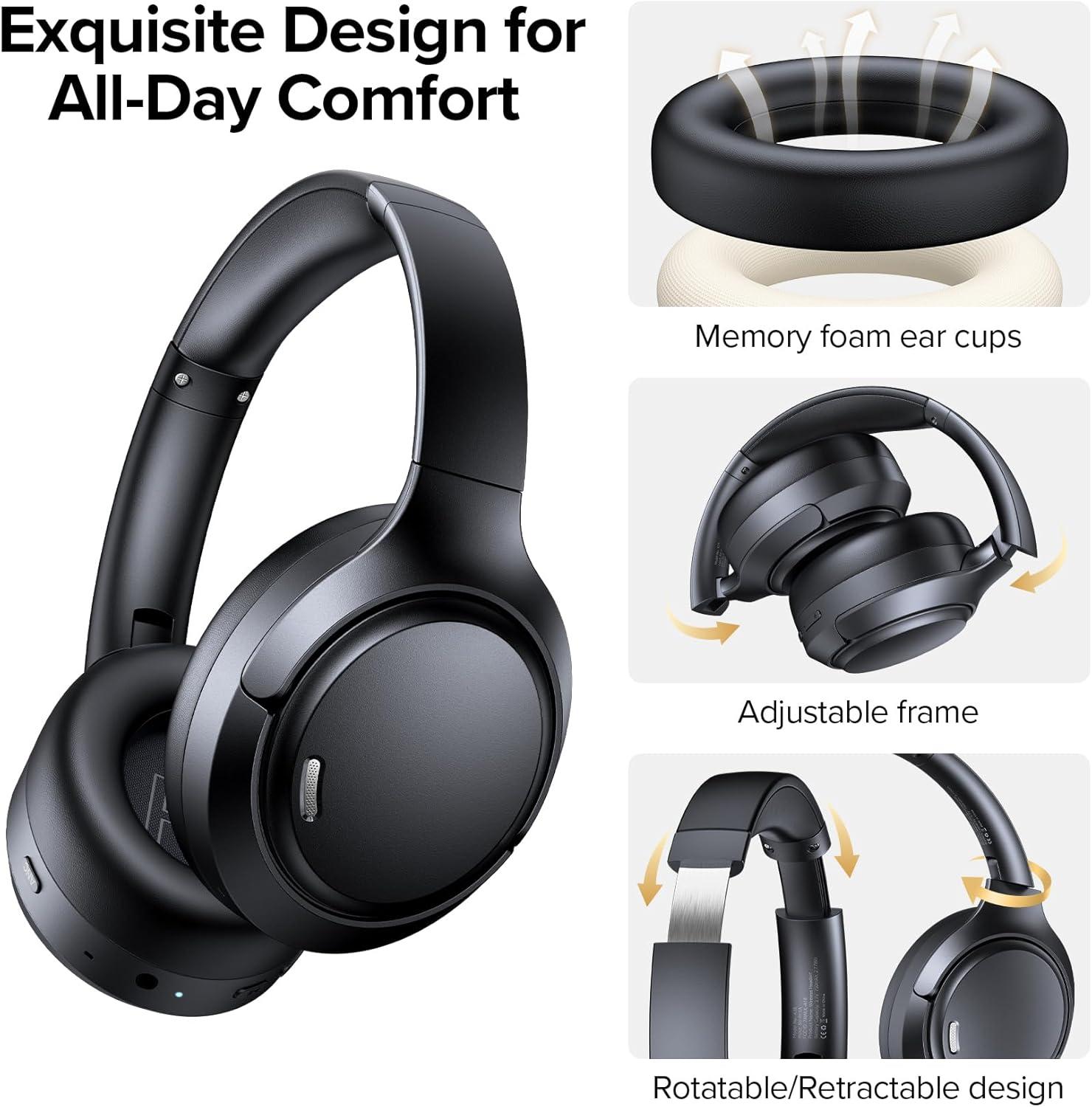 Bluetooth 6.0 & All-Day Comfort: The A18 over ear Bluetooth headphones feature advanced Bluetooth 6.0 for faster pairing, ultra-low latency, and stable connections with phones, tablets, and computers. Weighing only 0.54 lb, these wireless headphones are ergonomically designed with an adjustable headband and soft memory foam ear cushions, providing a pressure-free fit for all-day comfort at work, home, or outdoor
