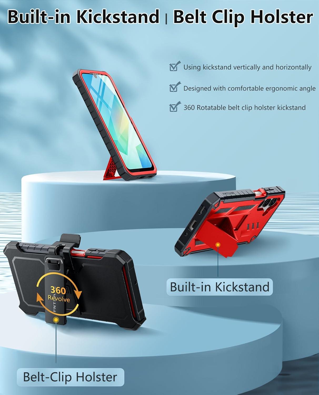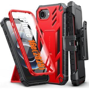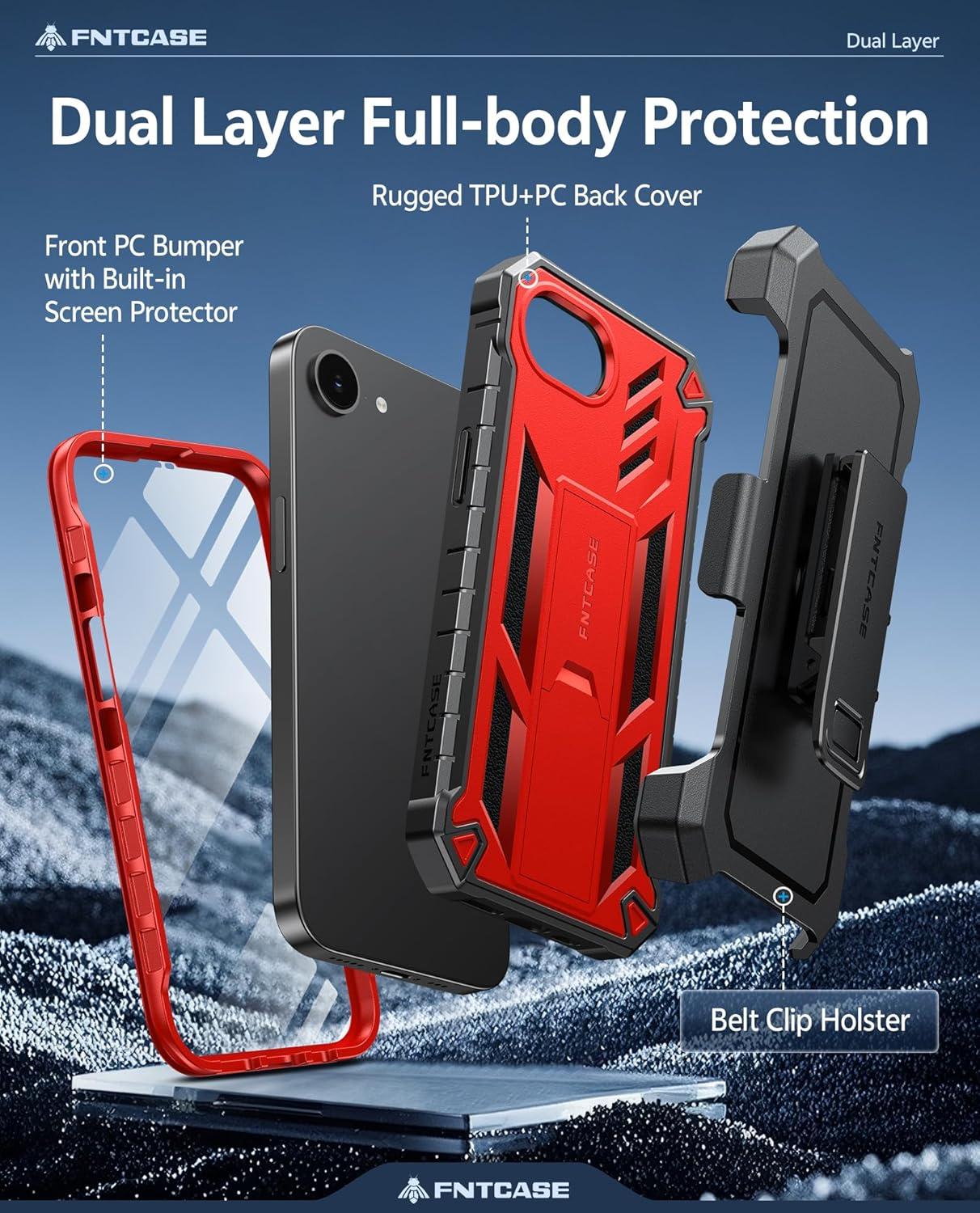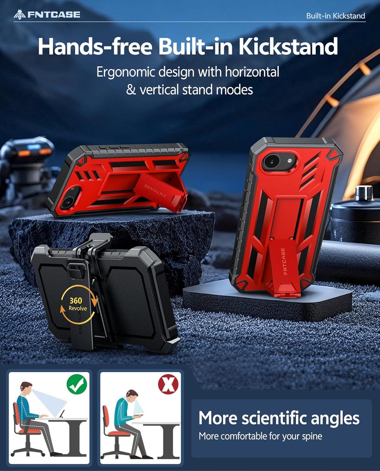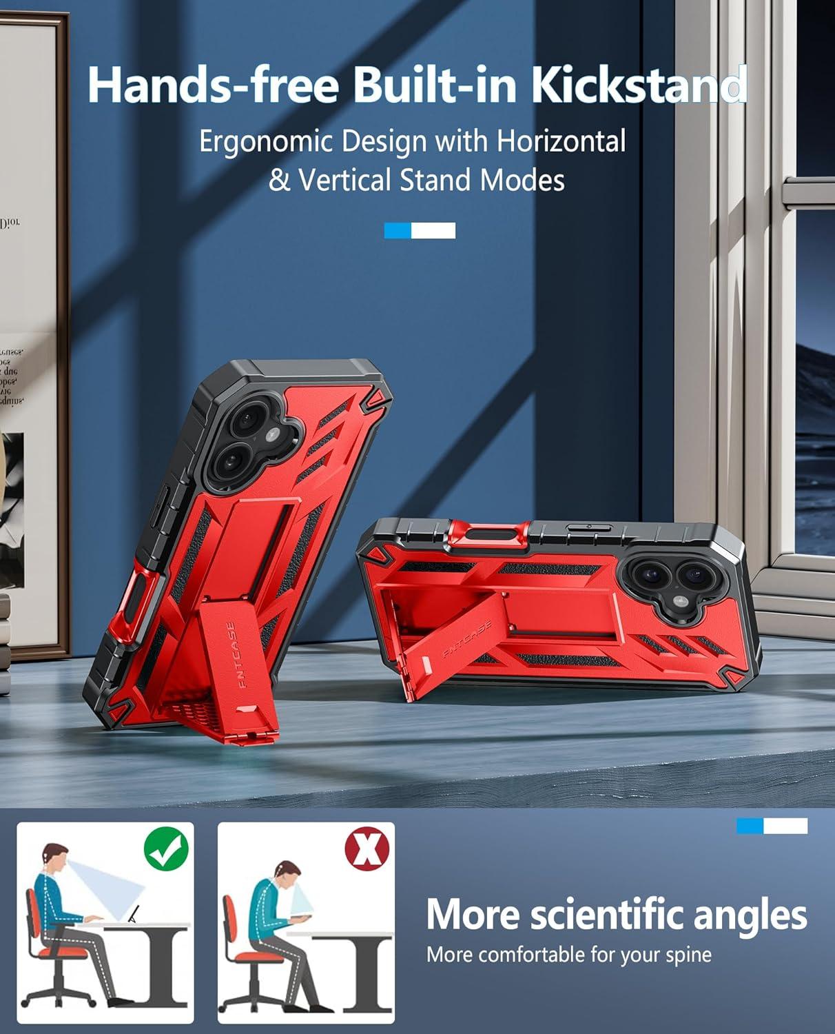 FNTCASE for iPhone 16e 2025 Case: for iPhone 16E Military Grade Rugged Phone Cover with Kickstand & Holster | Shockproof TPU Protection Bumper Matte Textured Design | Heavy Duty Protector (Black)(Red)