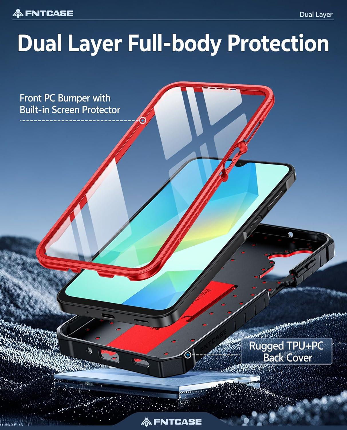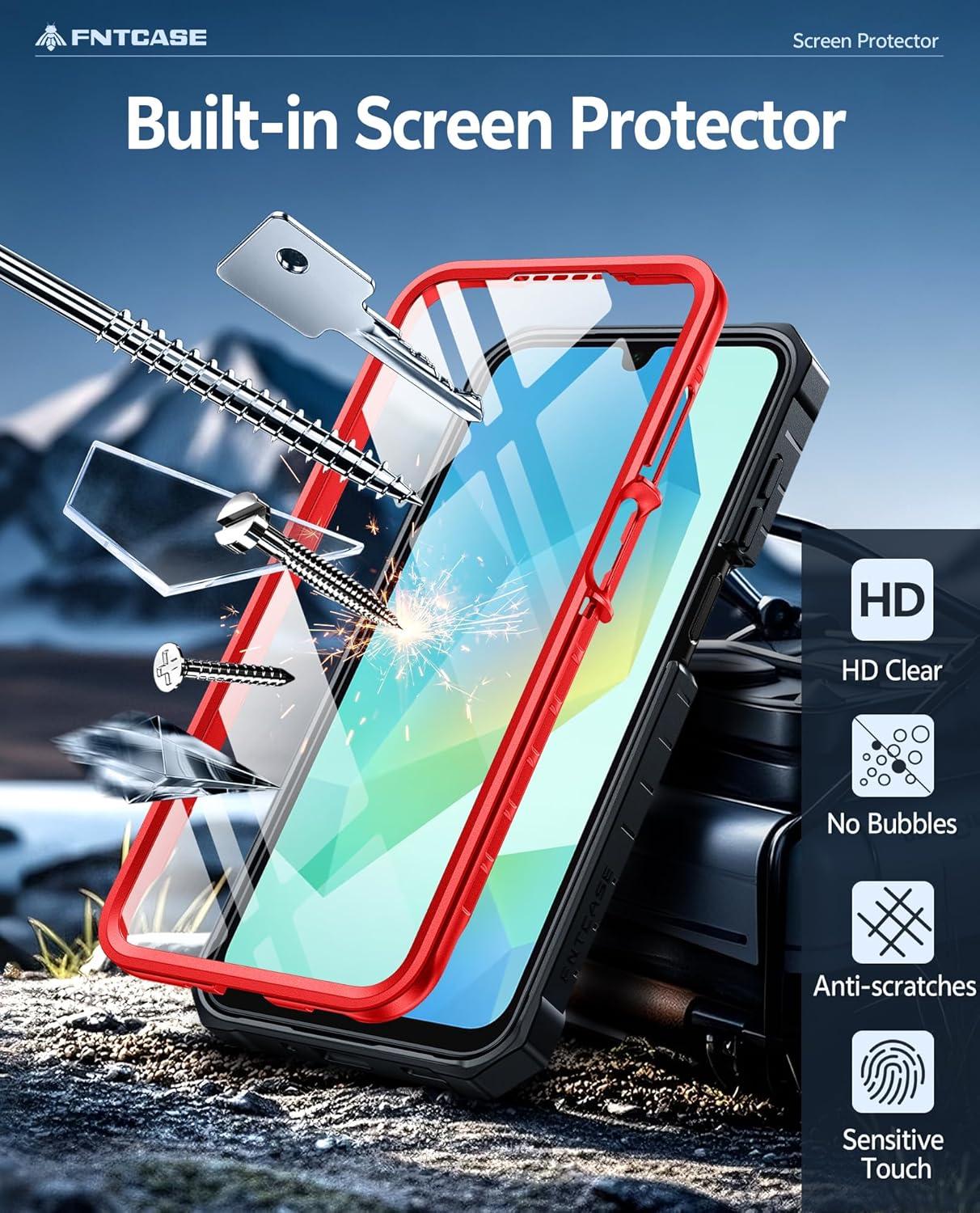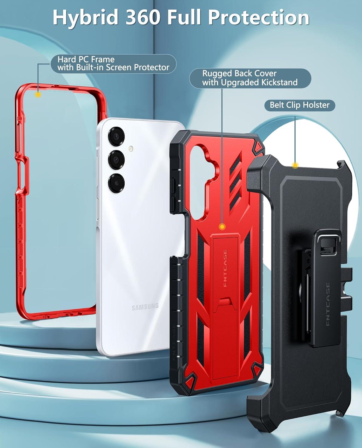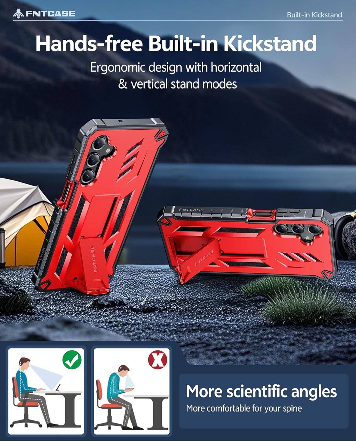 FNTCASE for iPhone 16e 2025 Case: for iPhone 16E Military Grade Rugged Phone Cover with Kickstand & Holster | Shockproof TPU Protection Bumper Matte Textured Design | Heavy Duty Protector (Black)(Red)