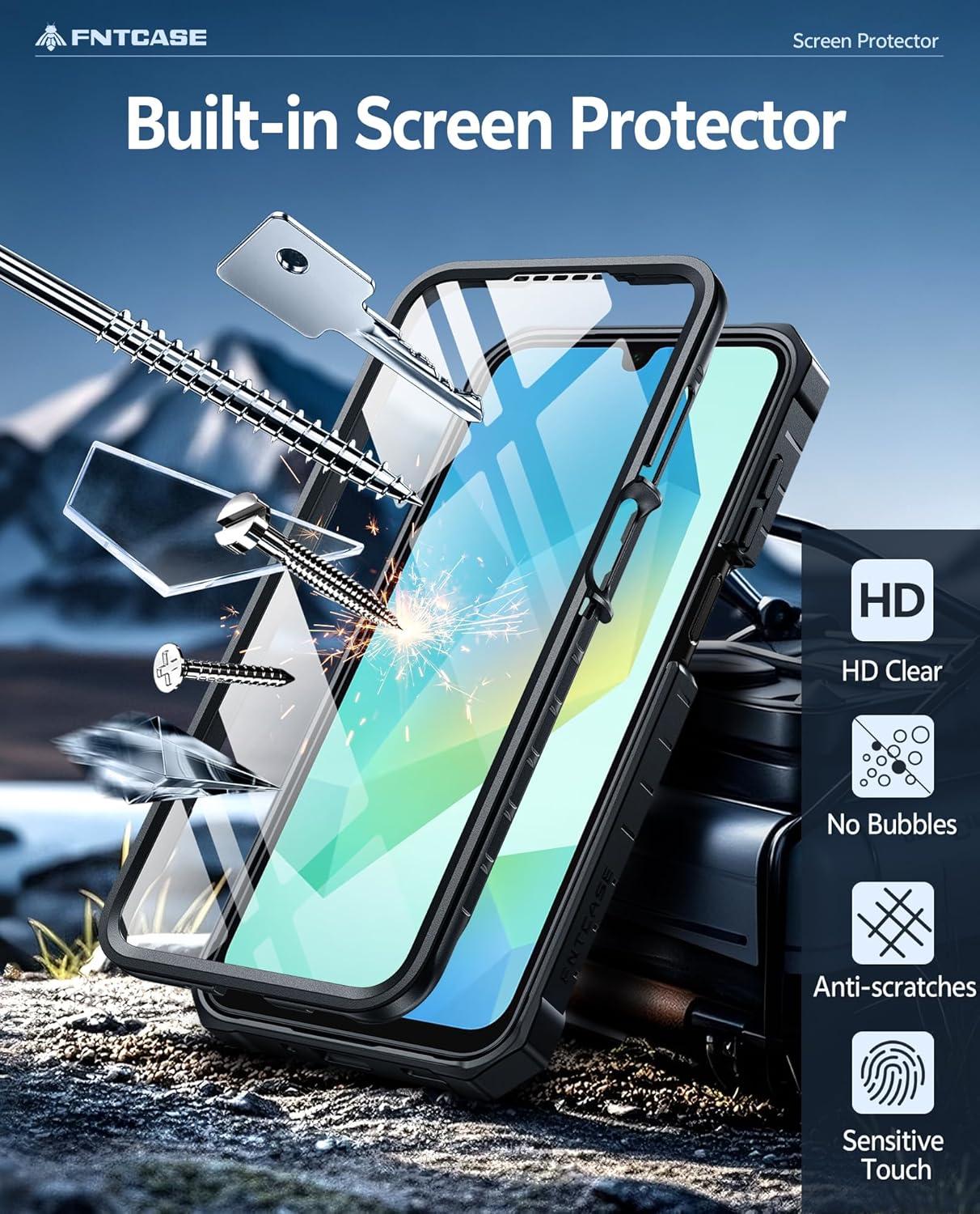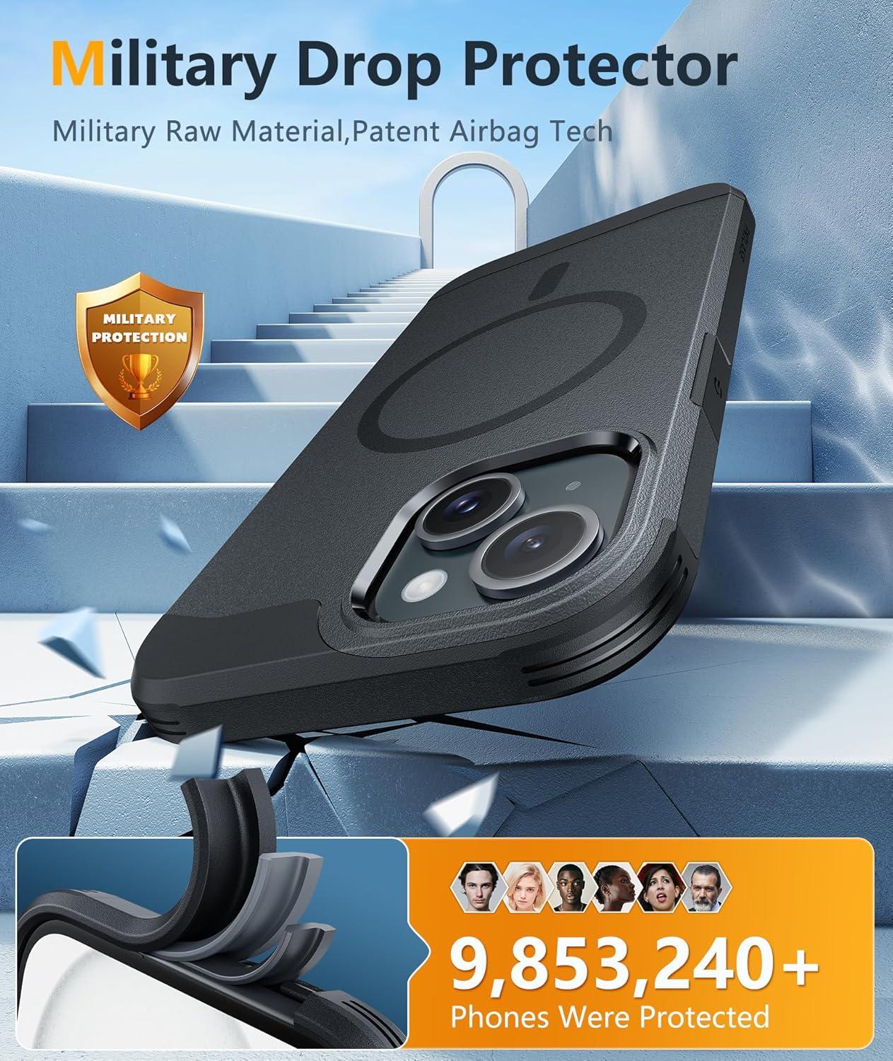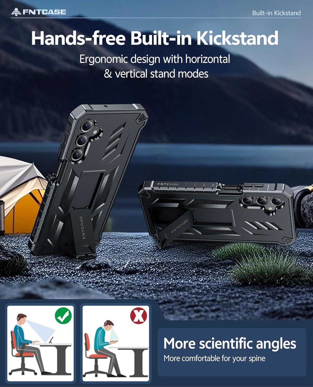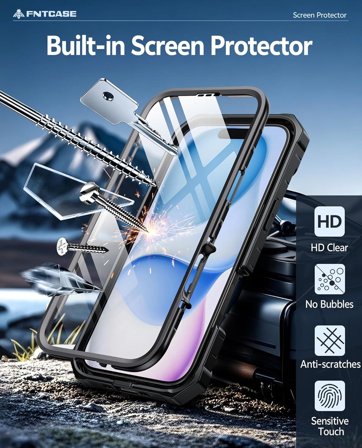 FNTCASE for iPhone 16e Phone Case: Military Grade [Built-in Screen Protector] [Kickstand] Matte Textured Drop Proof Protection Cover | Rugged Shockproof TPU Protective Sturdy Cases 2025 – Black(Black)