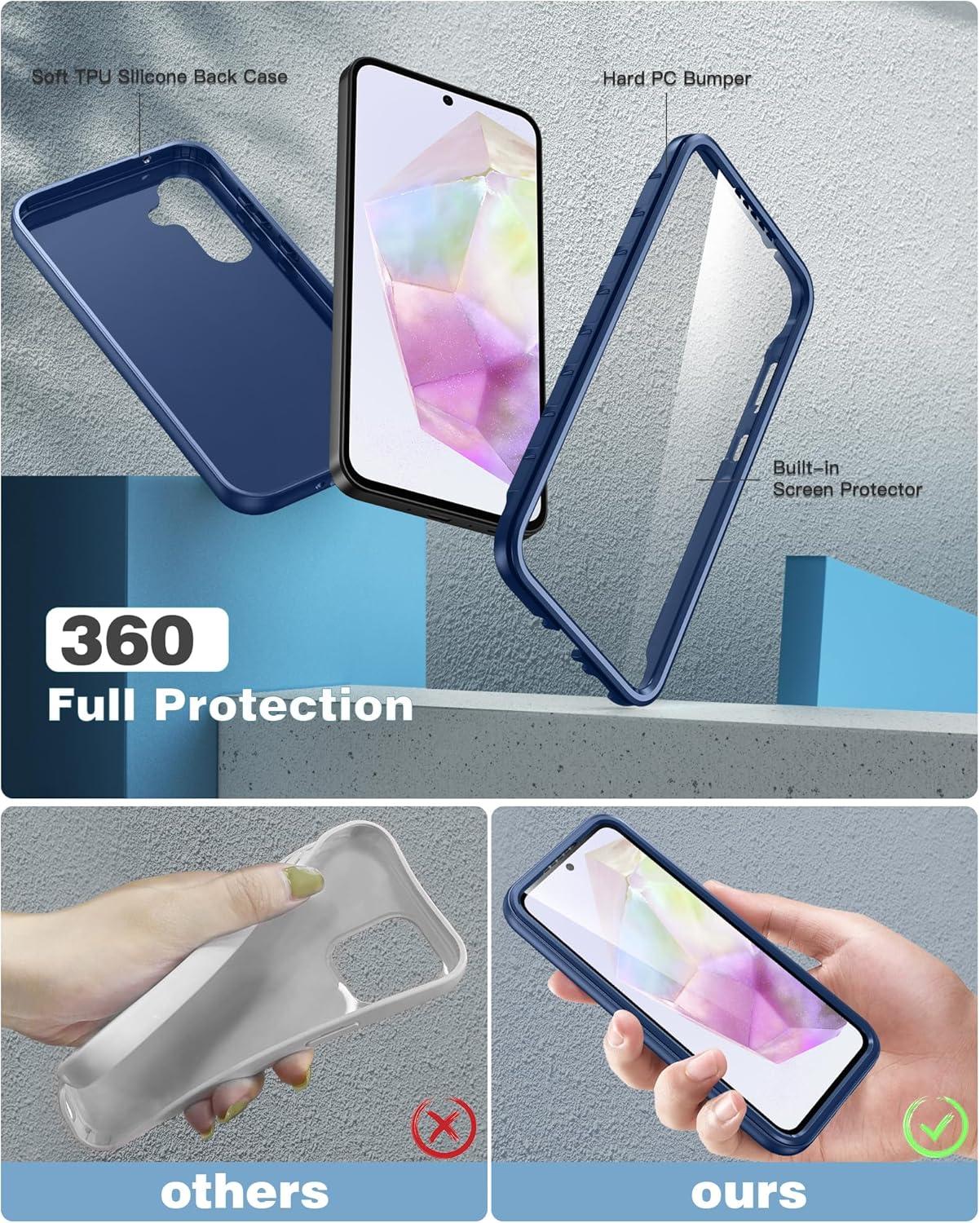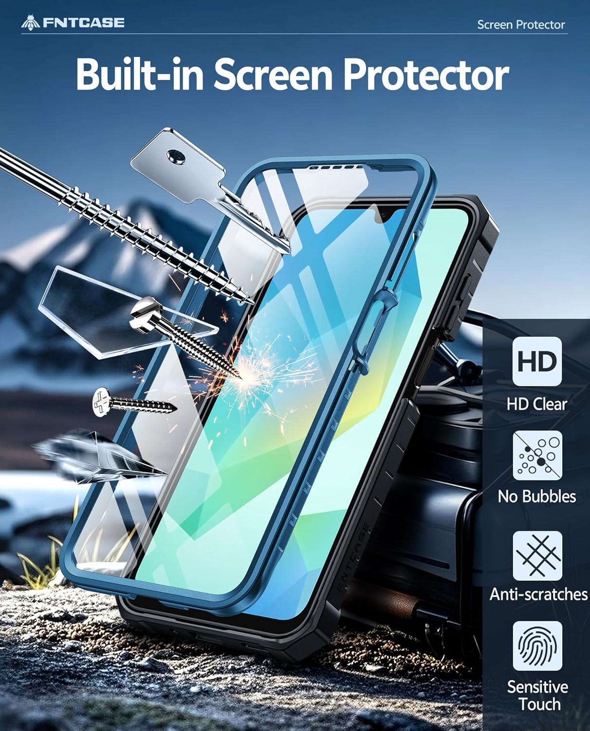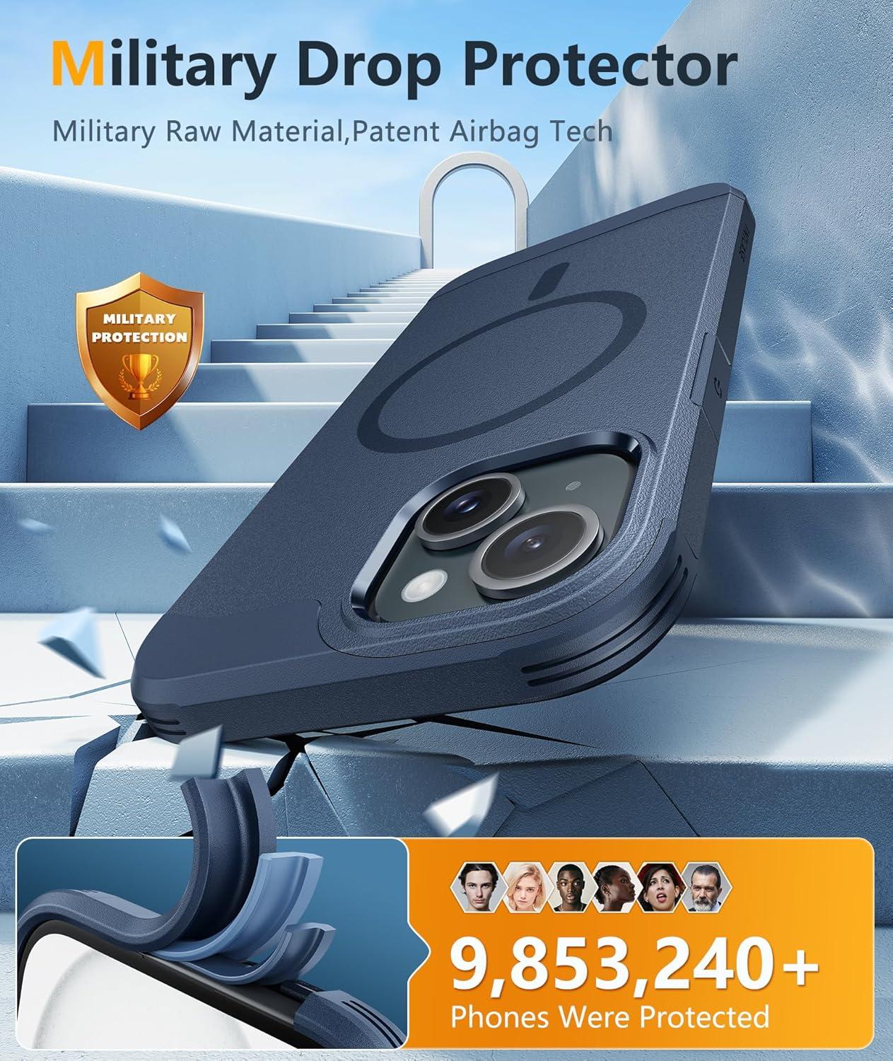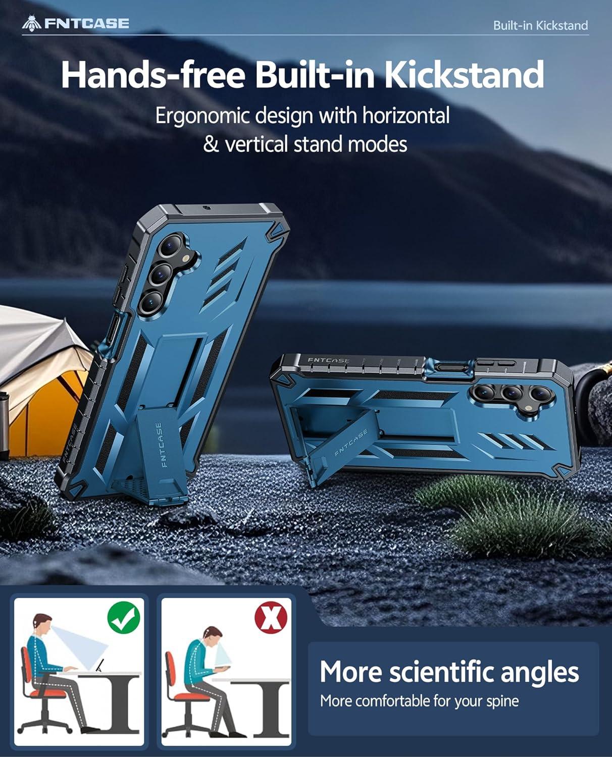 FNTCASE for iPhone 16e Phone Case: Military Grade [Built-in Screen Protector] [Kickstand] Matte Textured Drop Proof Protection Cover | Rugged Shockproof TPU Protective Sturdy Cases 2025 – Black(Blue)