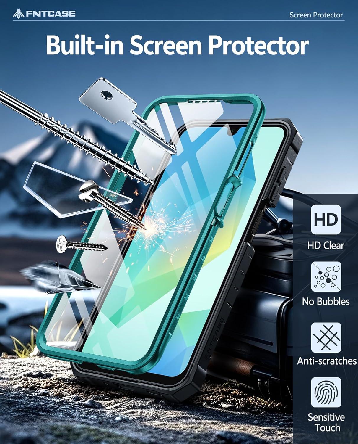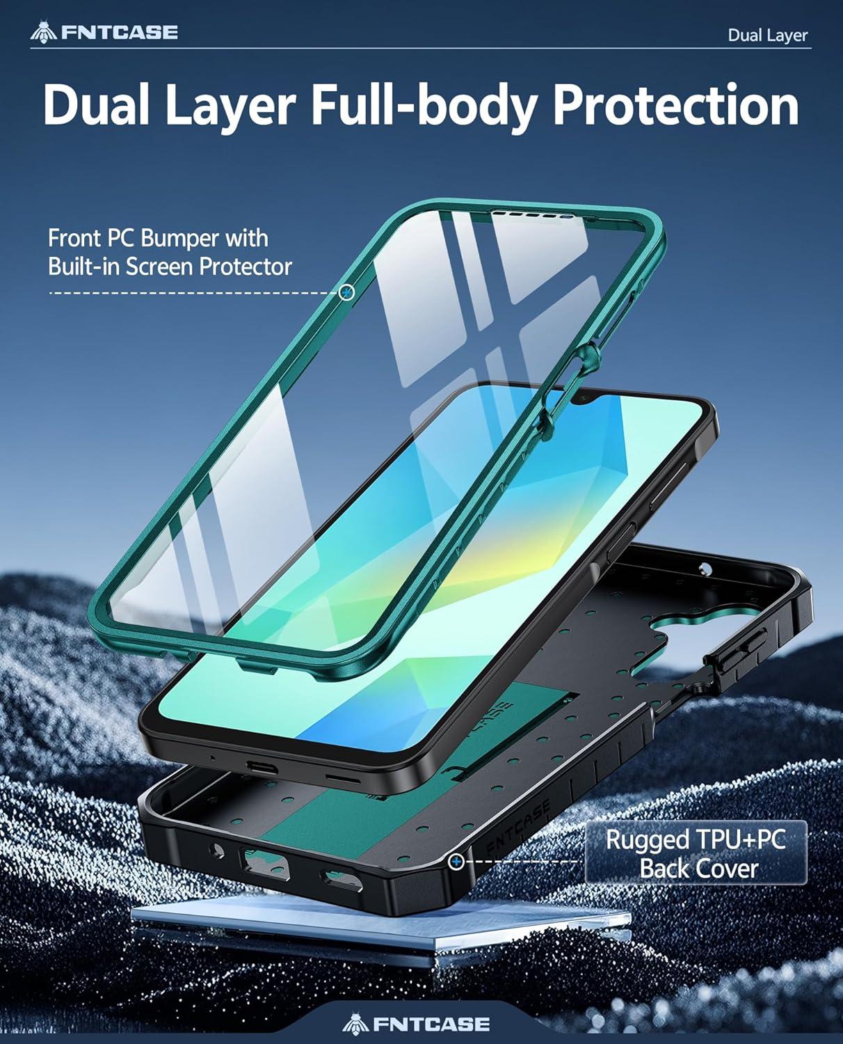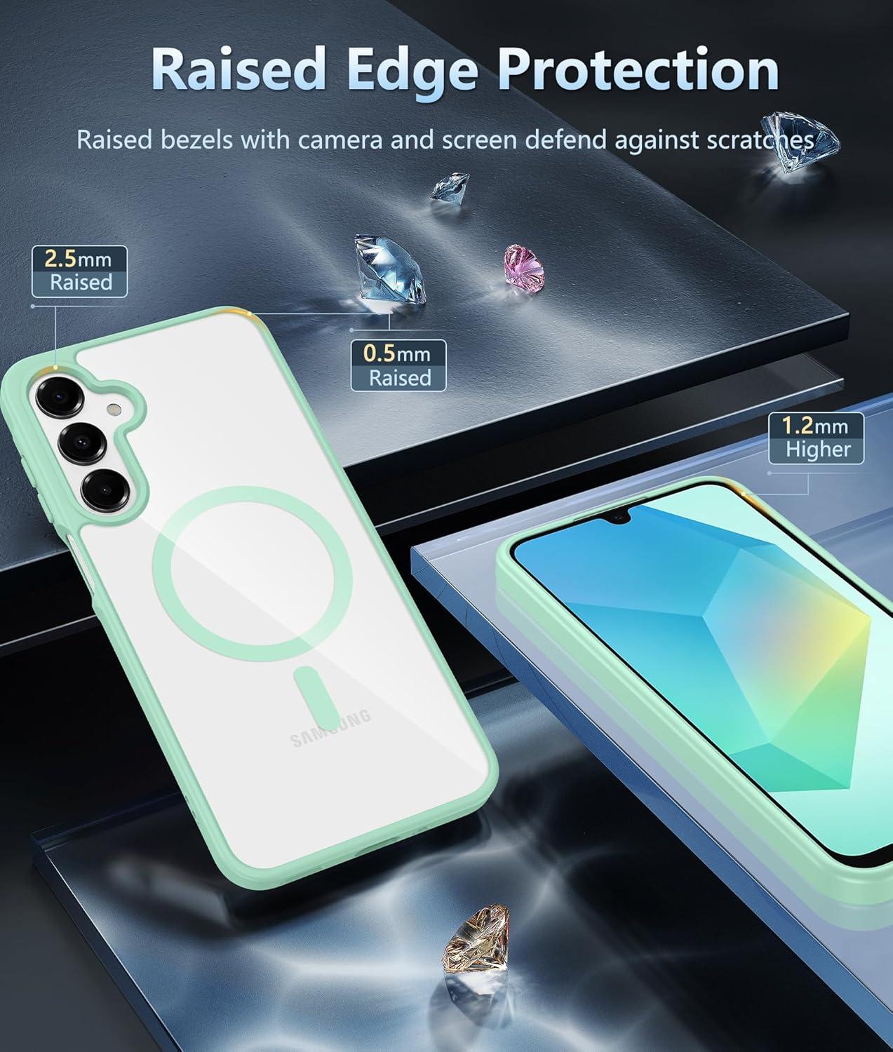 FNTCASE for Galaxy A16 5G Phone Case: Magnetic Matte Translucent Military Grade Drop Protection Cell Phone Cover – Slim Rugged Durable Shockproof Protective for Samsung A16 Cases – Black(Green)
