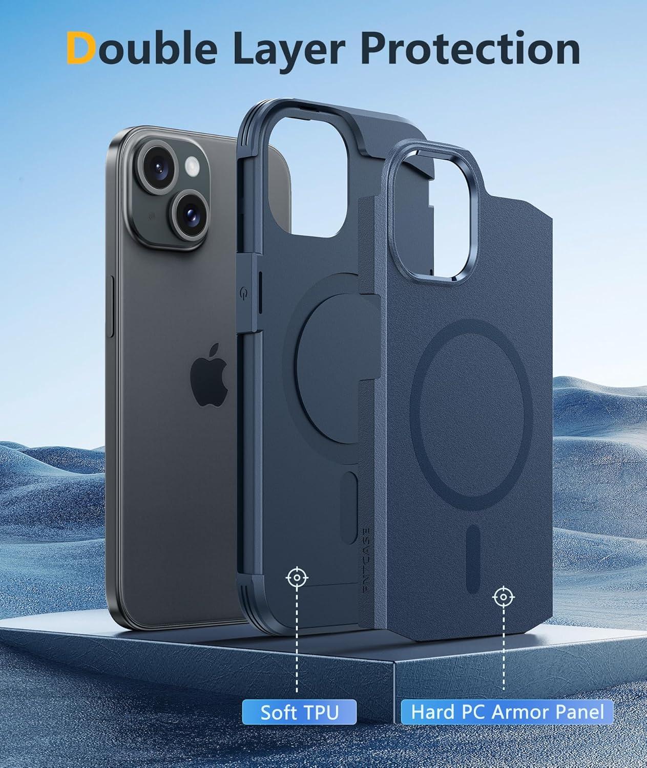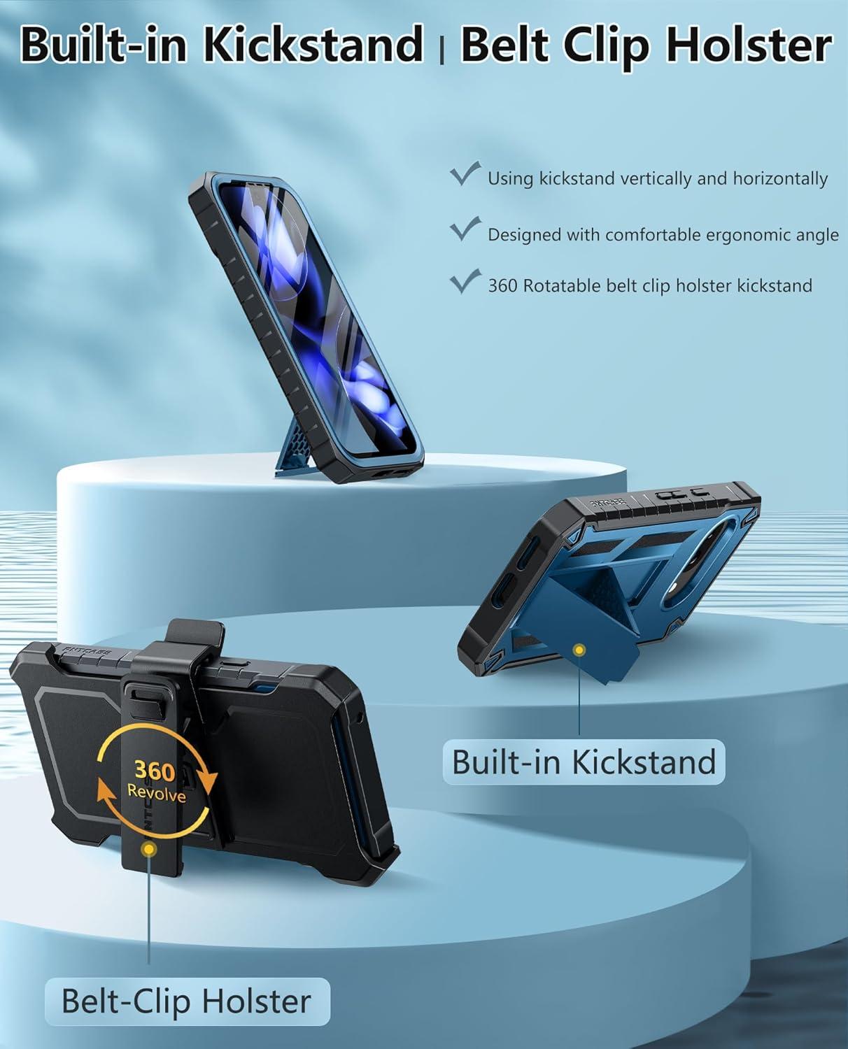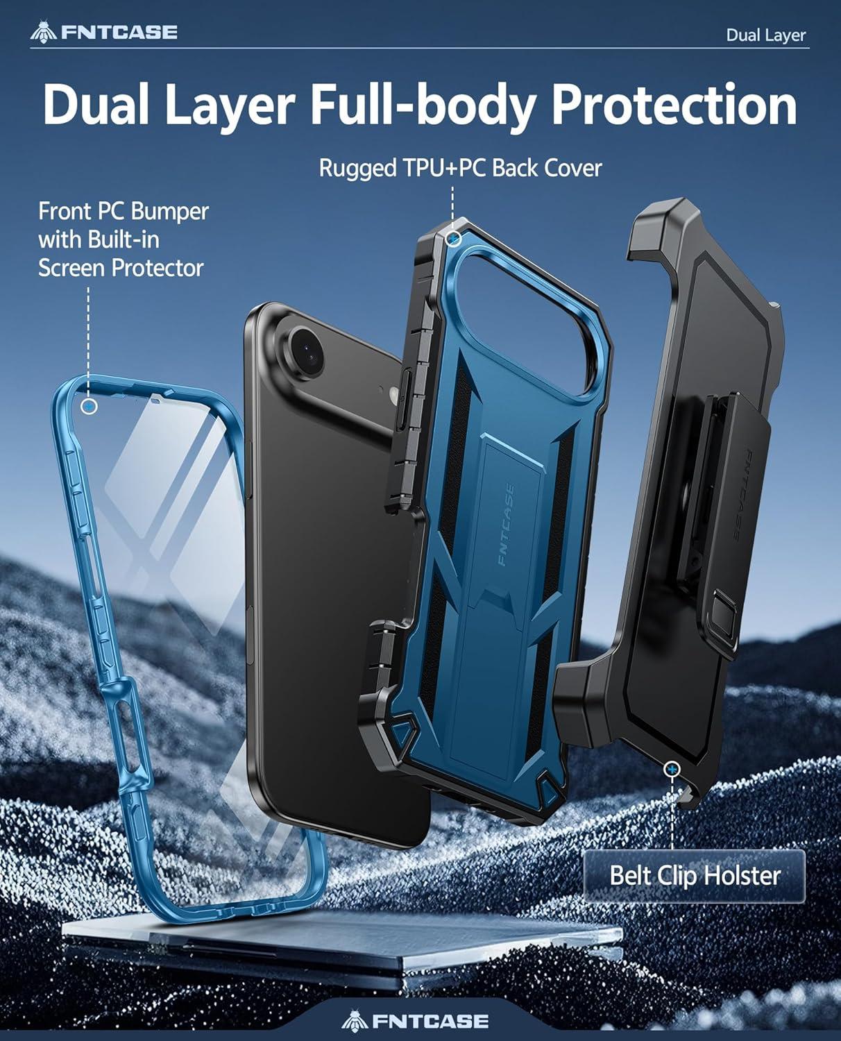 FNTCASE for iPhone 16e 2025 Case: for iPhone 16E Military Grade Rugged Phone Cover with Kickstand & Holster | Shockproof TPU Protection Bumper Matte Textured Design | Heavy Duty Protector (Black)(Blue)