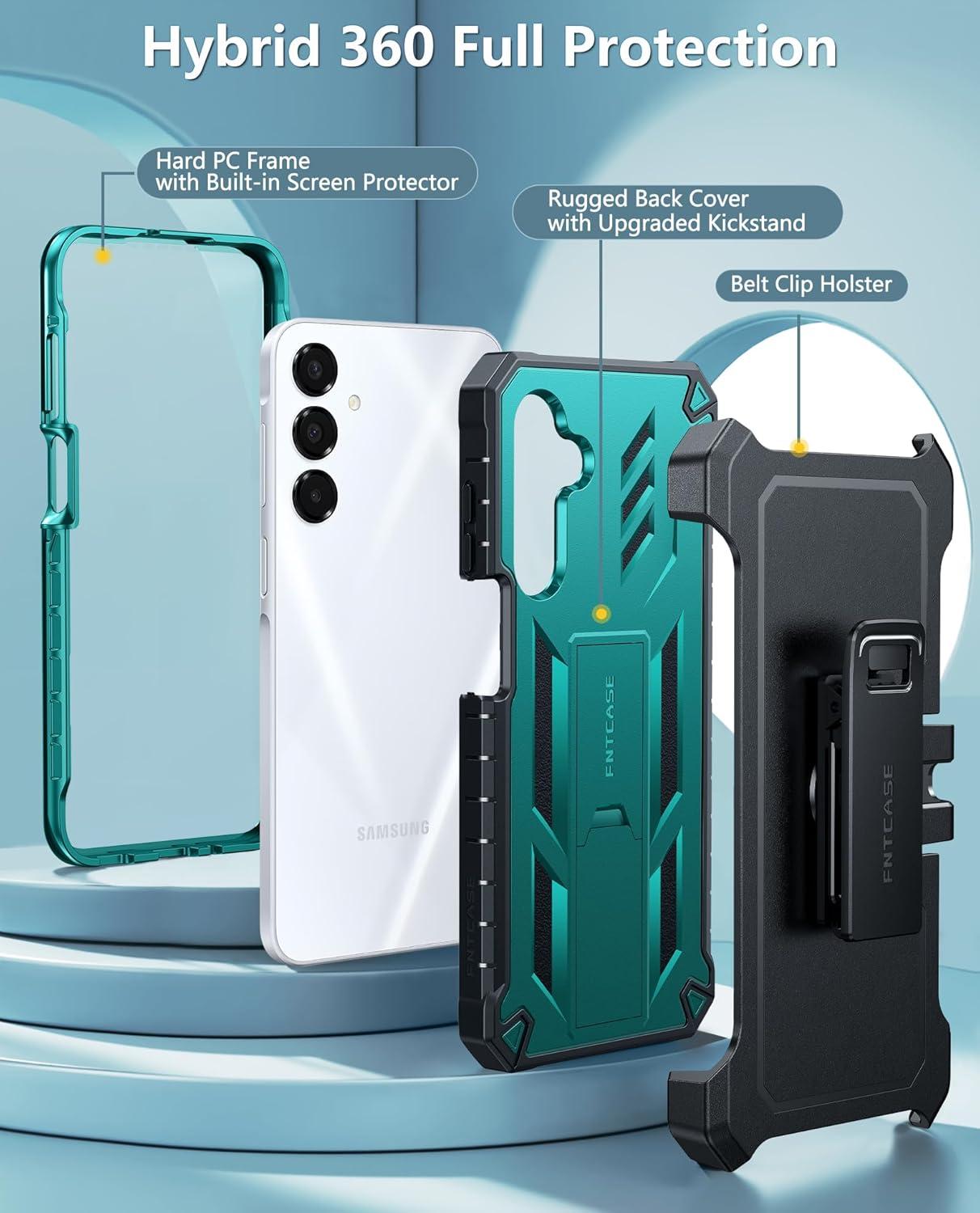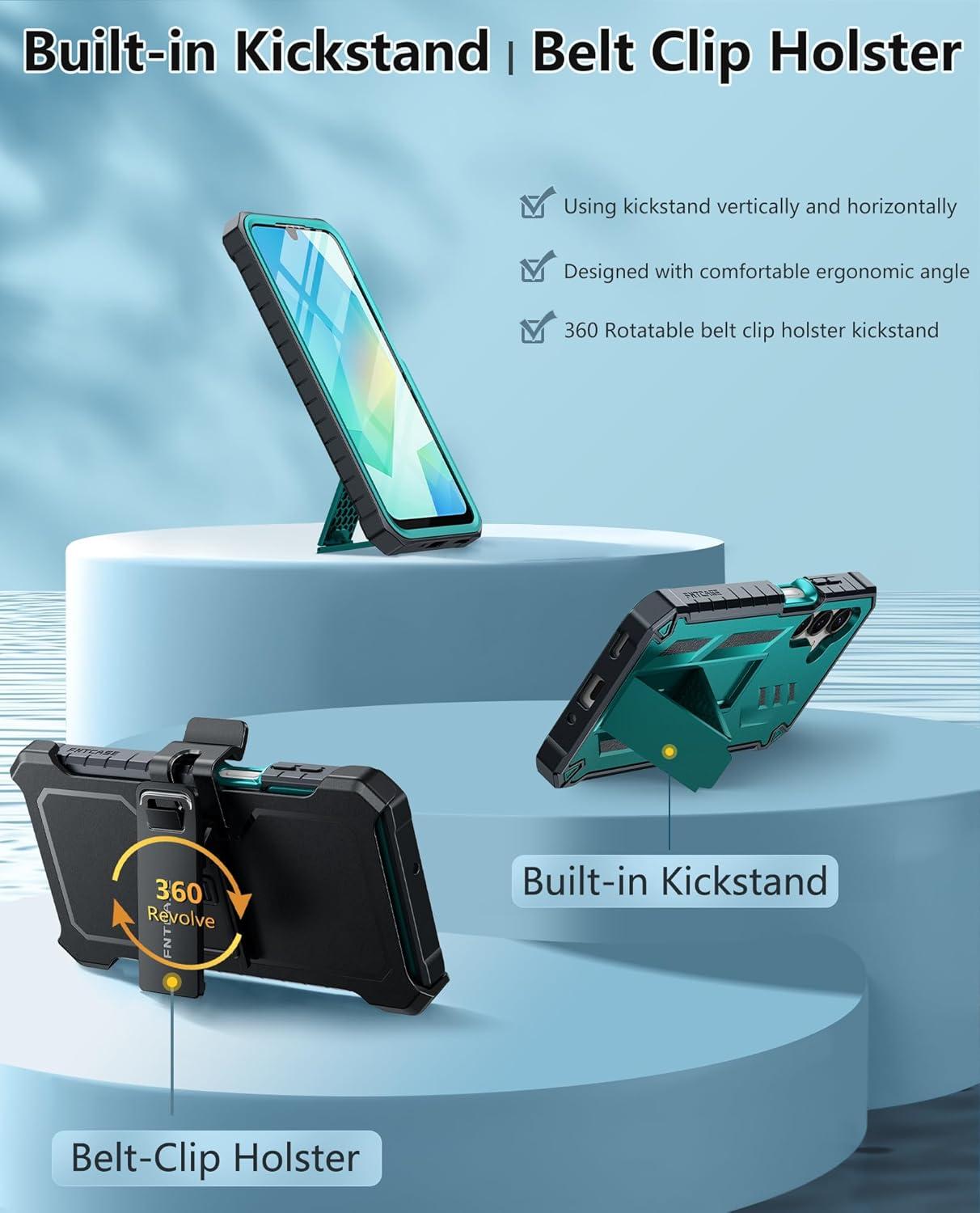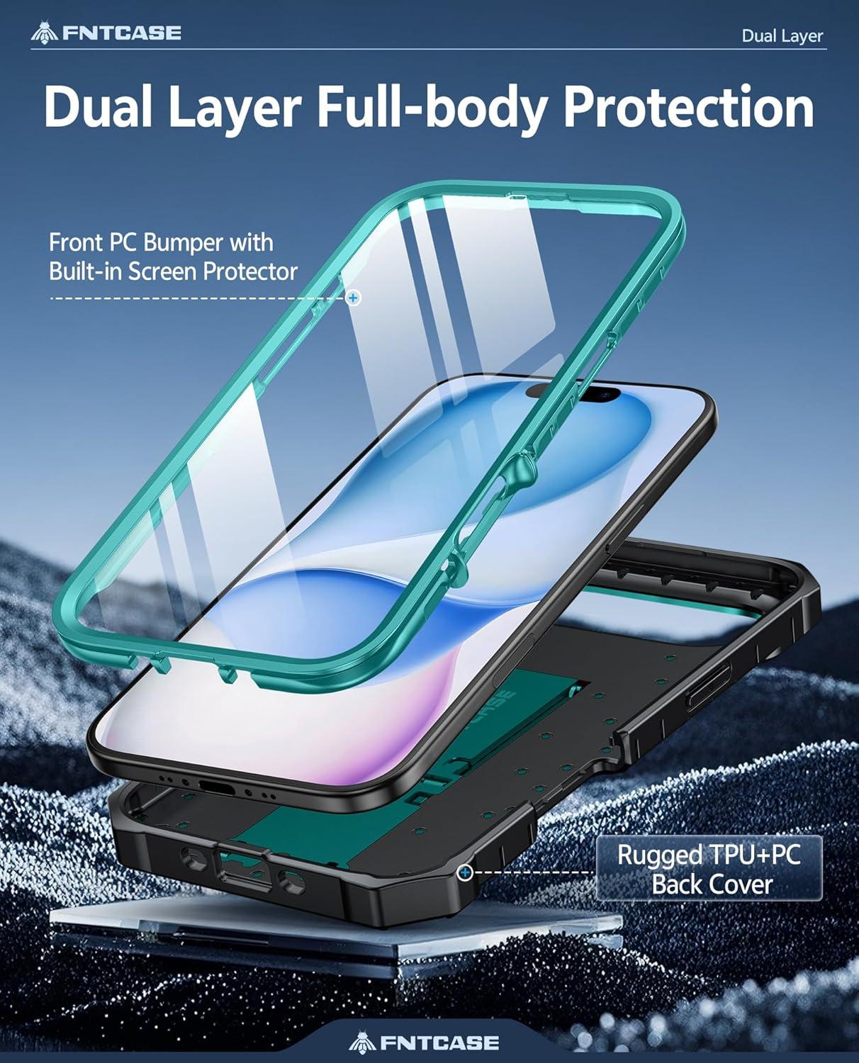 FNTCASE for iPhone 16e 2025 Case: for iPhone 16E Military Grade Rugged Phone Cover with Kickstand & Holster | Shockproof TPU Protection Bumper Matte Textured Design | Heavy Duty Protector (Black)(Green)