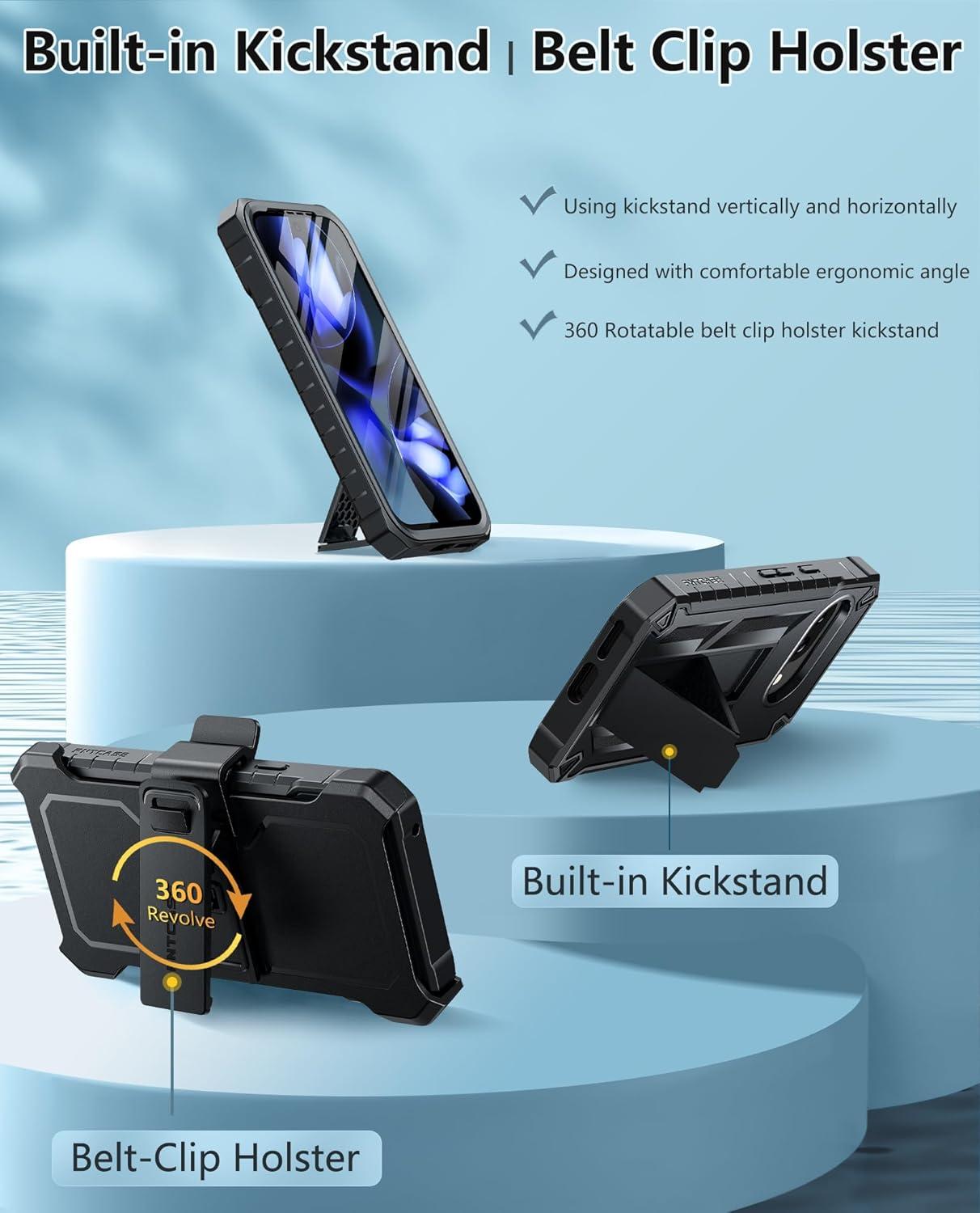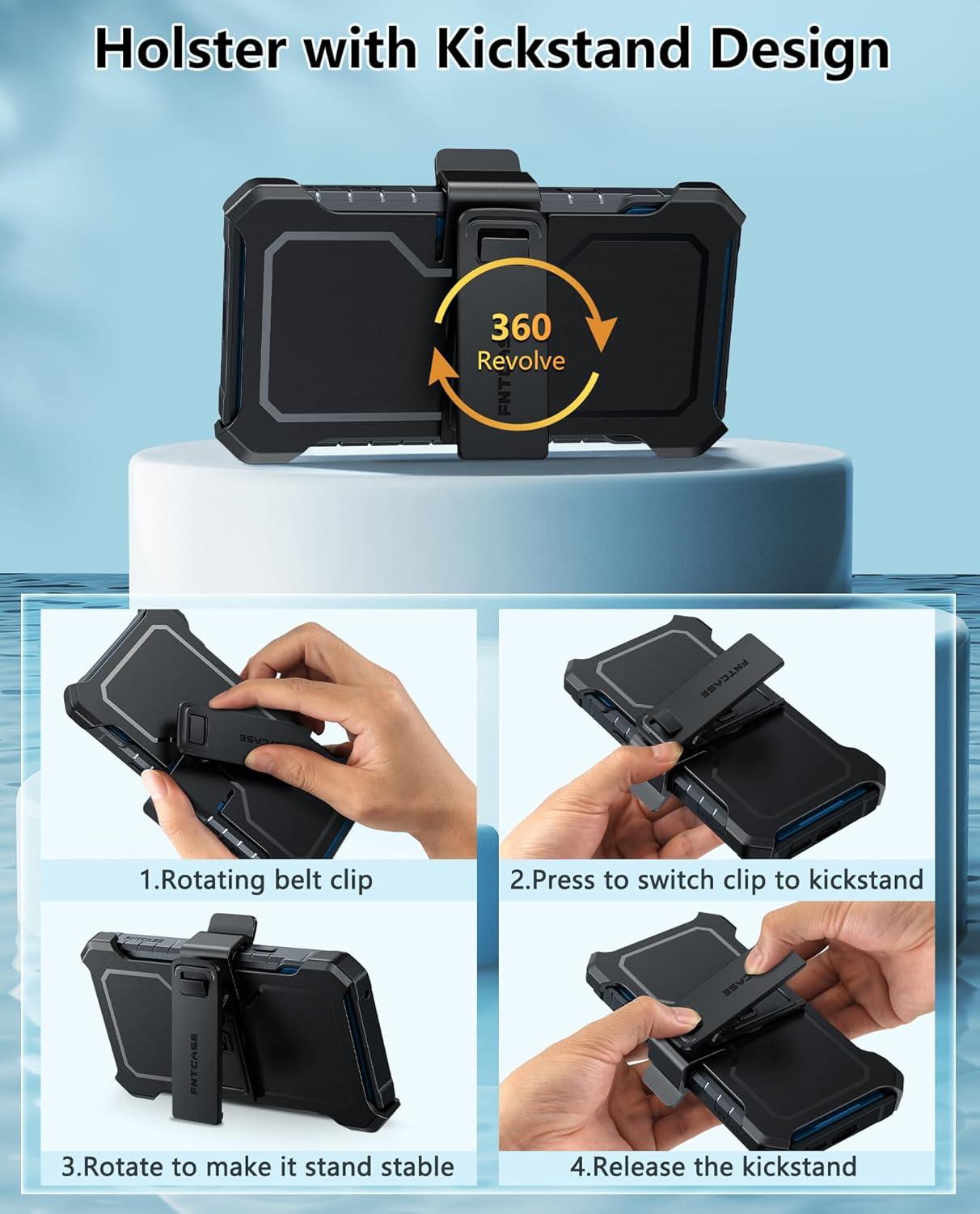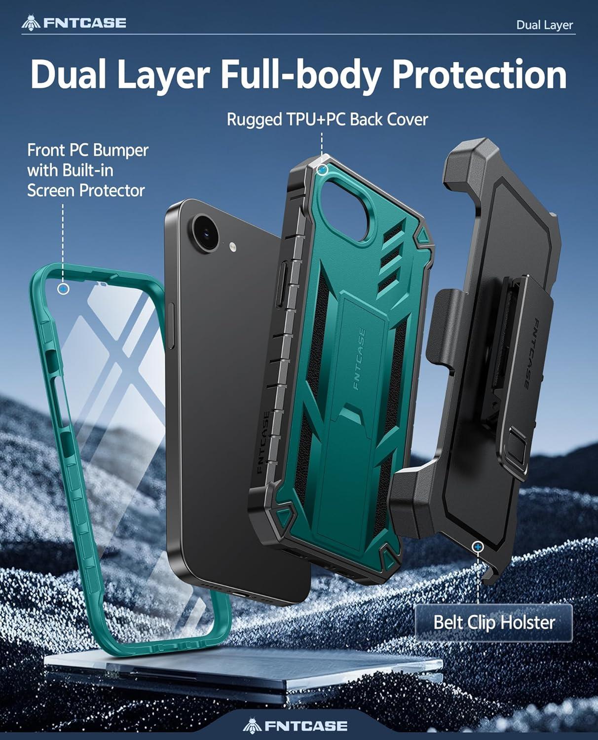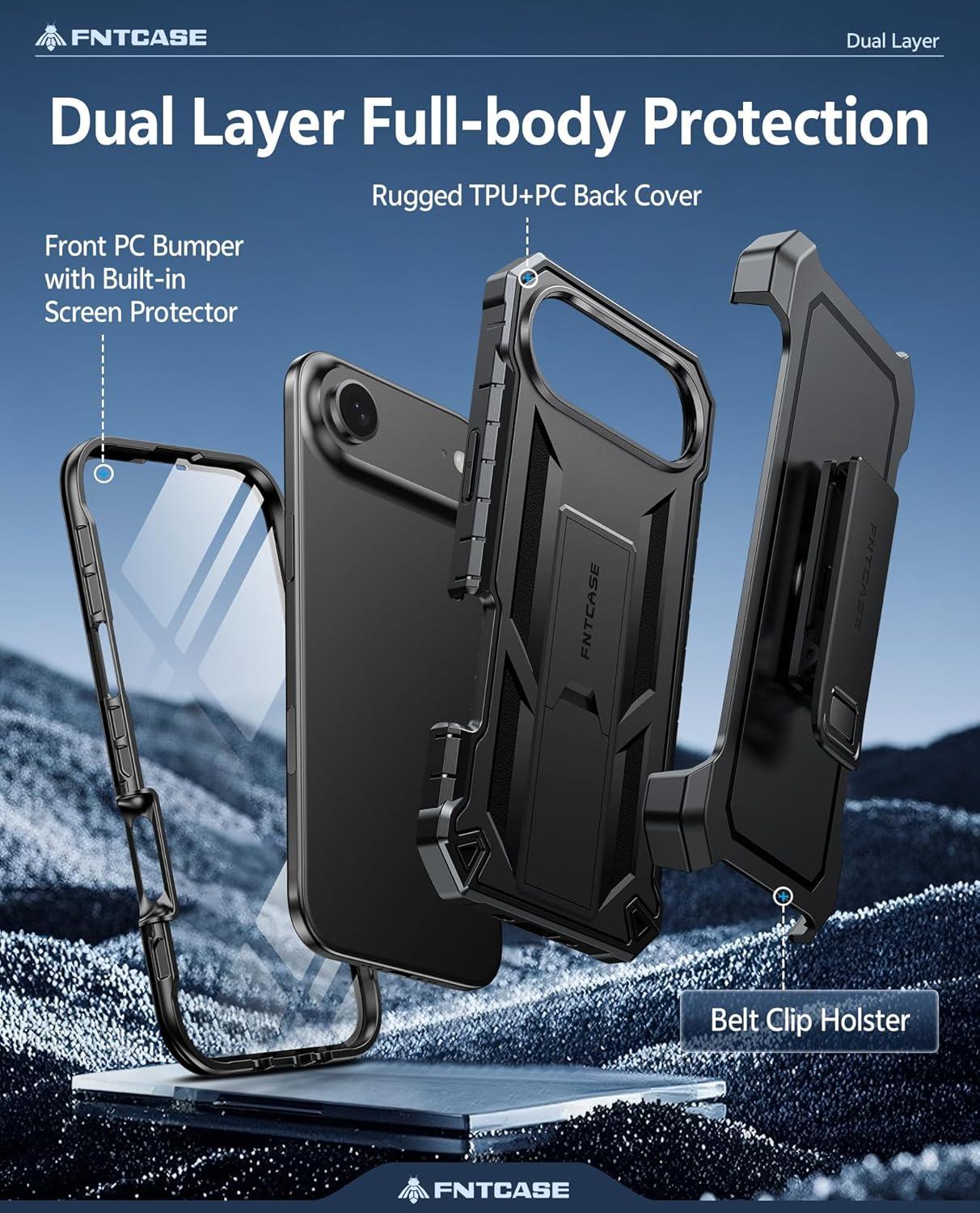 FNTCASE for iPhone 16e 2025 Case: for iPhone 16E Military Grade Rugged Phone Cover with Kickstand & Holster | Shockproof TPU Protection Bumper Matte Textured Design | Heavy Duty Protector (Black)(Black)