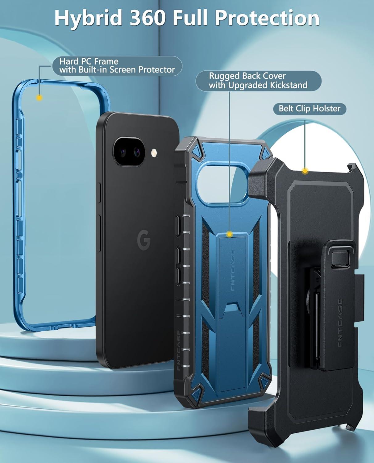 FNTCASE for Google Pixel 9a Case: Military Grade Drop Protection Anti Yellowing Cell Phone Cover – Rugged Shockproof Protective Bumper Transparent Cases(Clear)(Sapphire Blue Magnetic)
